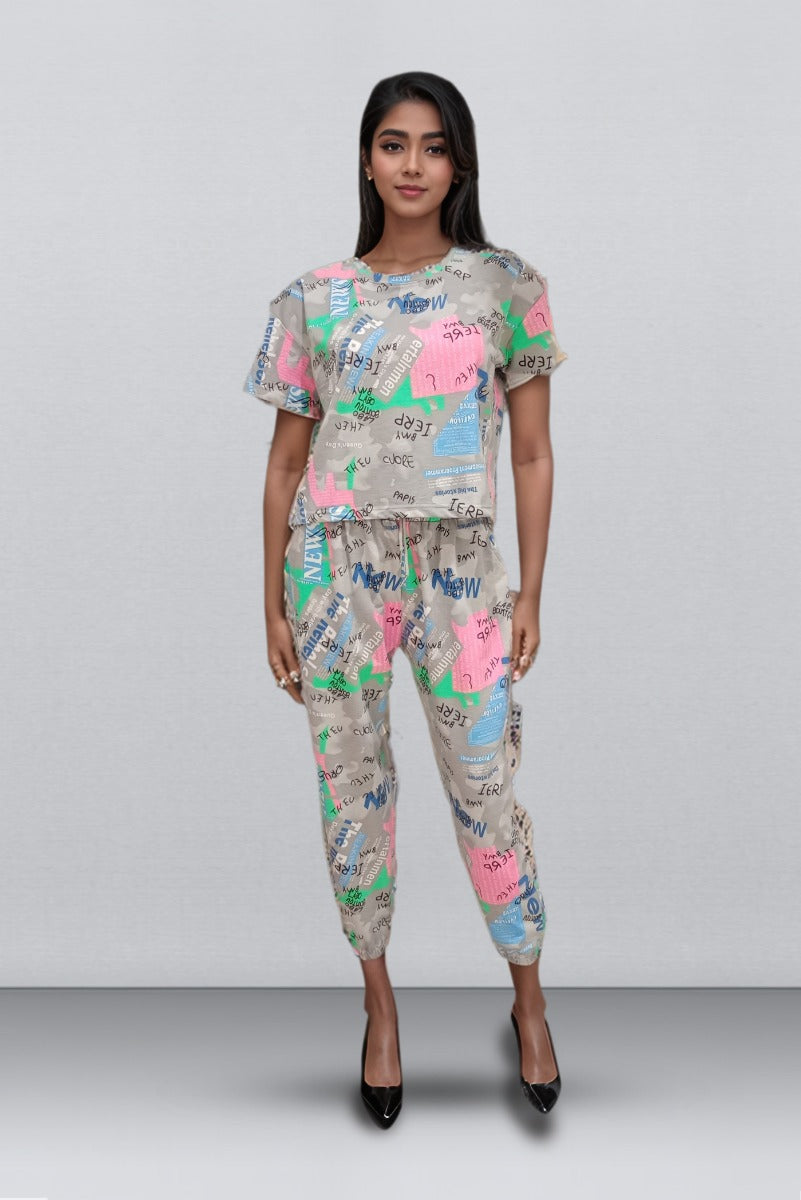 Ash Color Banyan Cord Set With Ankle Length Bottom