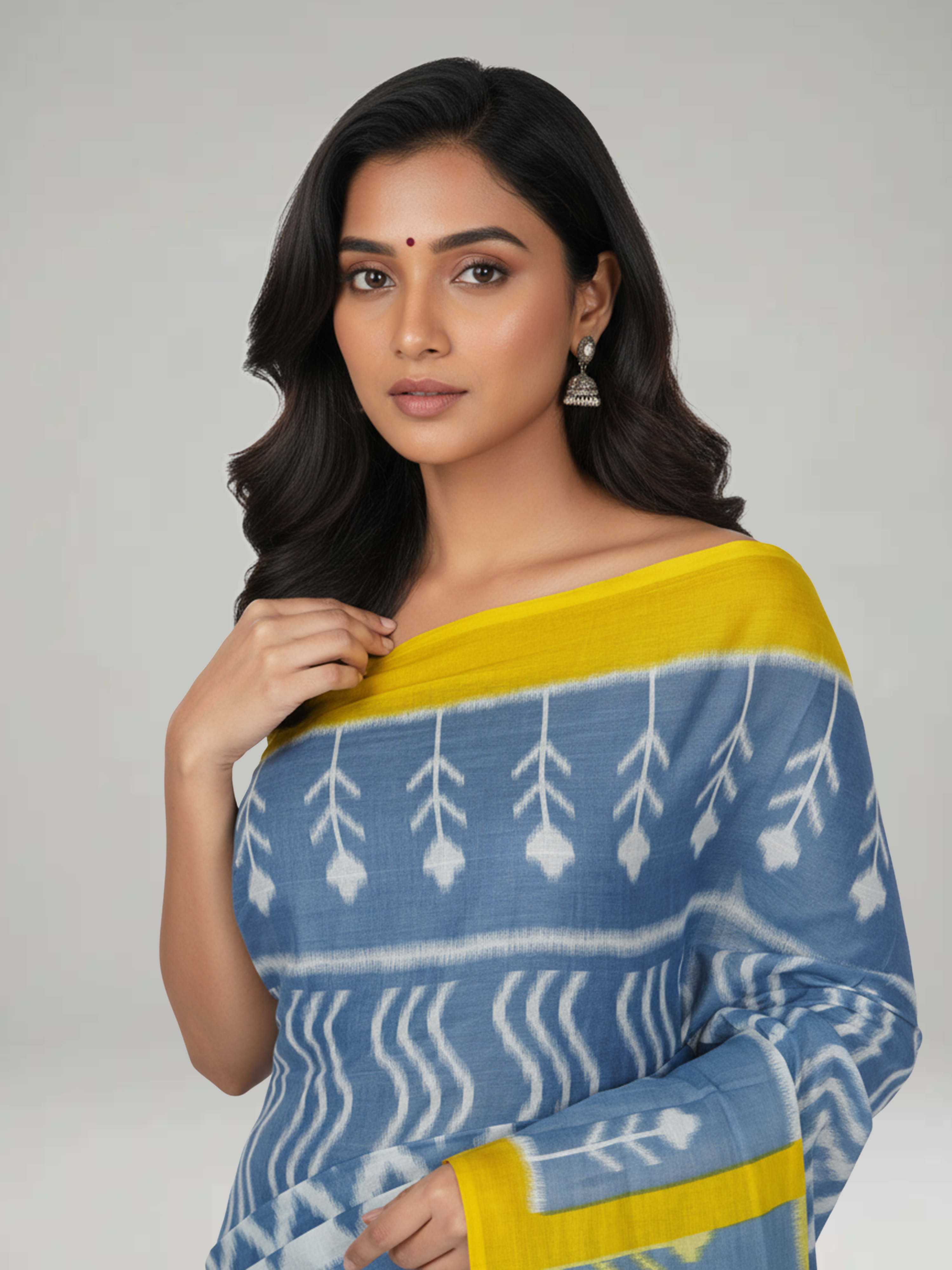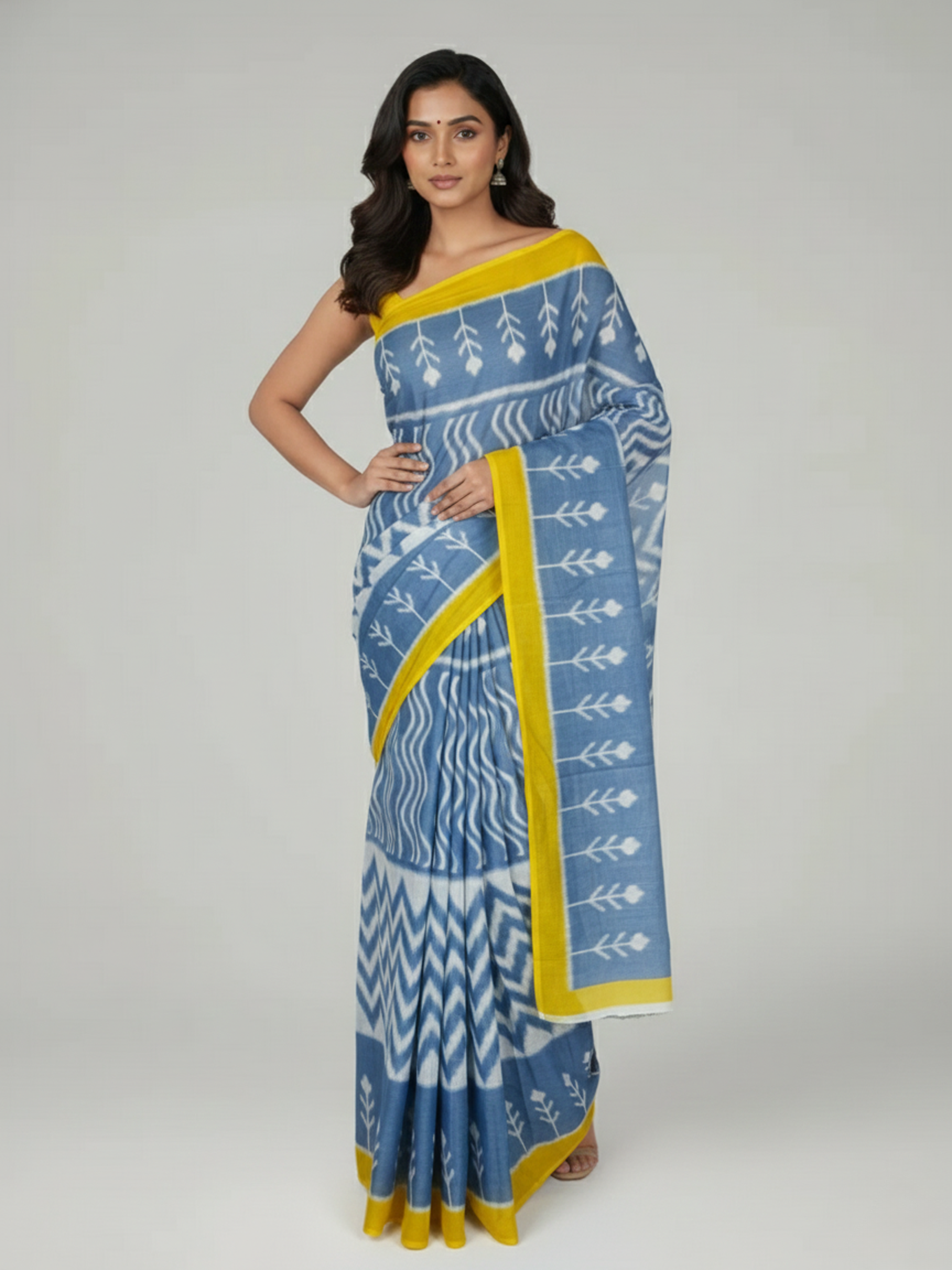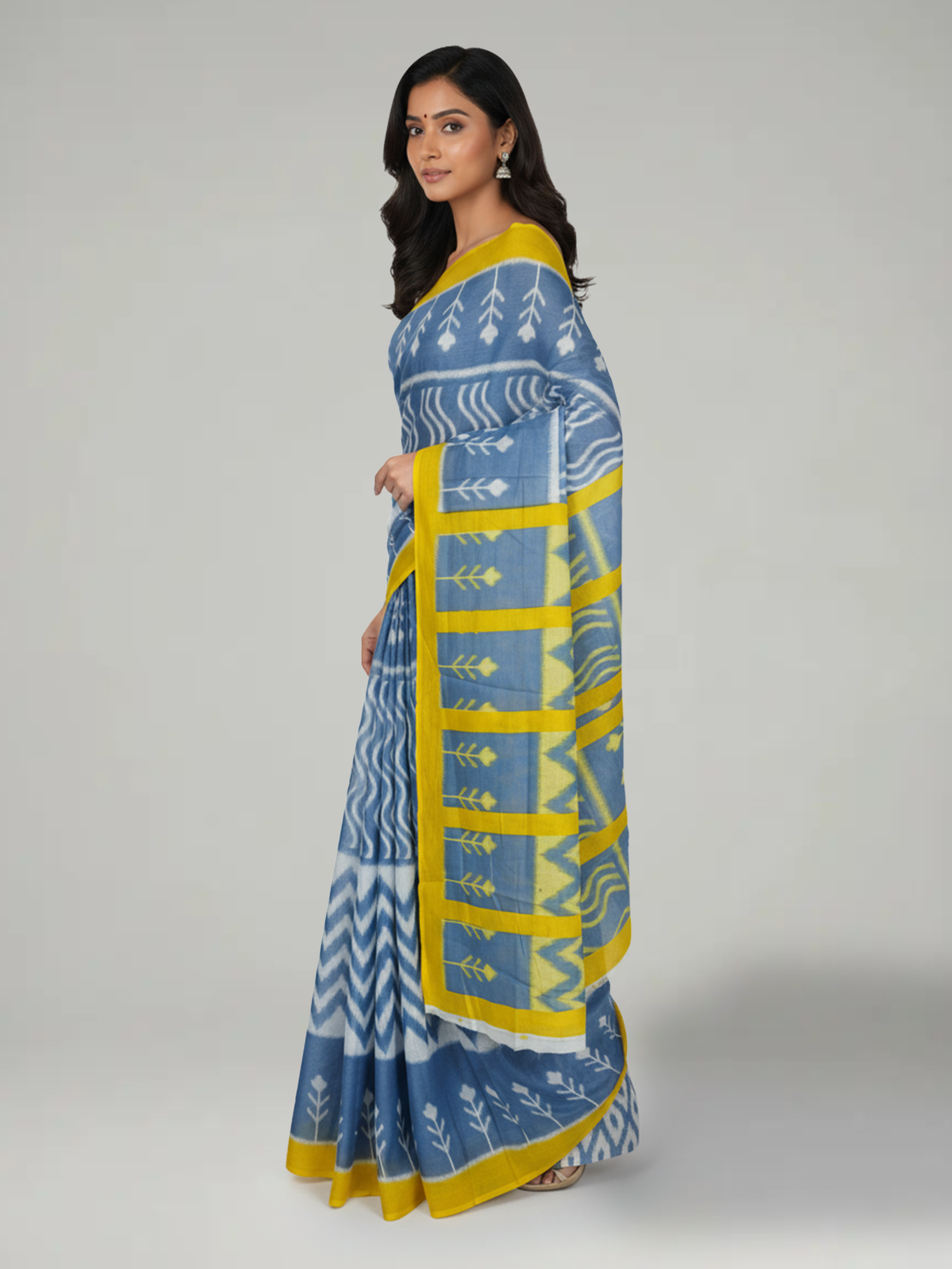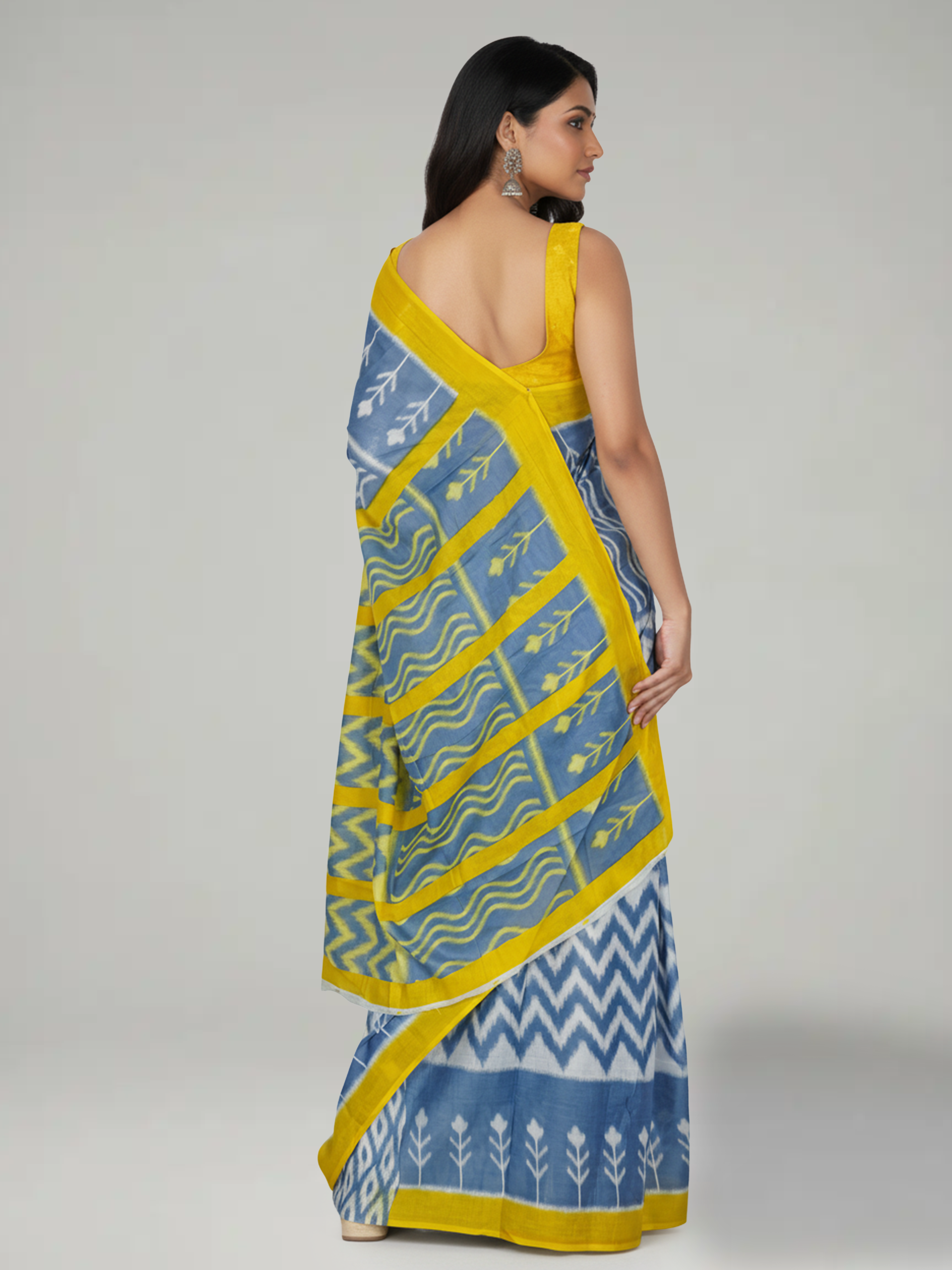 Ash Soft Cotton Saree with Waves & Zig zag Pattern