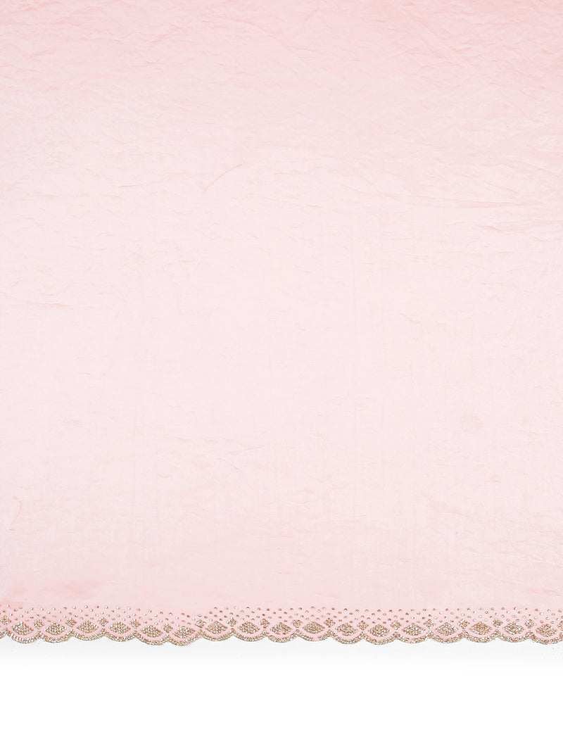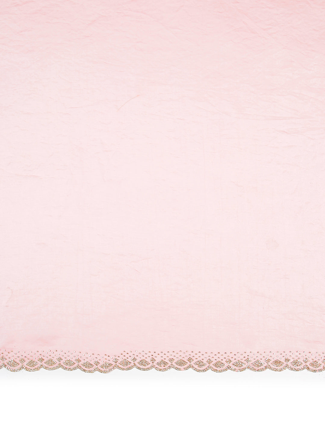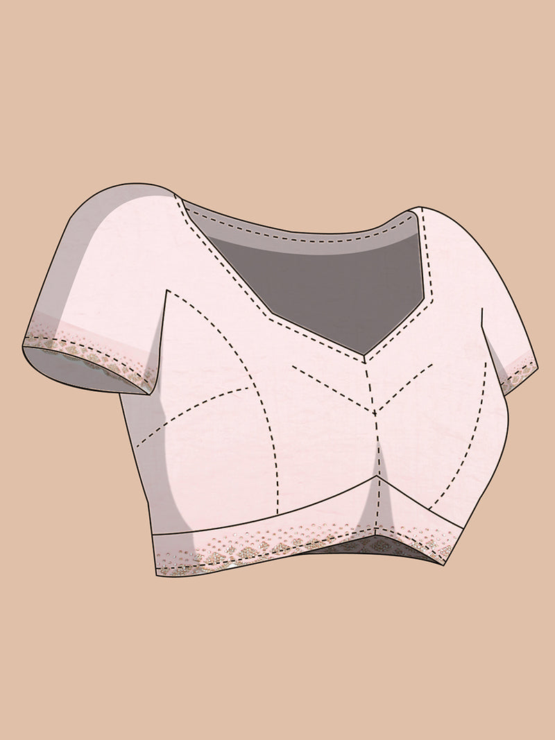 Feel feminine and graceful in this baby pink soft organza saree, adorned with stylish foil floral prints throughout the body. Lightweight and flowing, it’s perfect for both casual and formal celebrations.