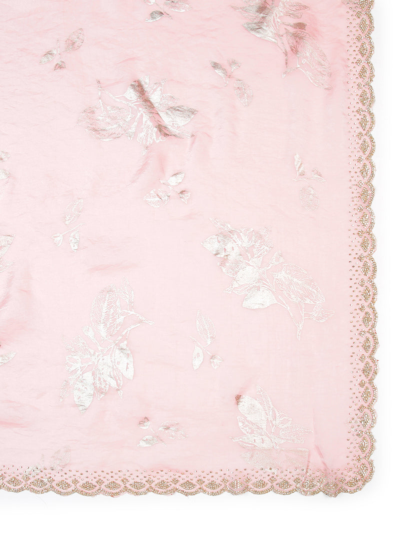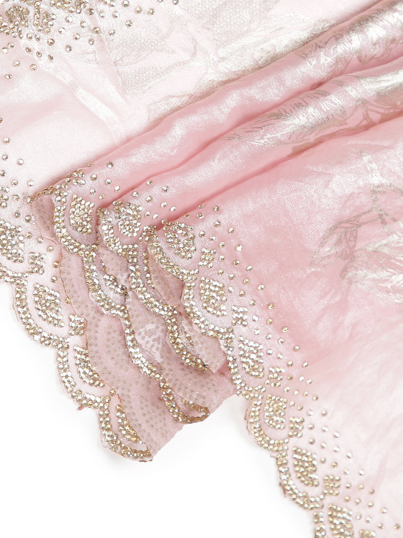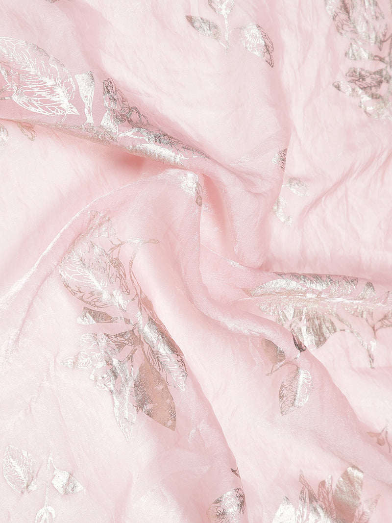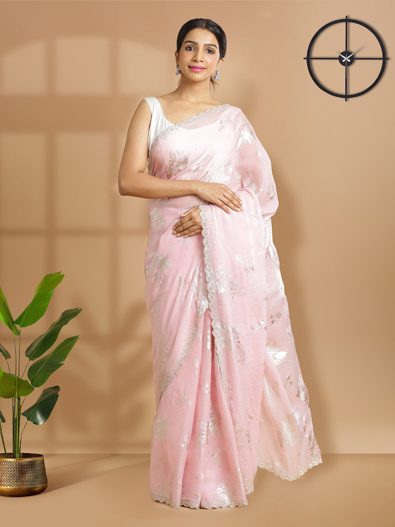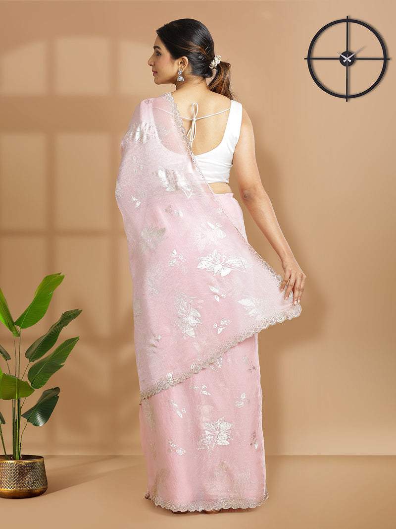 Baby Pink Soft Organza Saree With Foil Floral Print Over Body