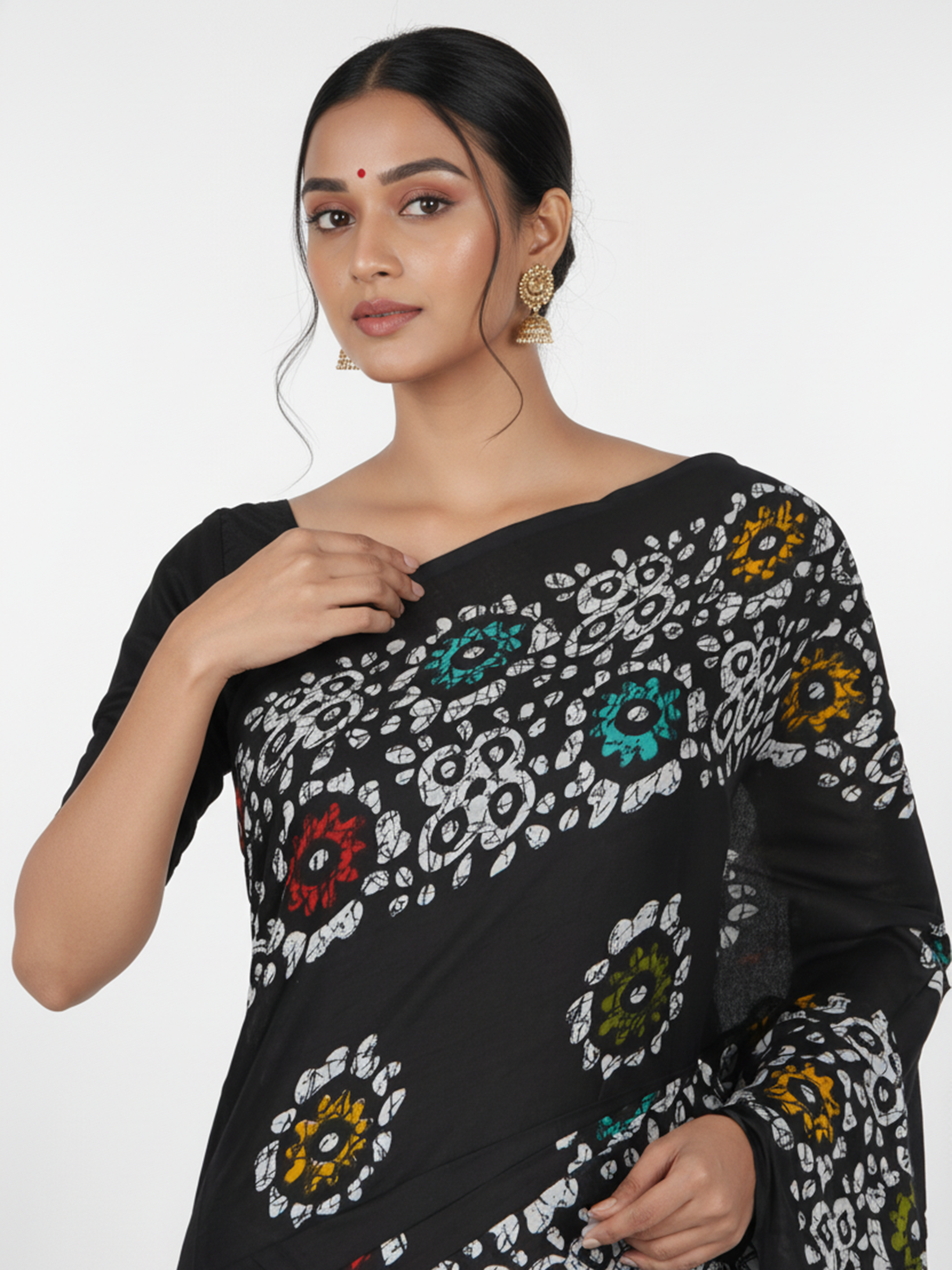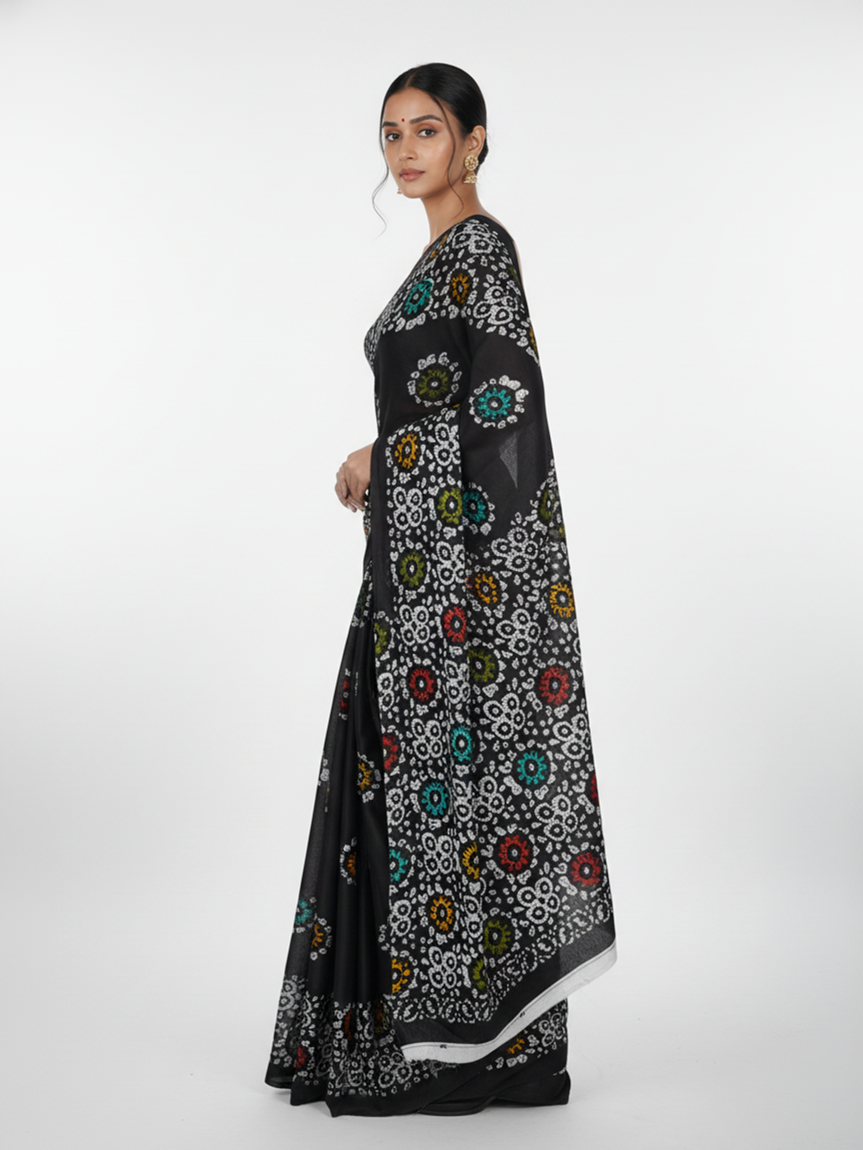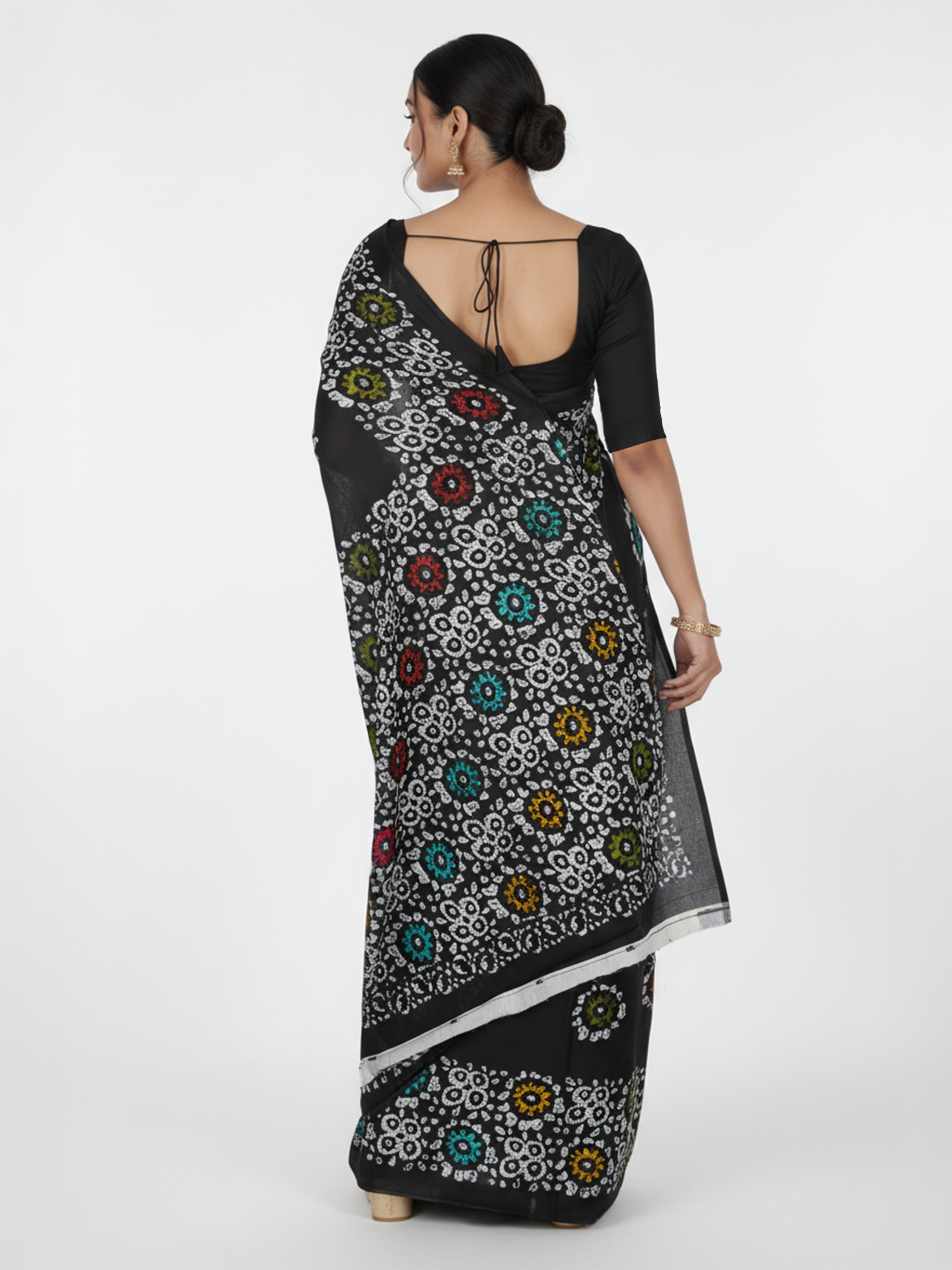 Black Color Soft Cotton Saree With Batik Print