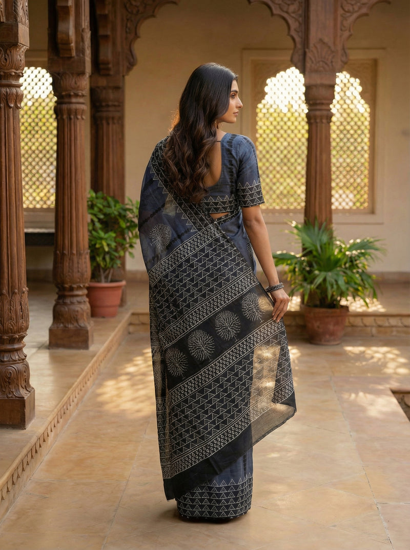 Add understated elegance to your wardrobe with this Black Dark Ash Soft Cotton Saree, designed for everyday comfort and contemporary ethnic style. Crafted from soft cotton fabric, this saree is lightweight, breathable, and ideal for all-day wear.