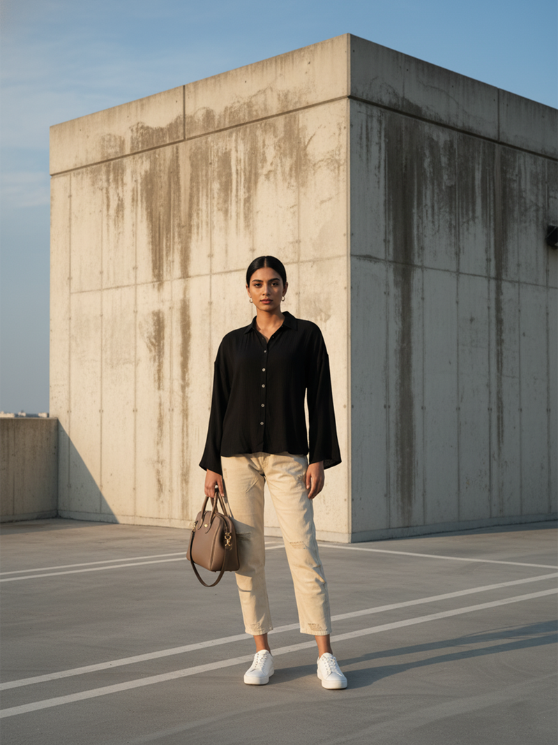 Relax tshirt in black crafted in soft rayon crepe, cut to a oversized fit and finished with full sleeves. Effortless daily styling.