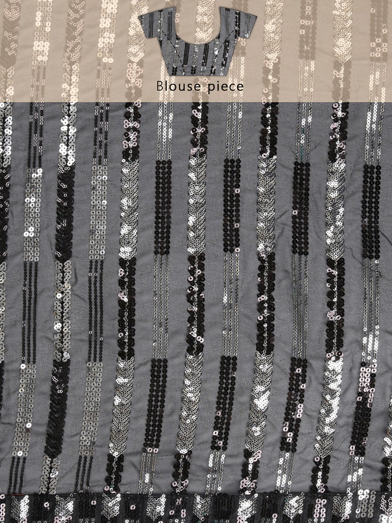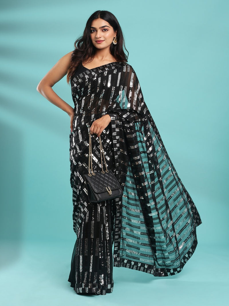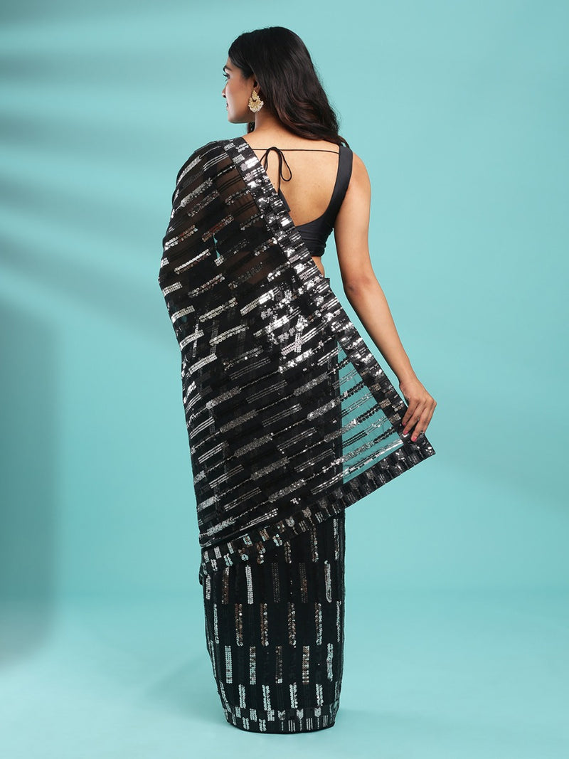 black & silver sequence work fancy saree