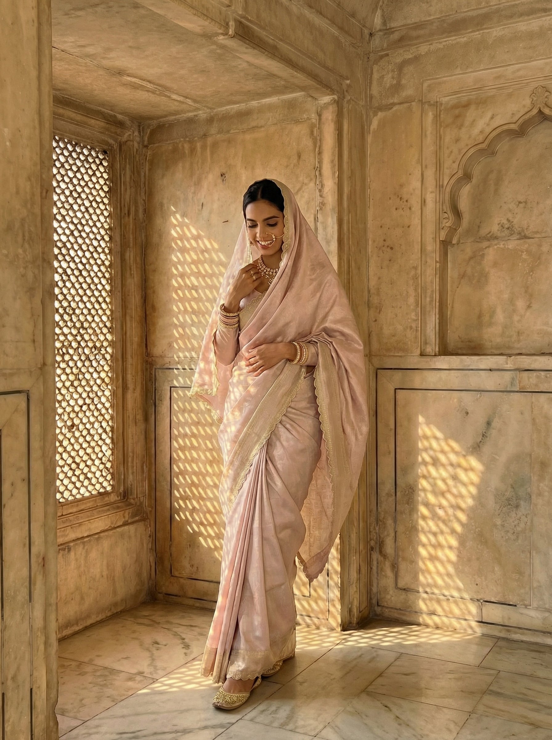 Designer Lace Golden Saree