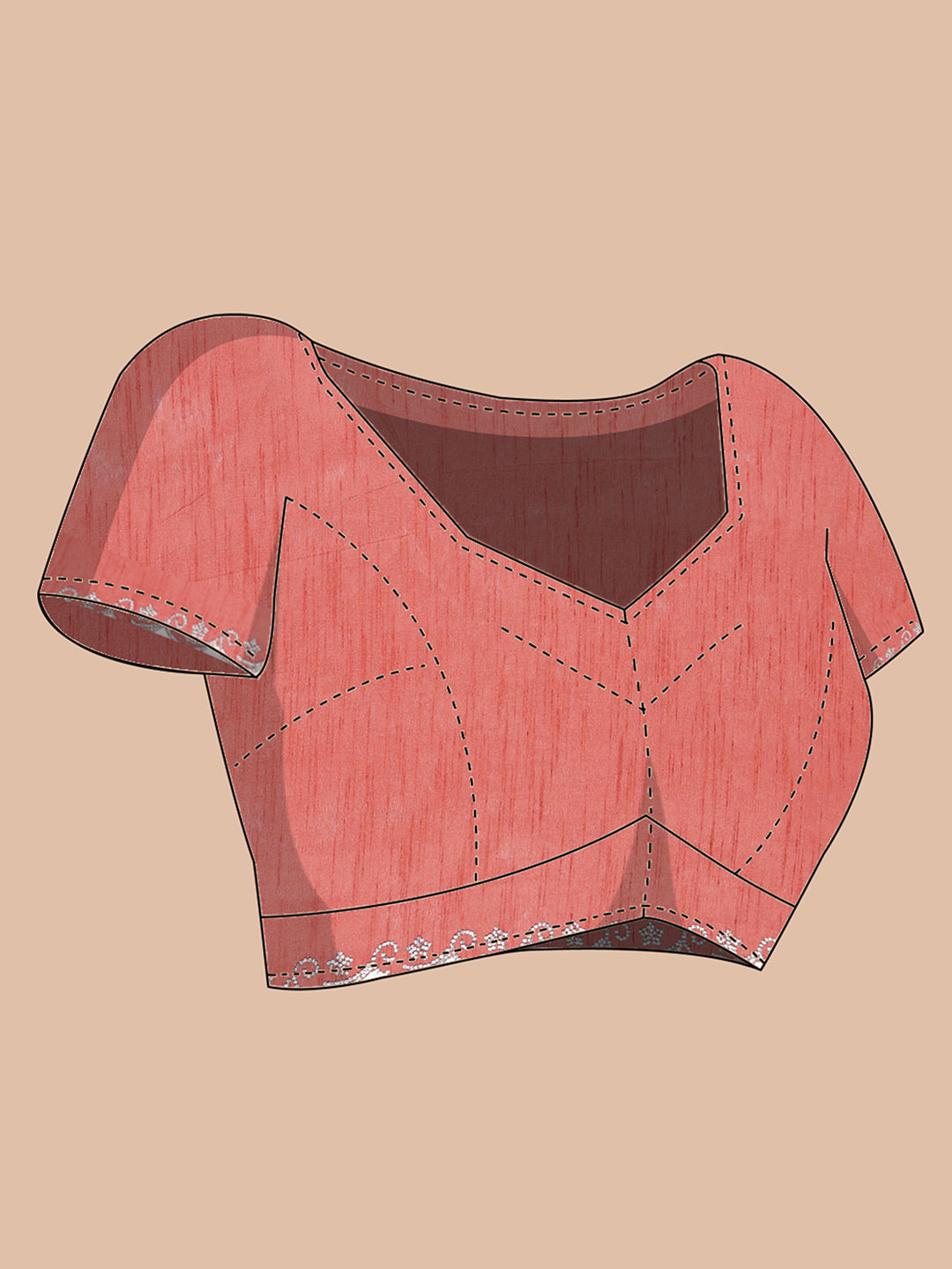 The blouse worn by the model might be for modelling purpose only. Check the image of the blouse piece to understand how the actual blouse piece looks like.