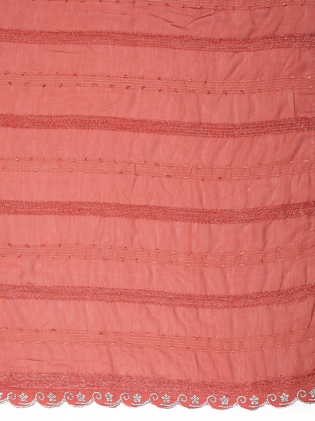 Brick Red Vijithra Silk Saree With Horizontal Thread Stripes Over Body