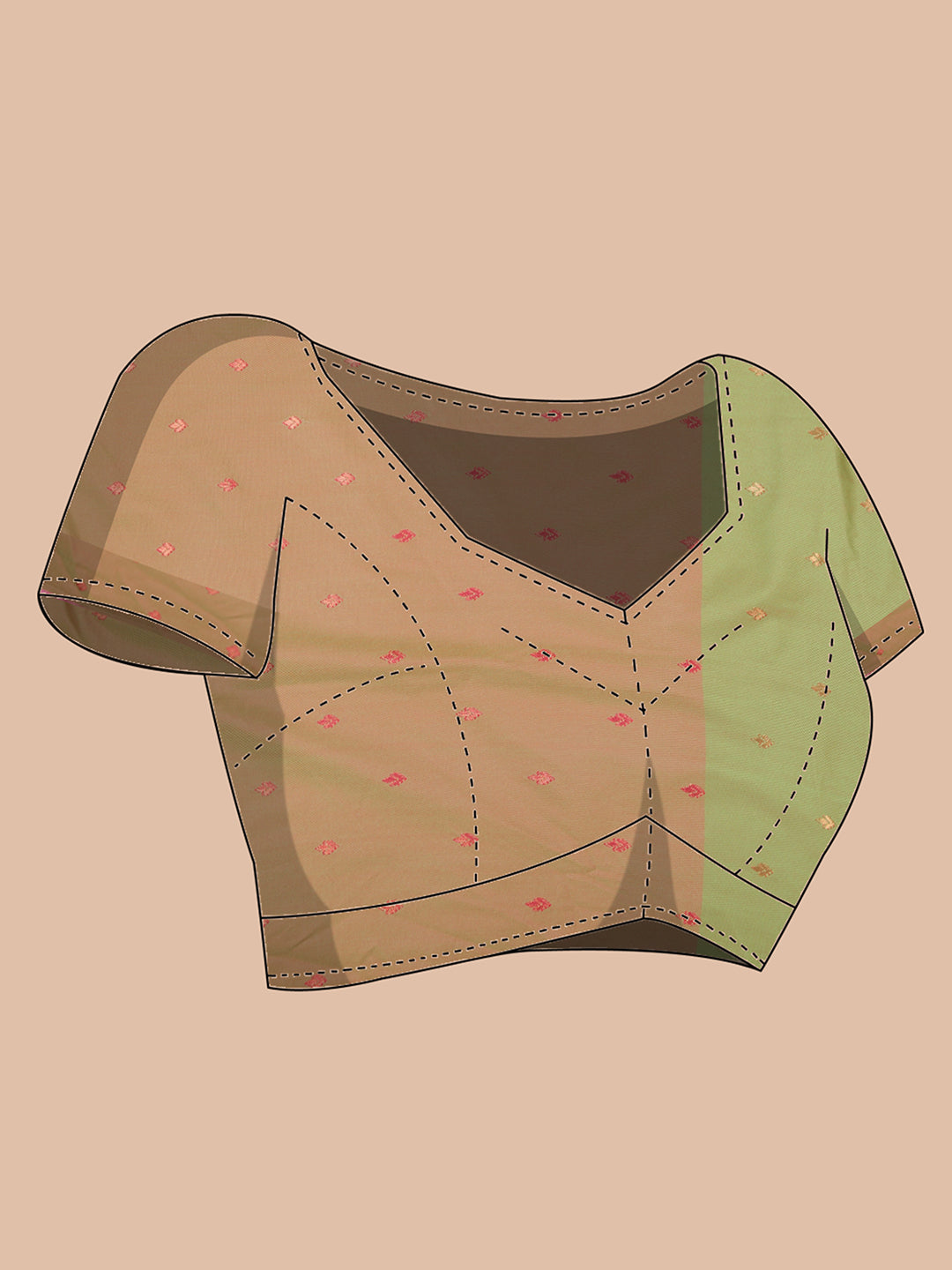 The blouse worn by the model might be for modelling purpose only. Check the image of the blouse piece to understand how the actual blouse piece looks like.