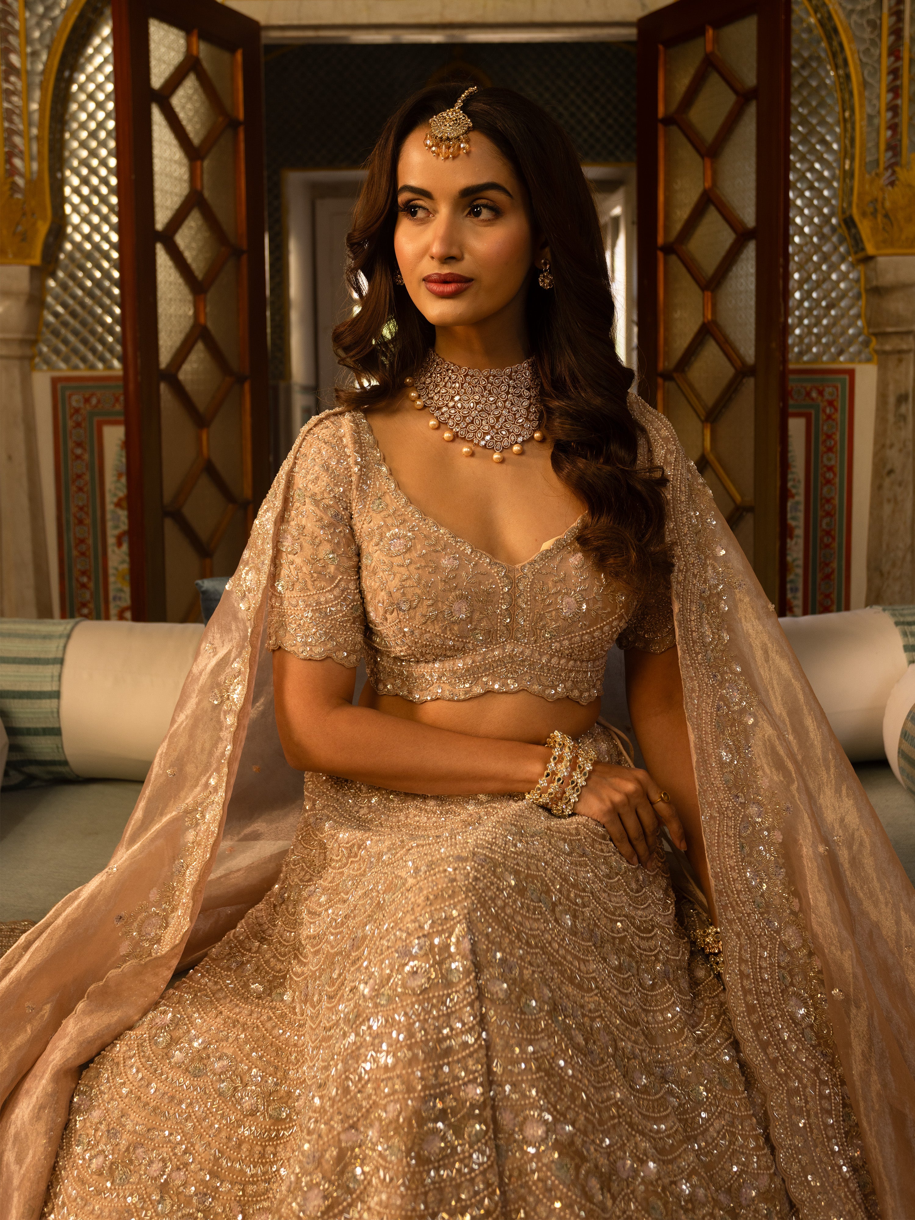 Champagne Gold Embellished Bridal Lehenga Set