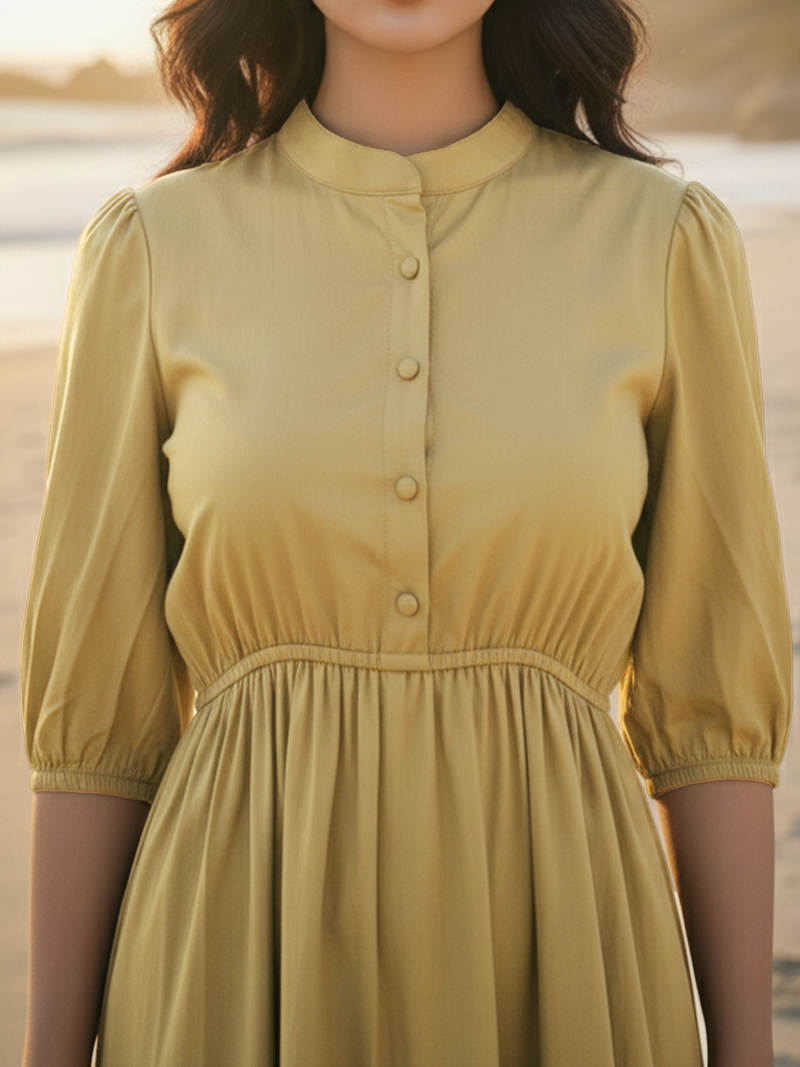 Chic & Trendy! Discover the Chikku Heavy Poplin short womens dress with a high neck and puff sleeves. Stylish dresses for women.