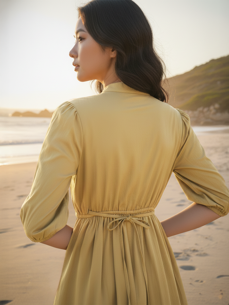Chikku Poplin Puff Sleeve Short Dress for Women