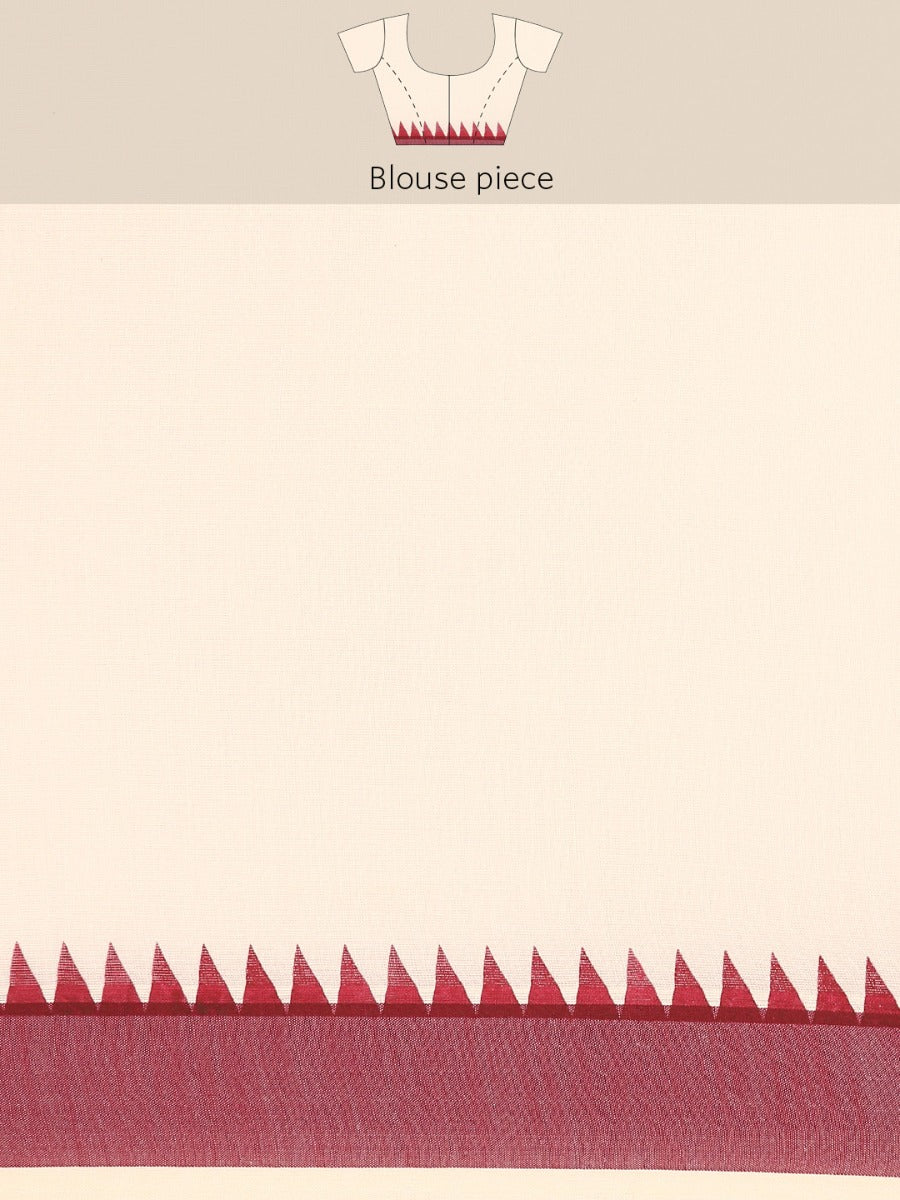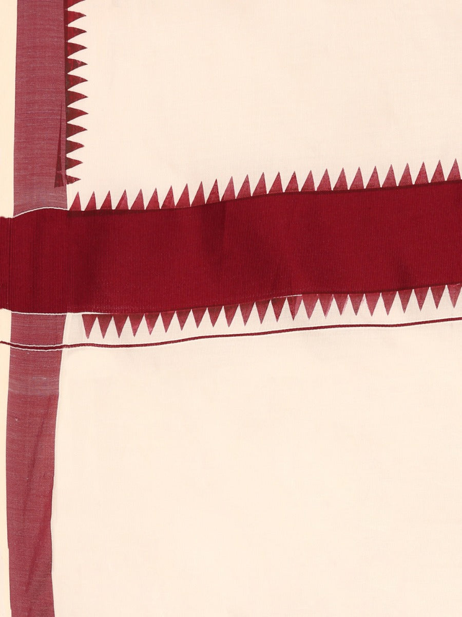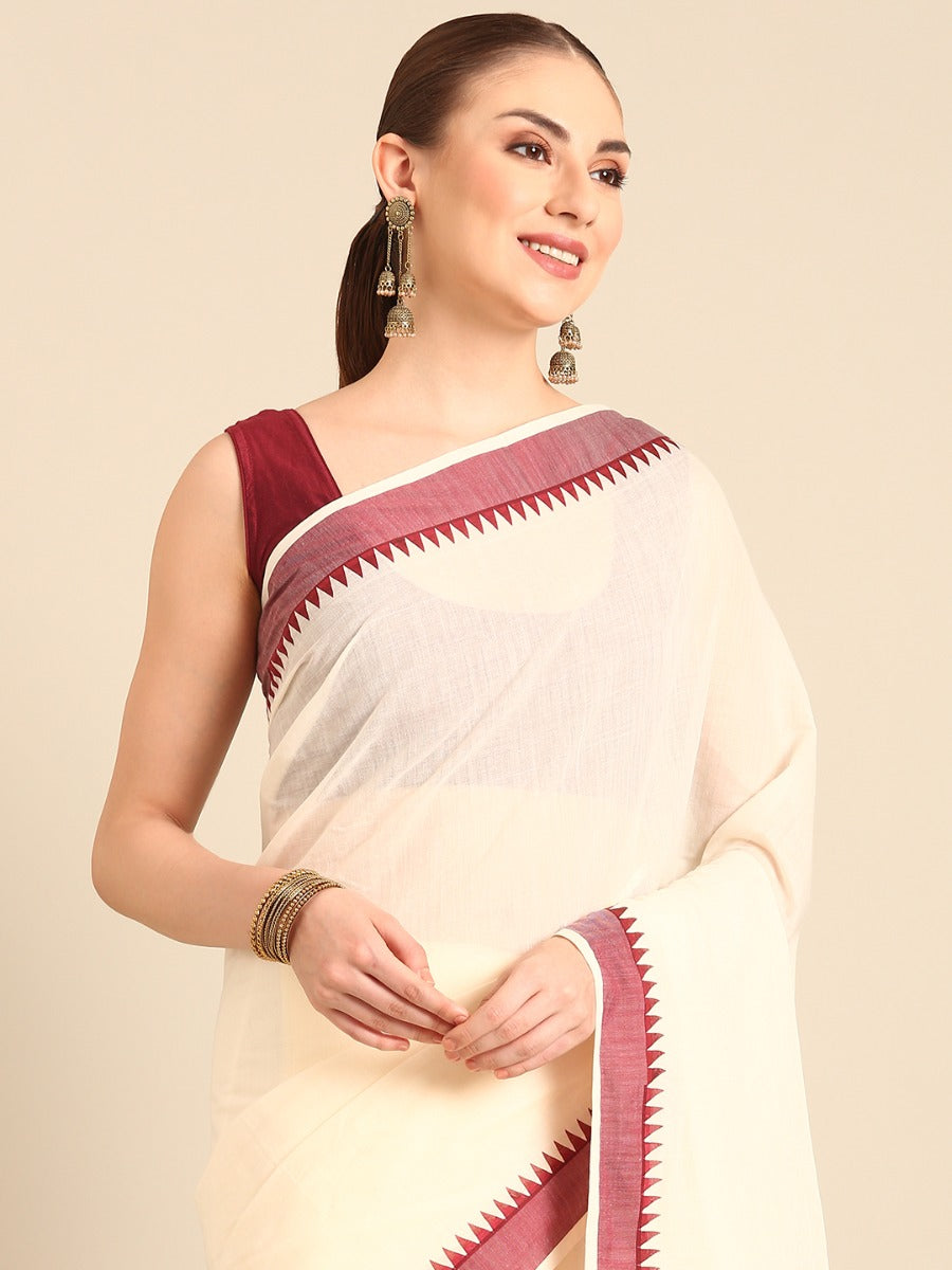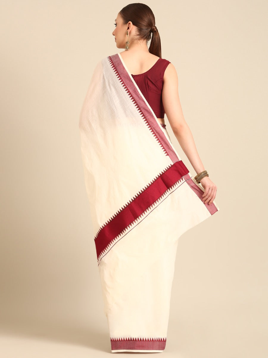 Cream-Colored And Maroon Kasavu Saree With Printed Border