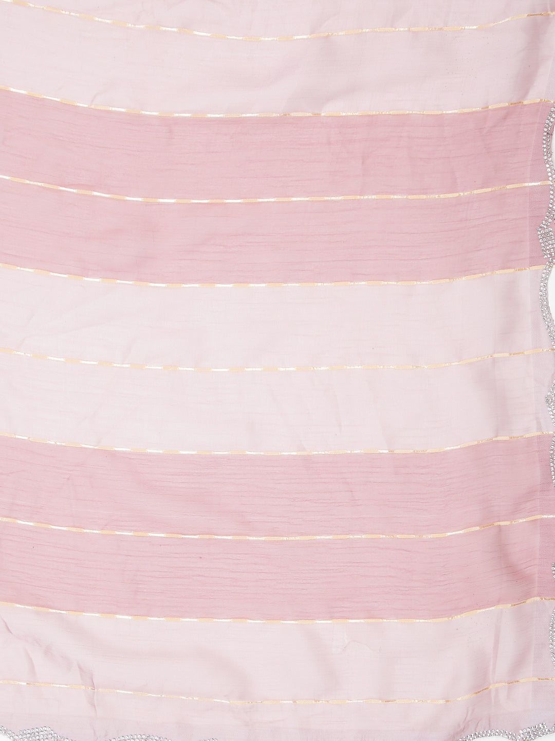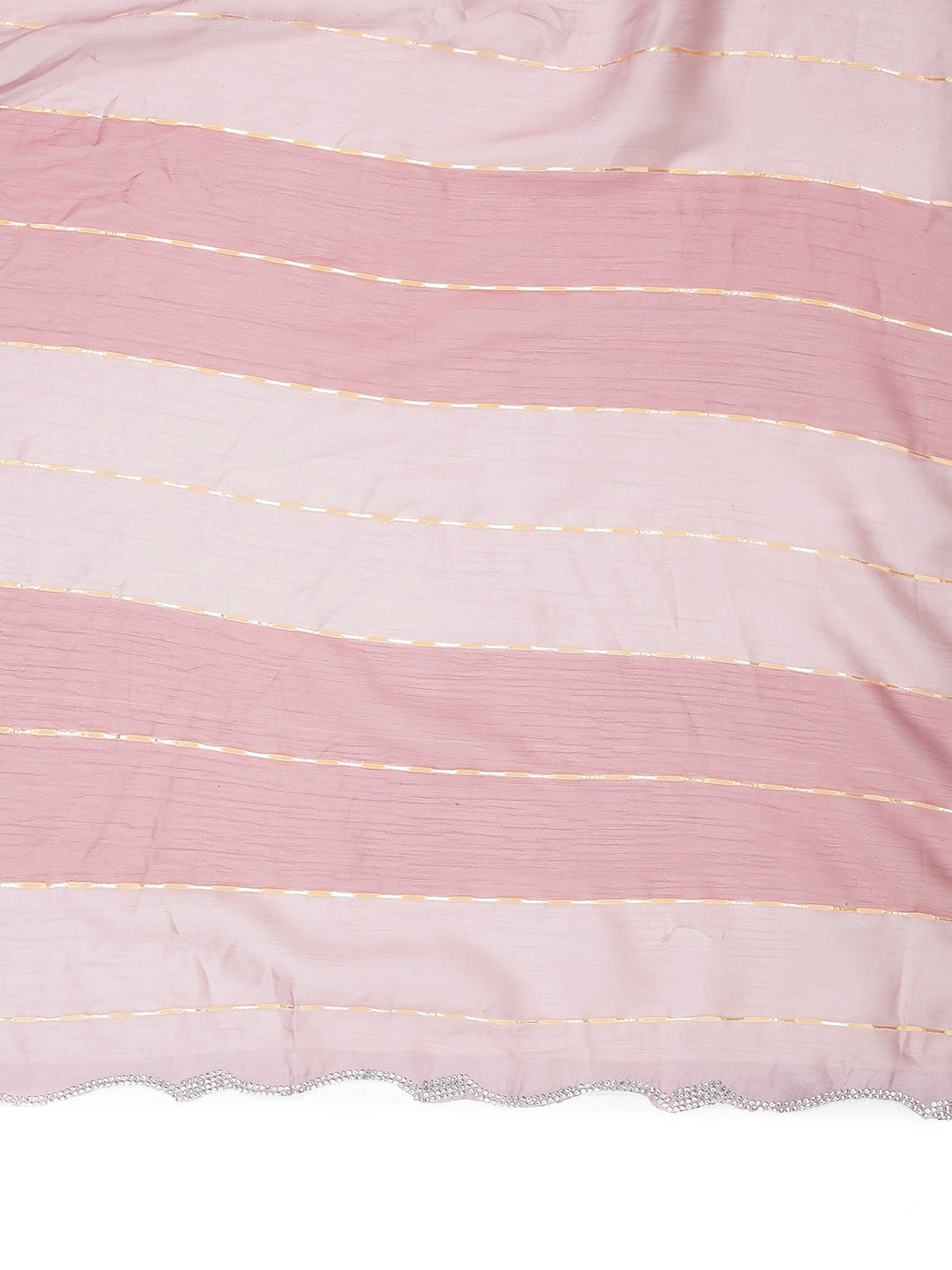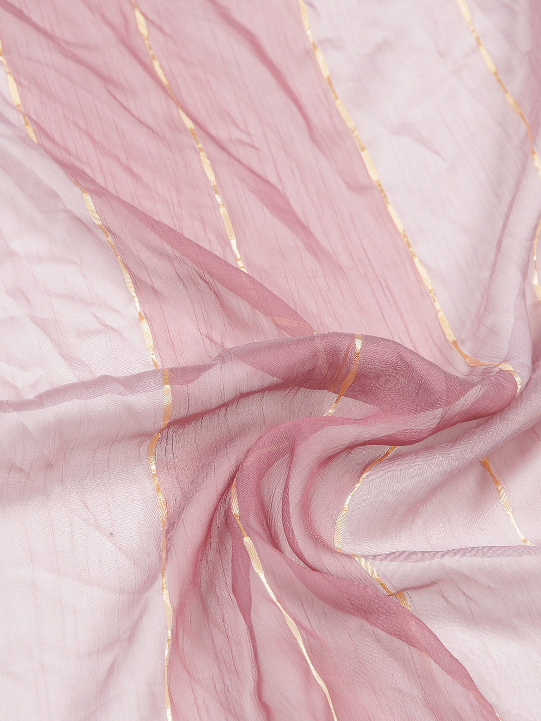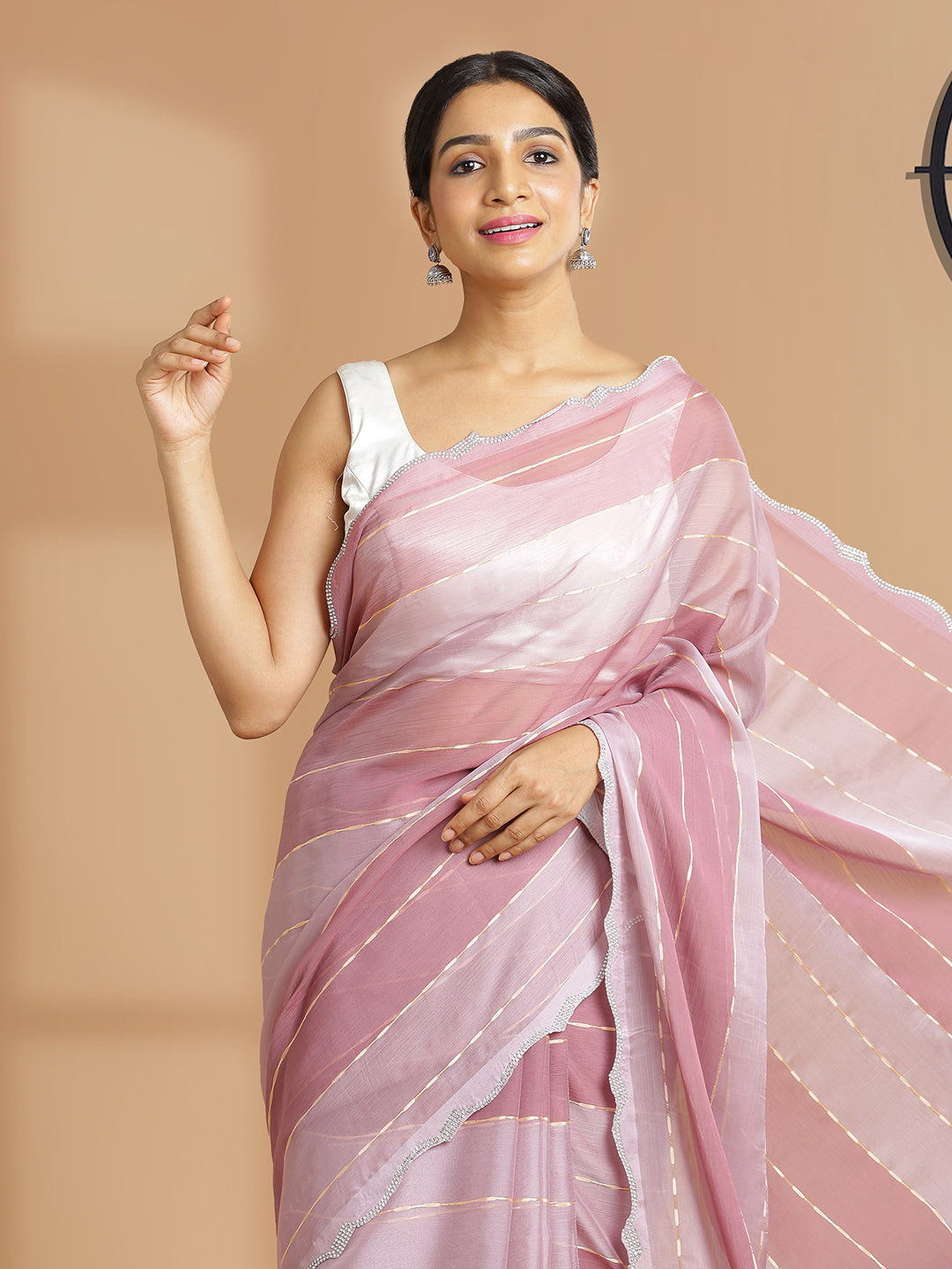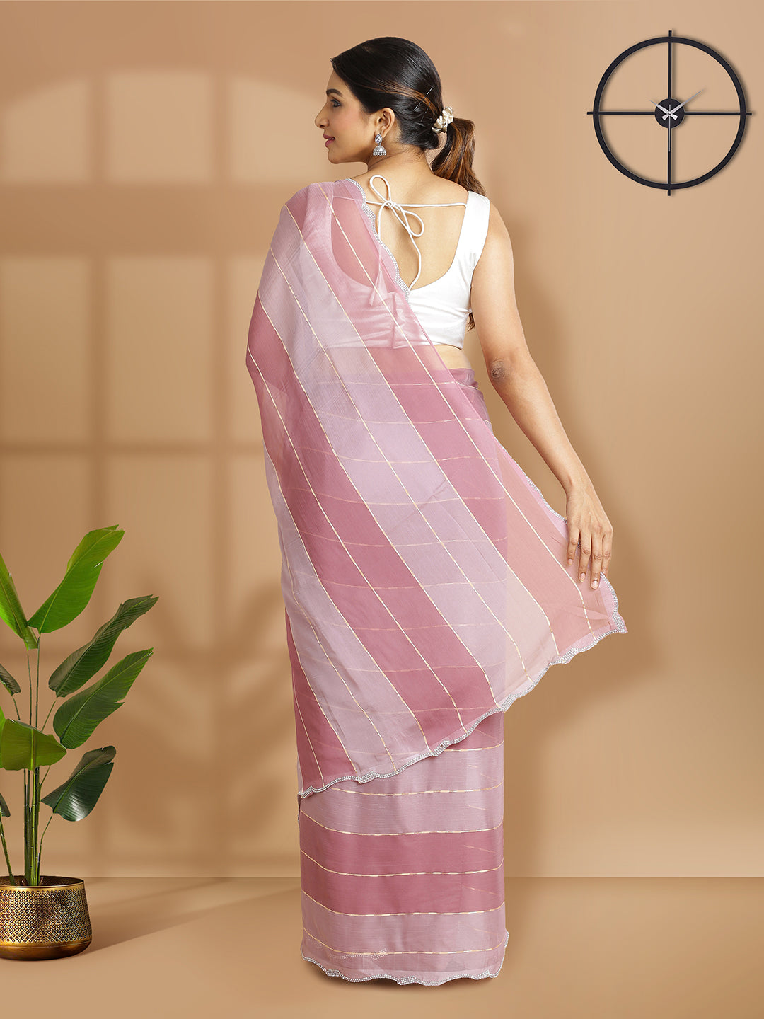 Dark & Light Onion Pink Georgette Saree With Horizontal Stripe Design Over Body