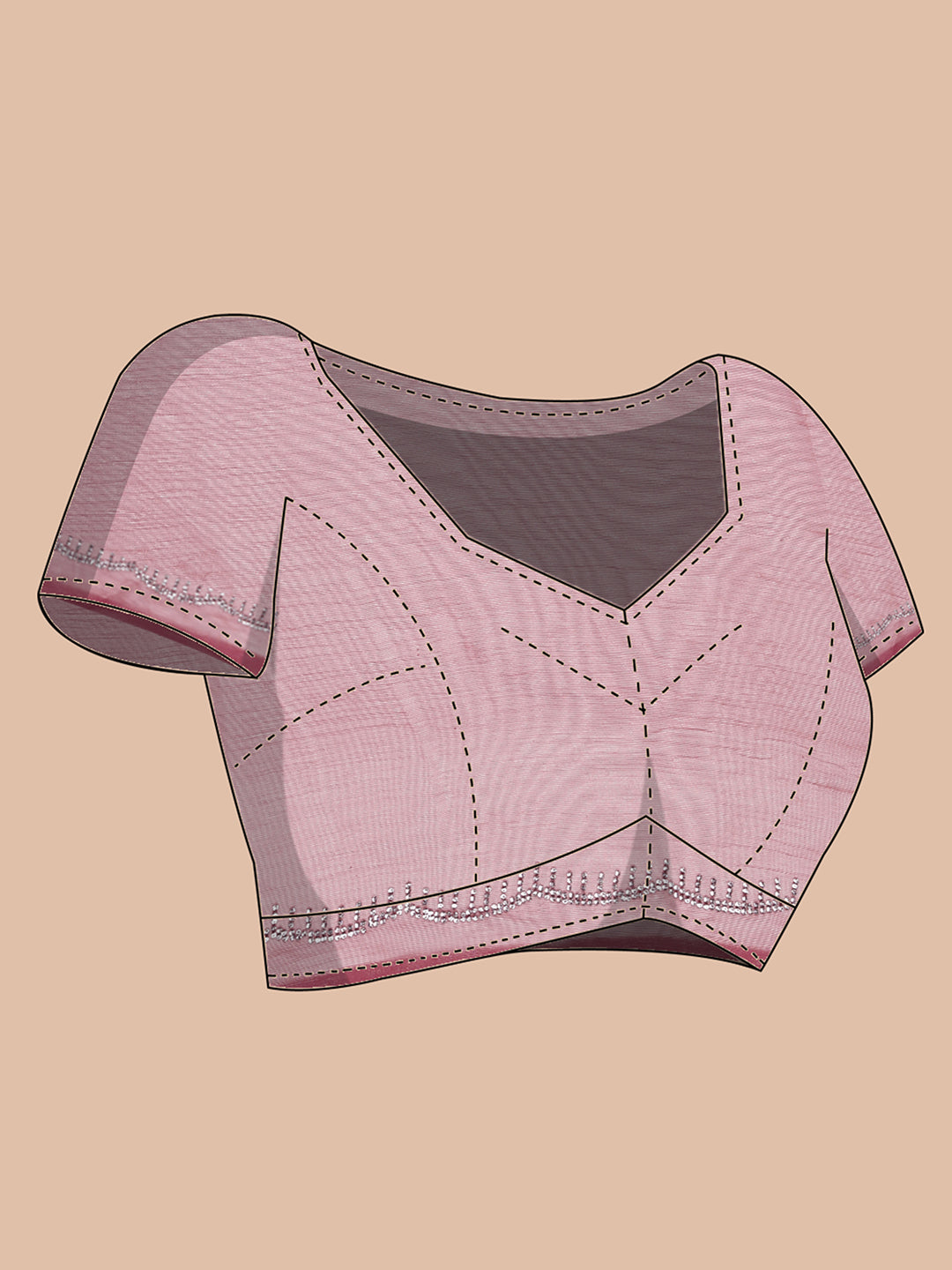 Embrace elegance with this dark onion pink georgette tissue saree, beautifully decorated with shimmering mini stones across the body. The blend of georgette and tissue fabrics offers a graceful fall, perfect for celebrations and special gatherings.