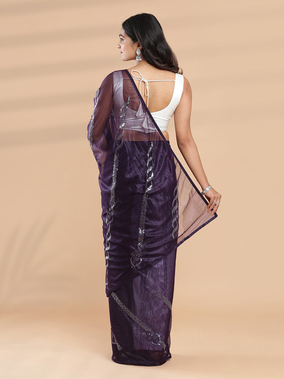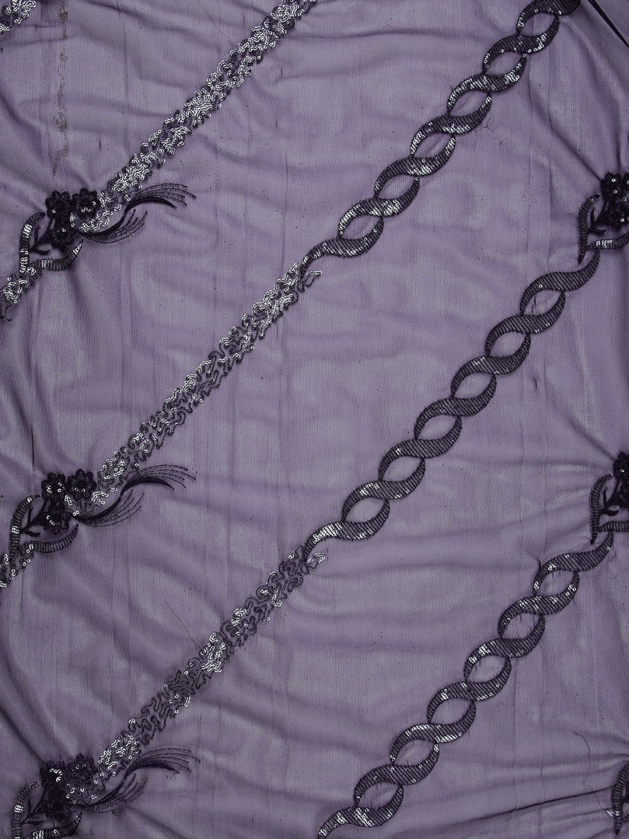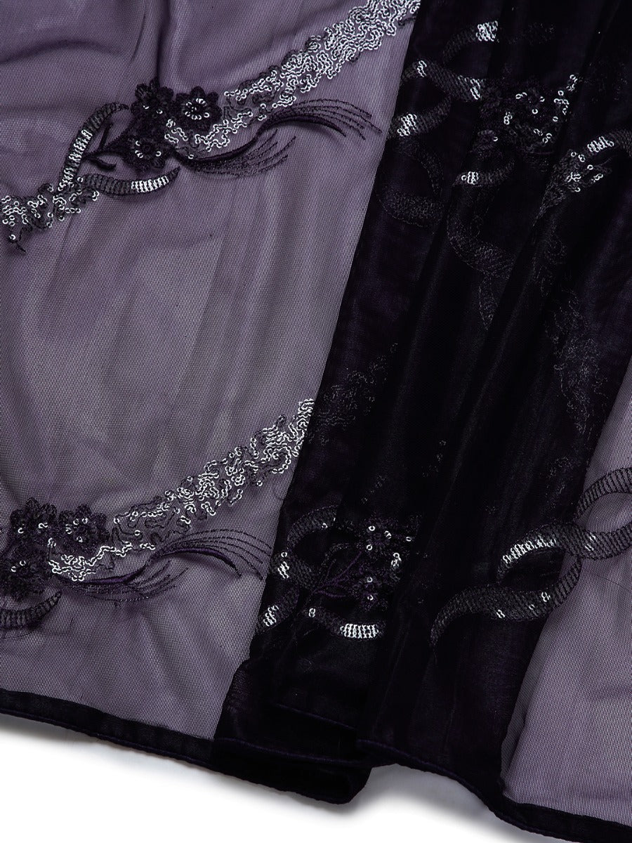 Dark Purple Net Saree With Embroidery And Sequence Work