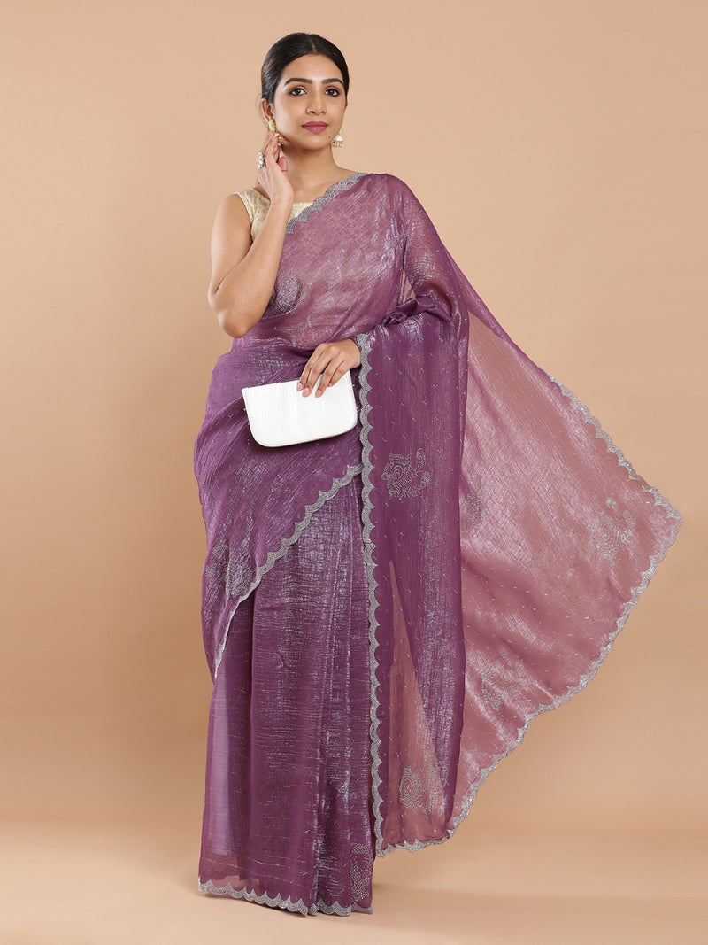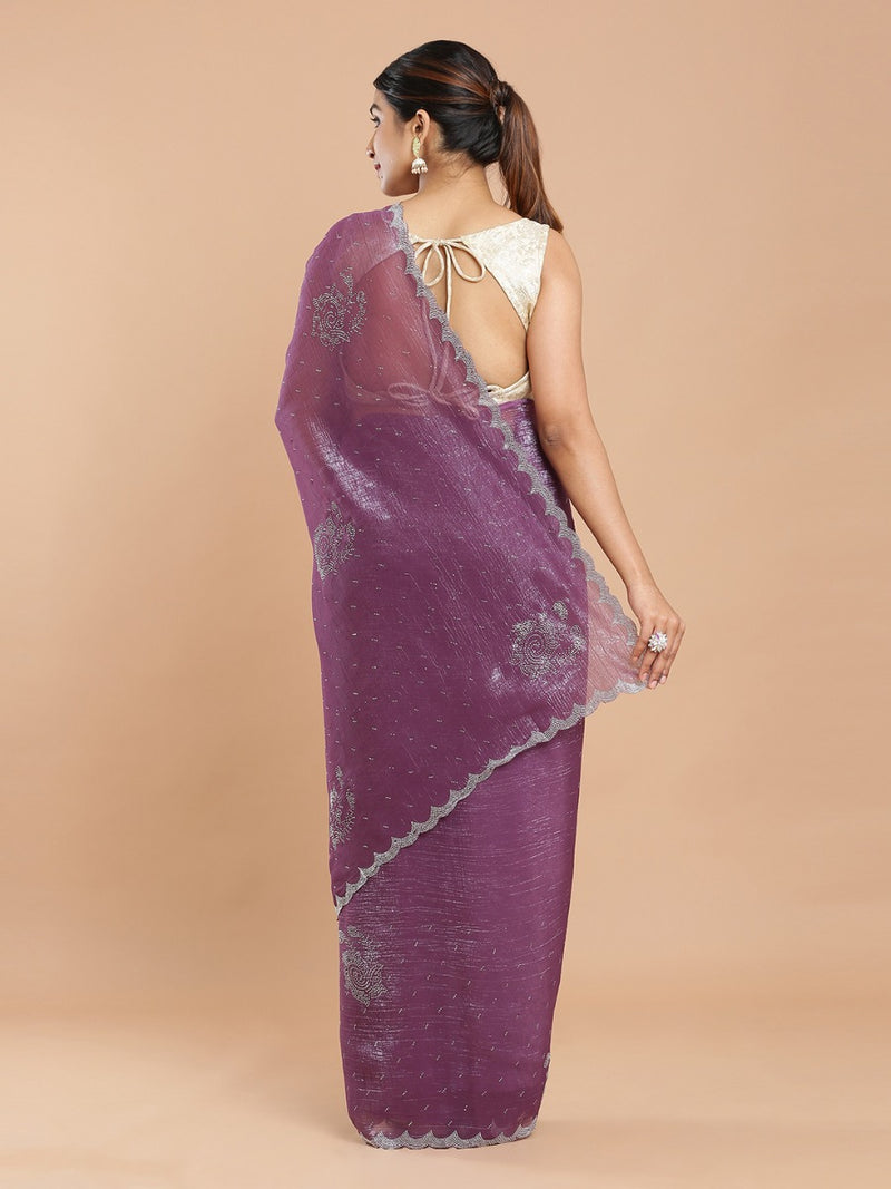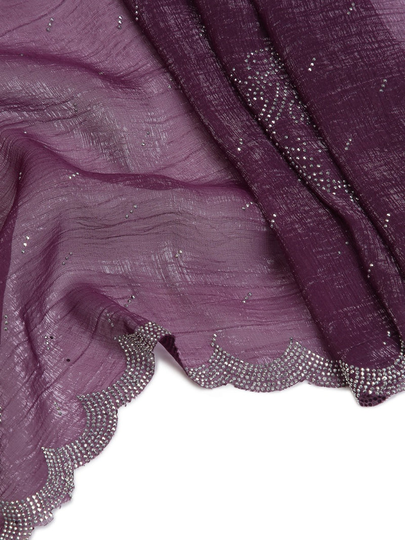 Dusty Grape Color Shimmer Chiffon Mini Stone All Over Design