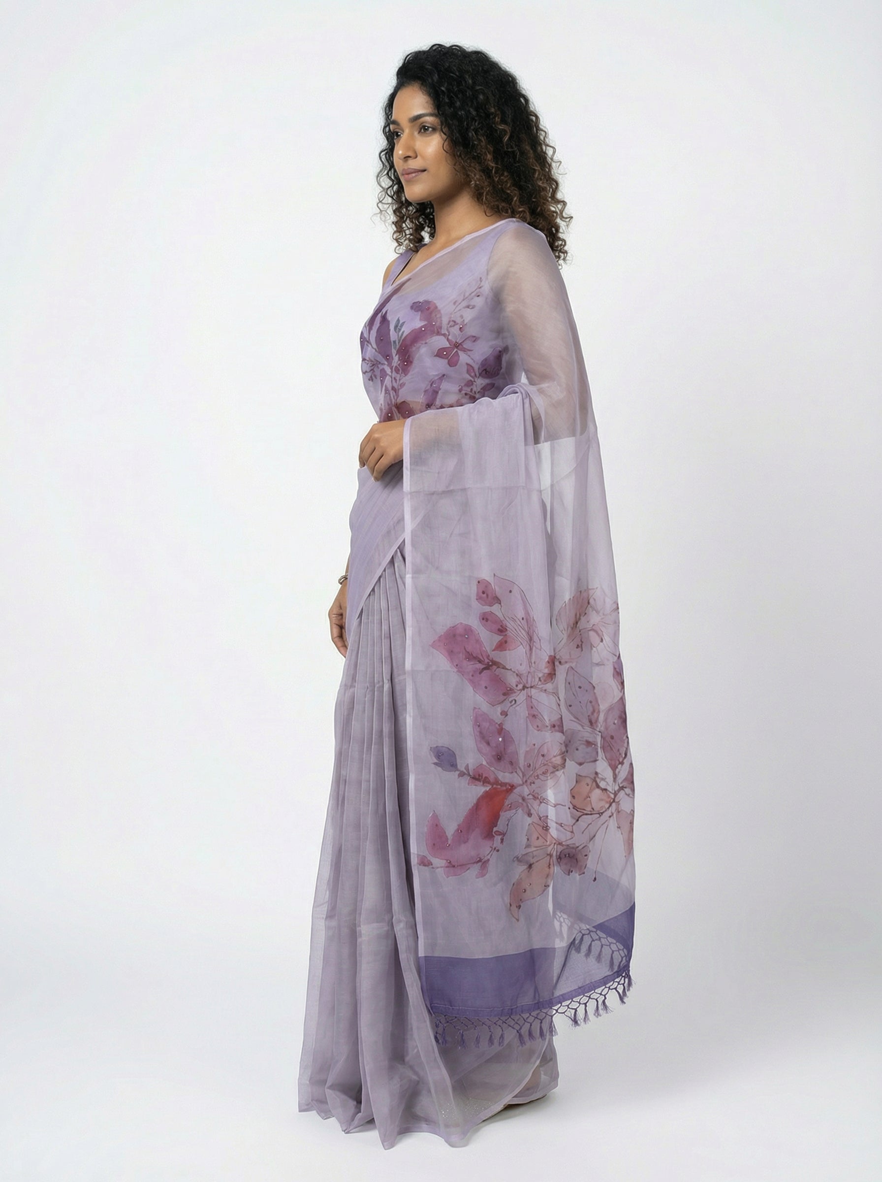 Experience timeless elegance with this lavender organza saree, crafted for the discerning wearer who values both tradition and contemporary style. The delicate organza fabric offers a luxurious sheen and graceful drape, creating an effortlessly sophisticated silhouette. The accompanying brush stroke blouse showcases modern artistic elements that add visual interest without overwhelming the classic saree aesthetic. This lavender ensemble works beautifully for weddings, festivals, and special gatherings, offering versatility across various occasions. The gentle color palette ensures it pairs seamlessly with your existing jewelry collection while making a distinctive fashion statement.