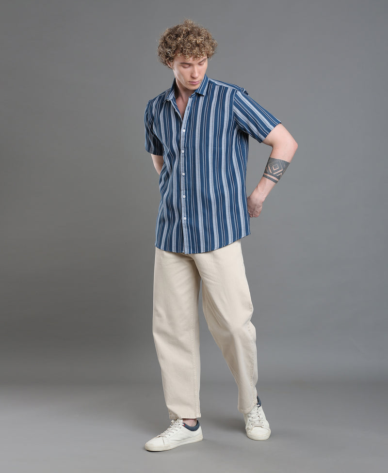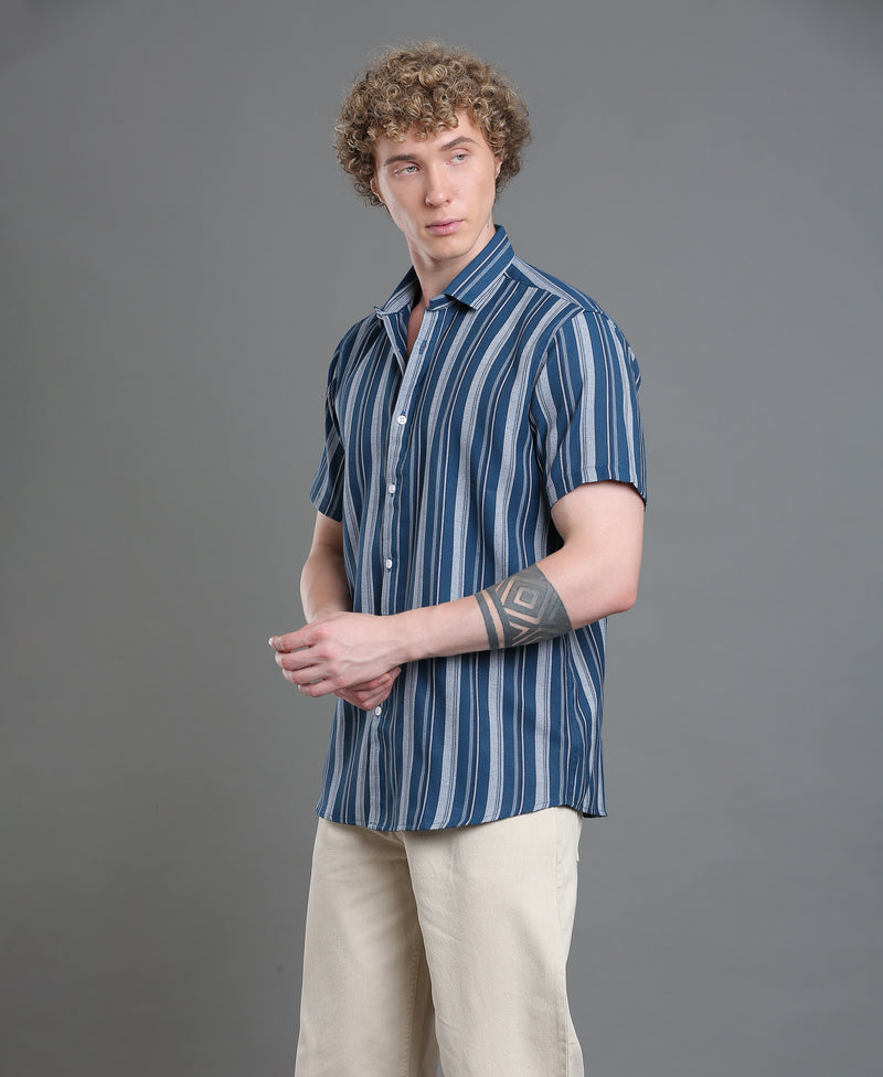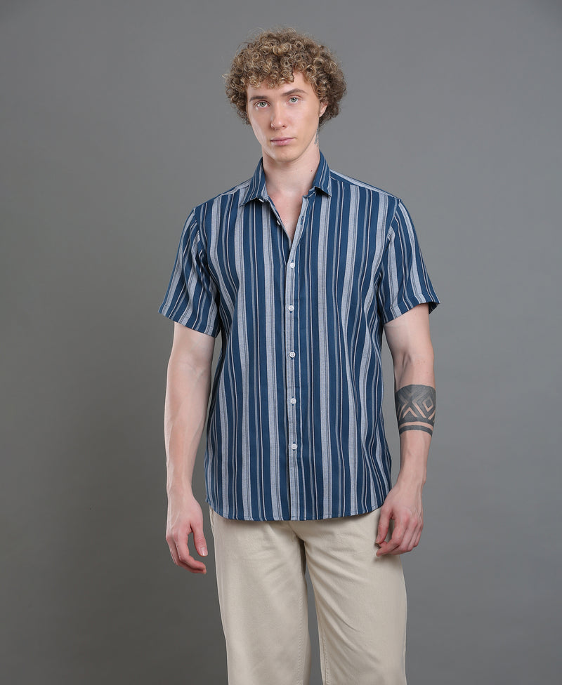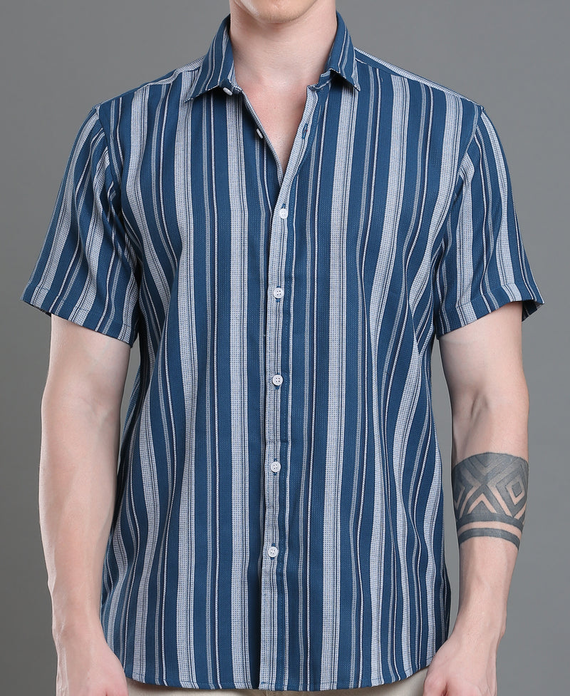 Azure Stripe Tailored Shirt For Men