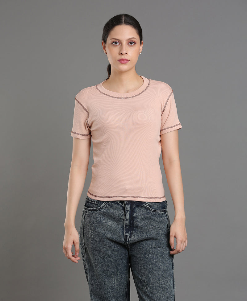 Blush Rib Knit Crop Top For Women