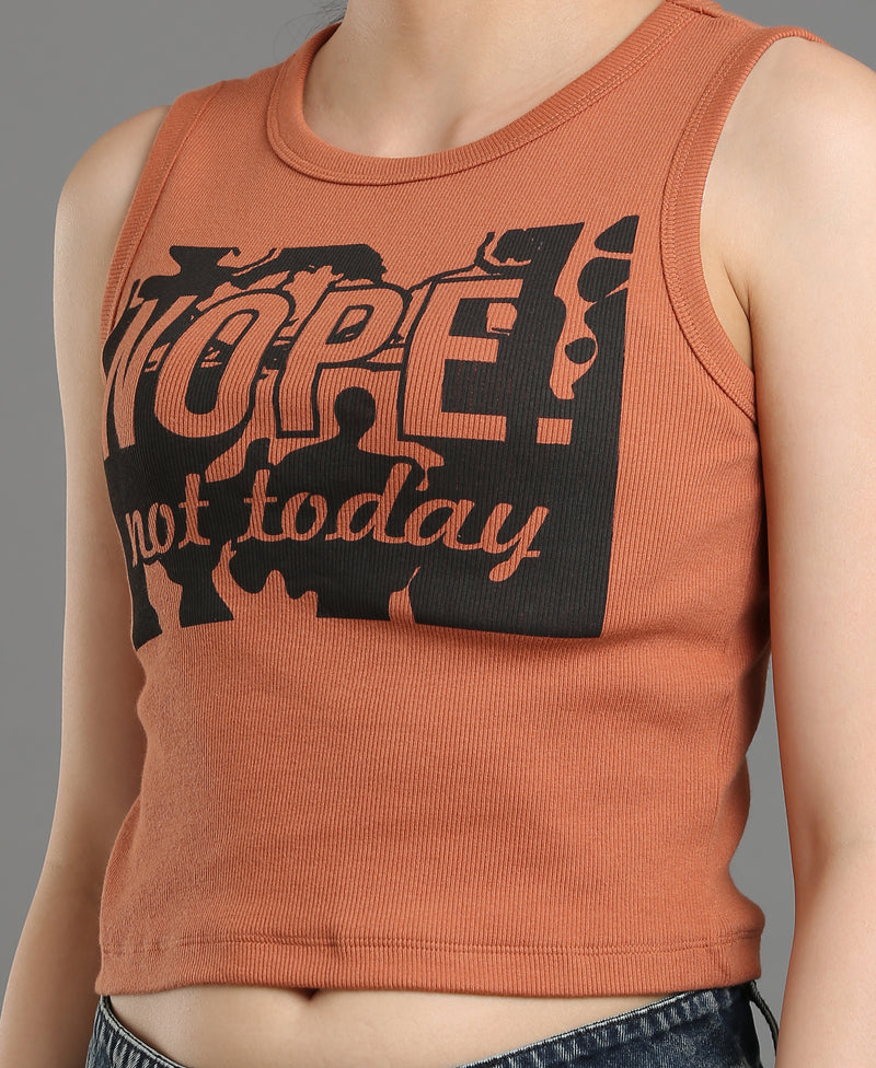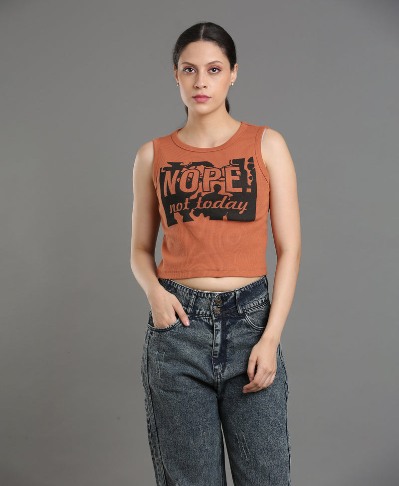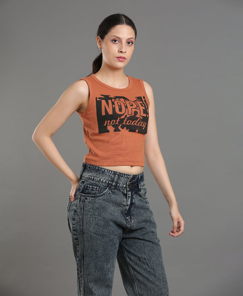 Cocoa Print Rib Knit Crop Top For Women