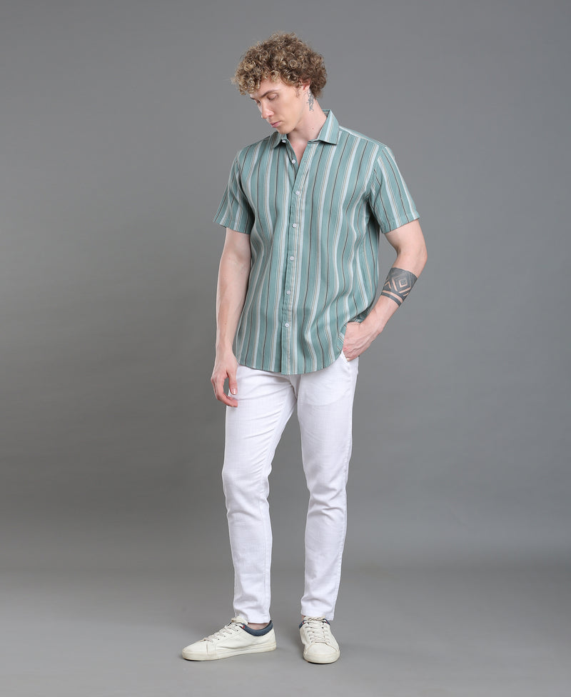 Emerald Stripe Tailored Shirt For Men