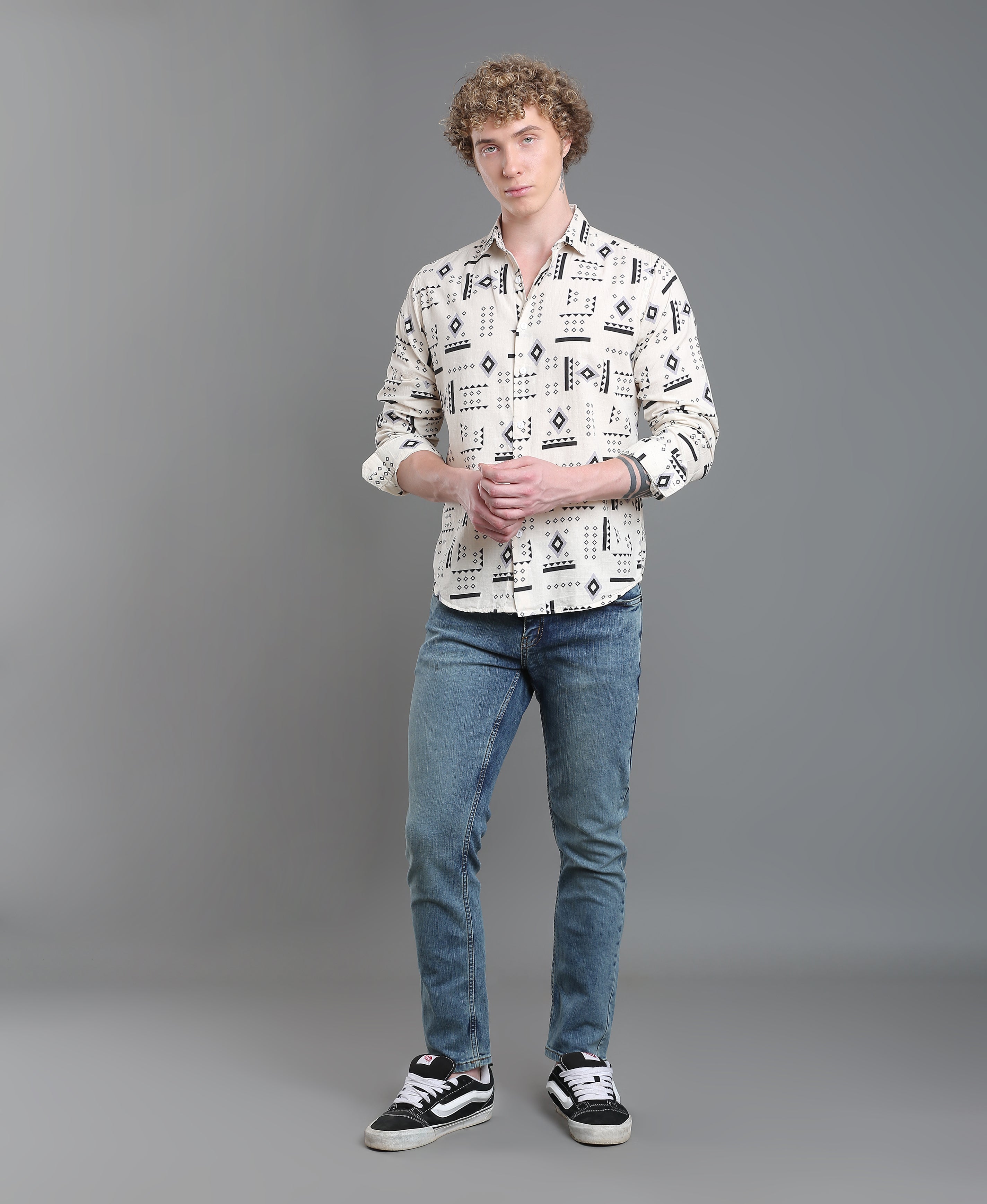 Frosted Sands Slim Fit Black Printed Shirt For Men