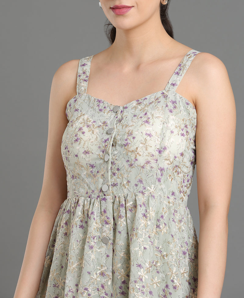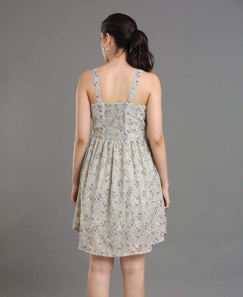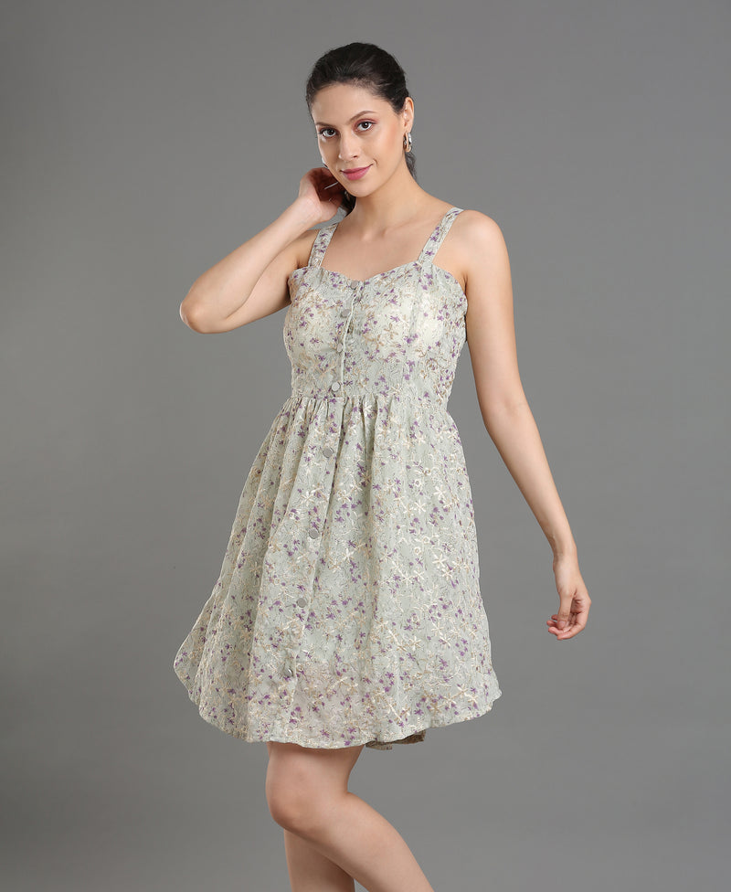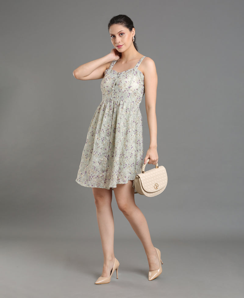 Ivory Bloom Embroidered Dress For Women