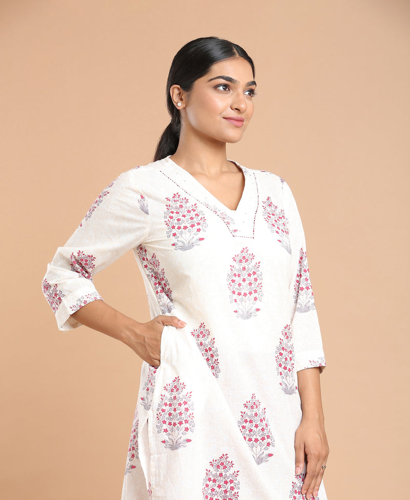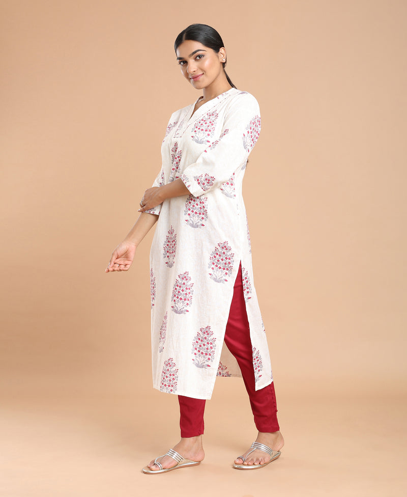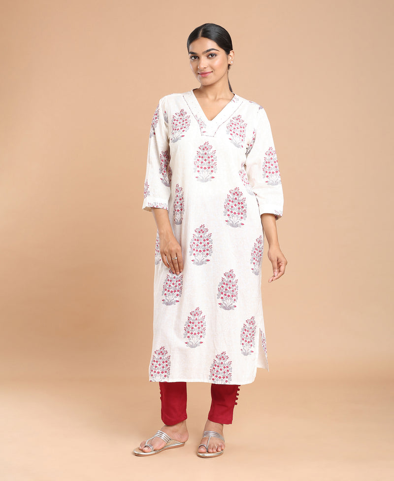 Ivory Straight Cotton Kurti For Women