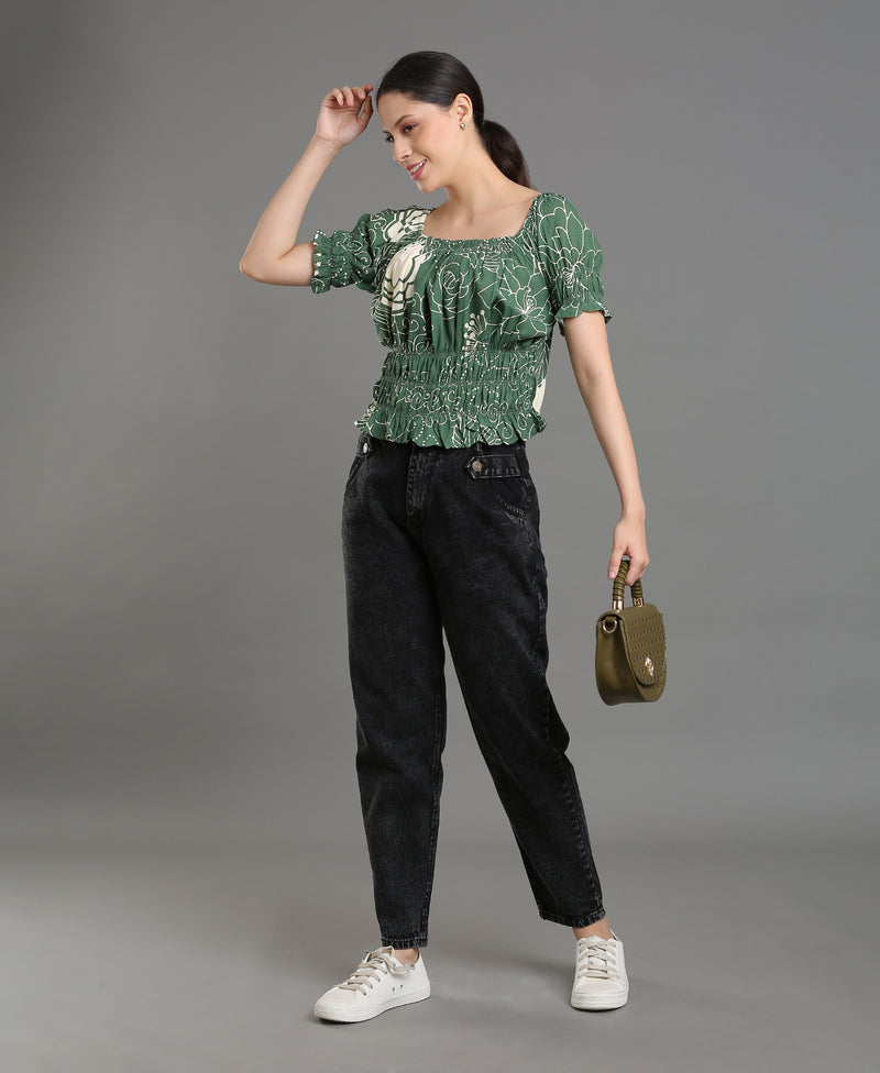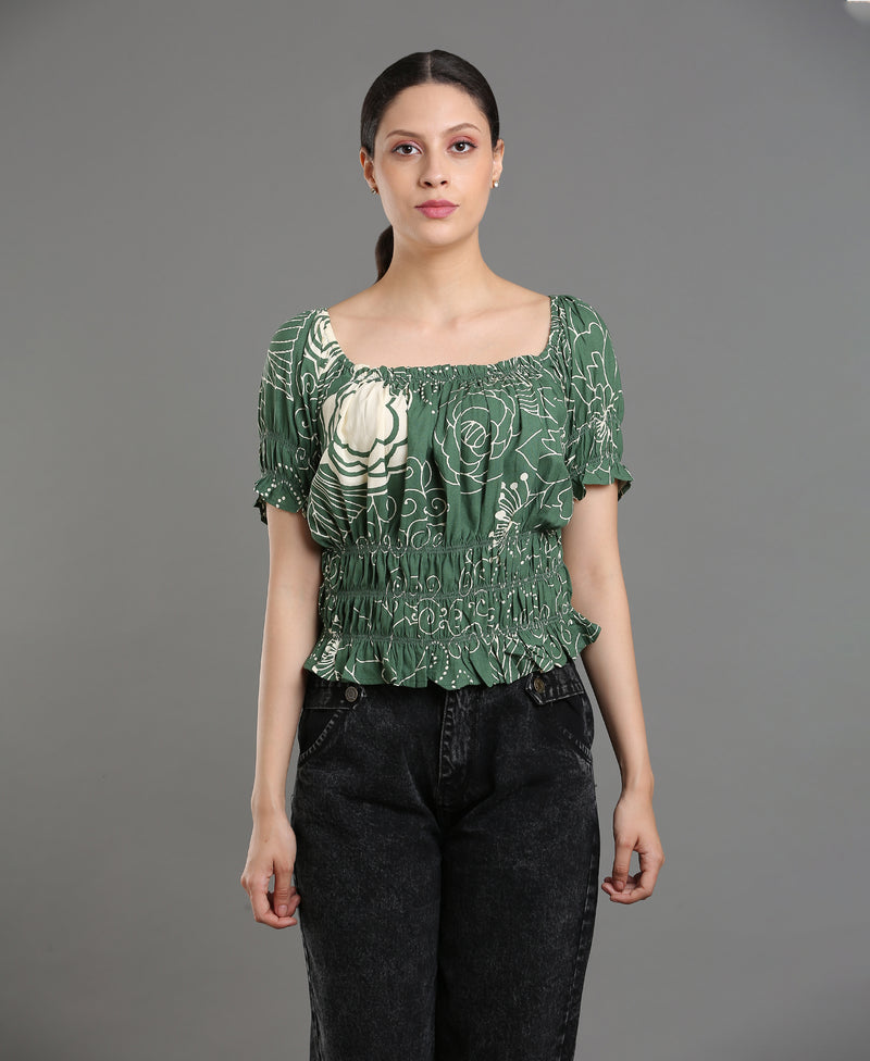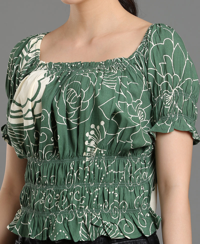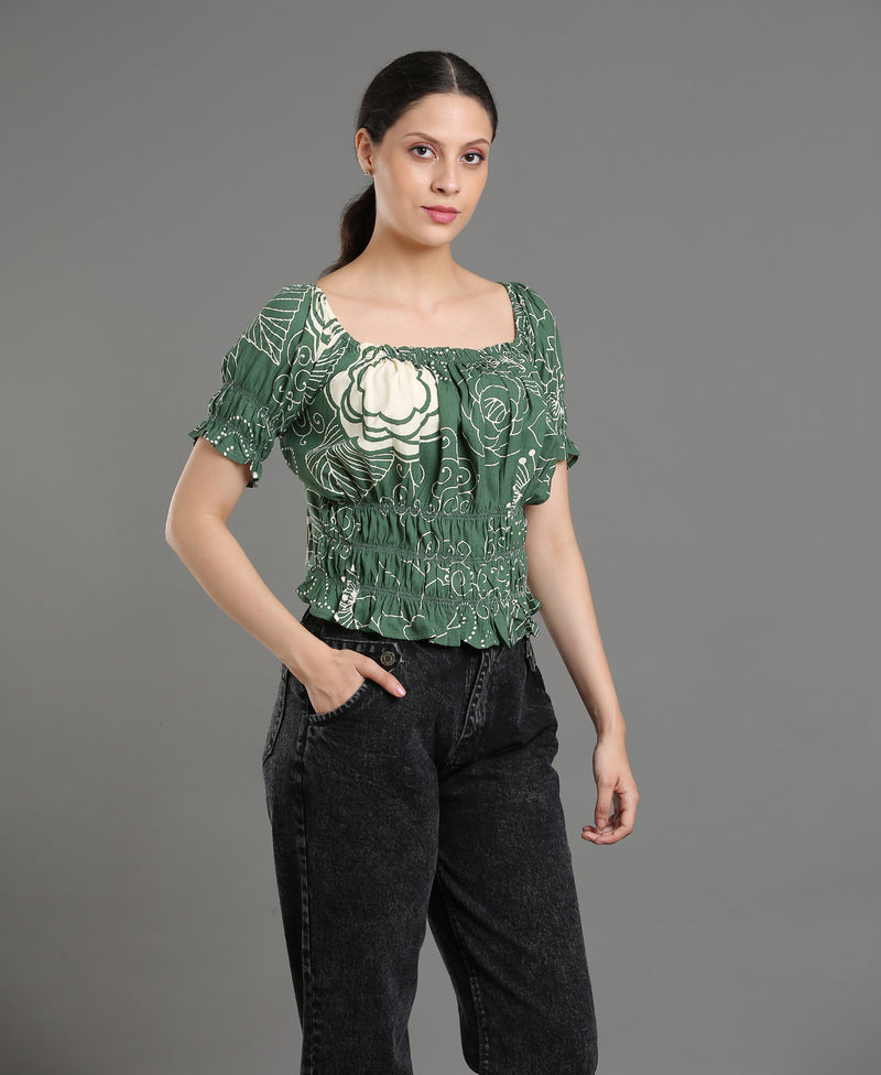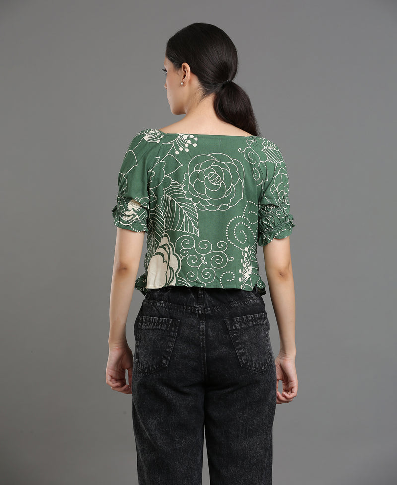Leaf Bloom Viscose Crop Top For Women