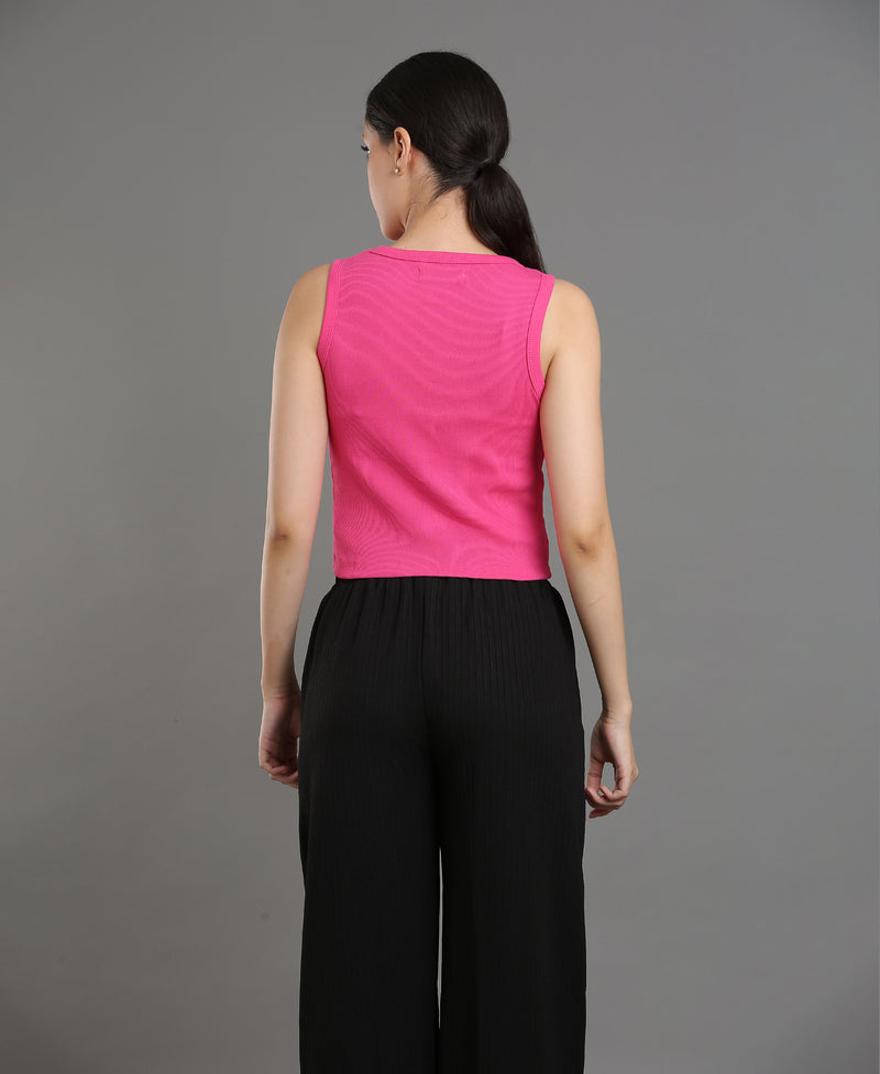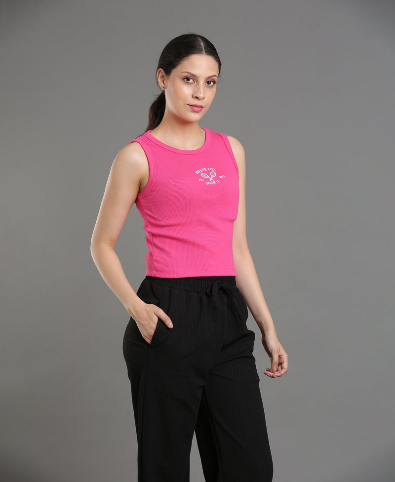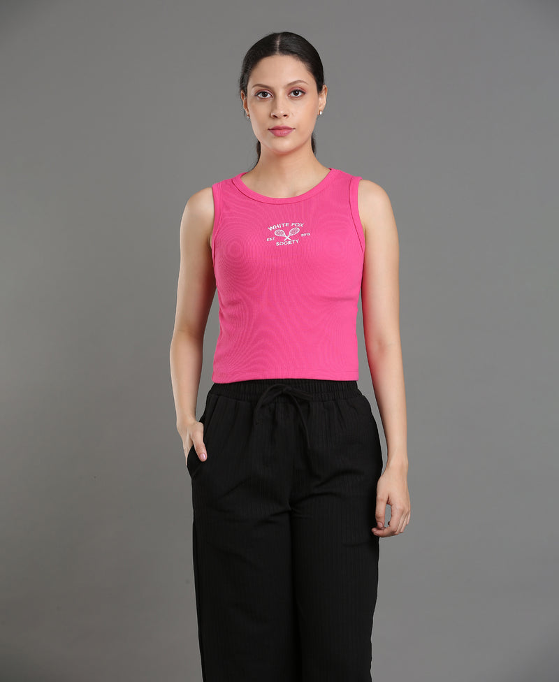 Magenta Bloom Embroidered Crop Top For Women