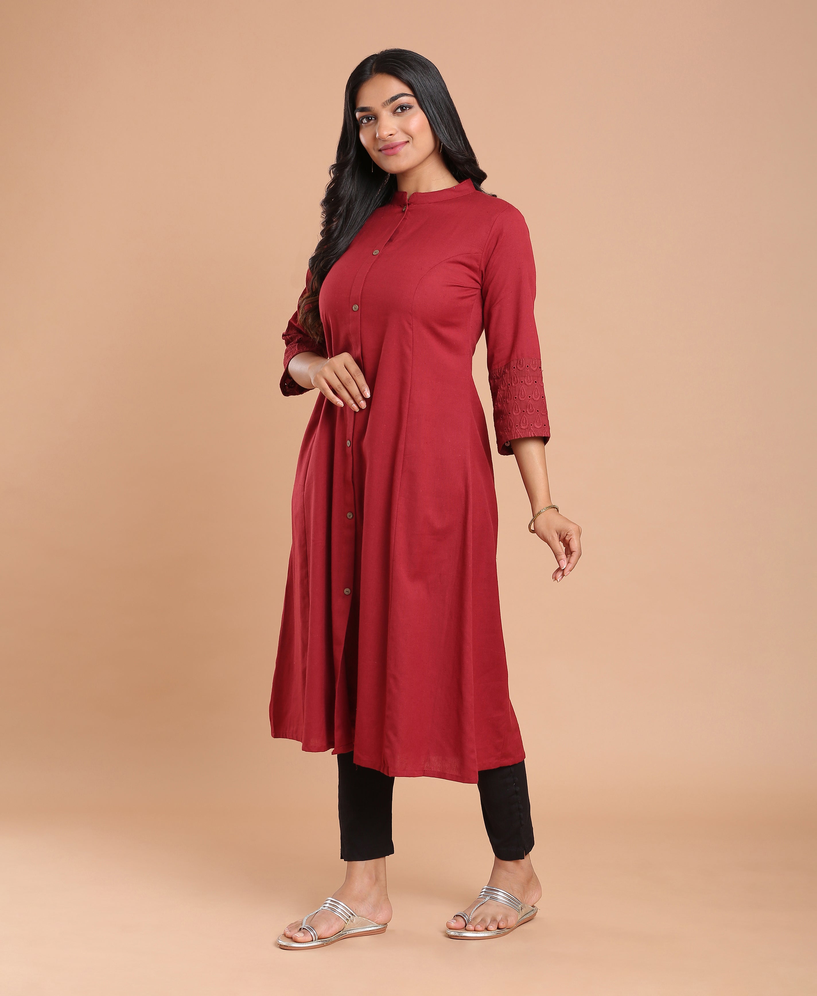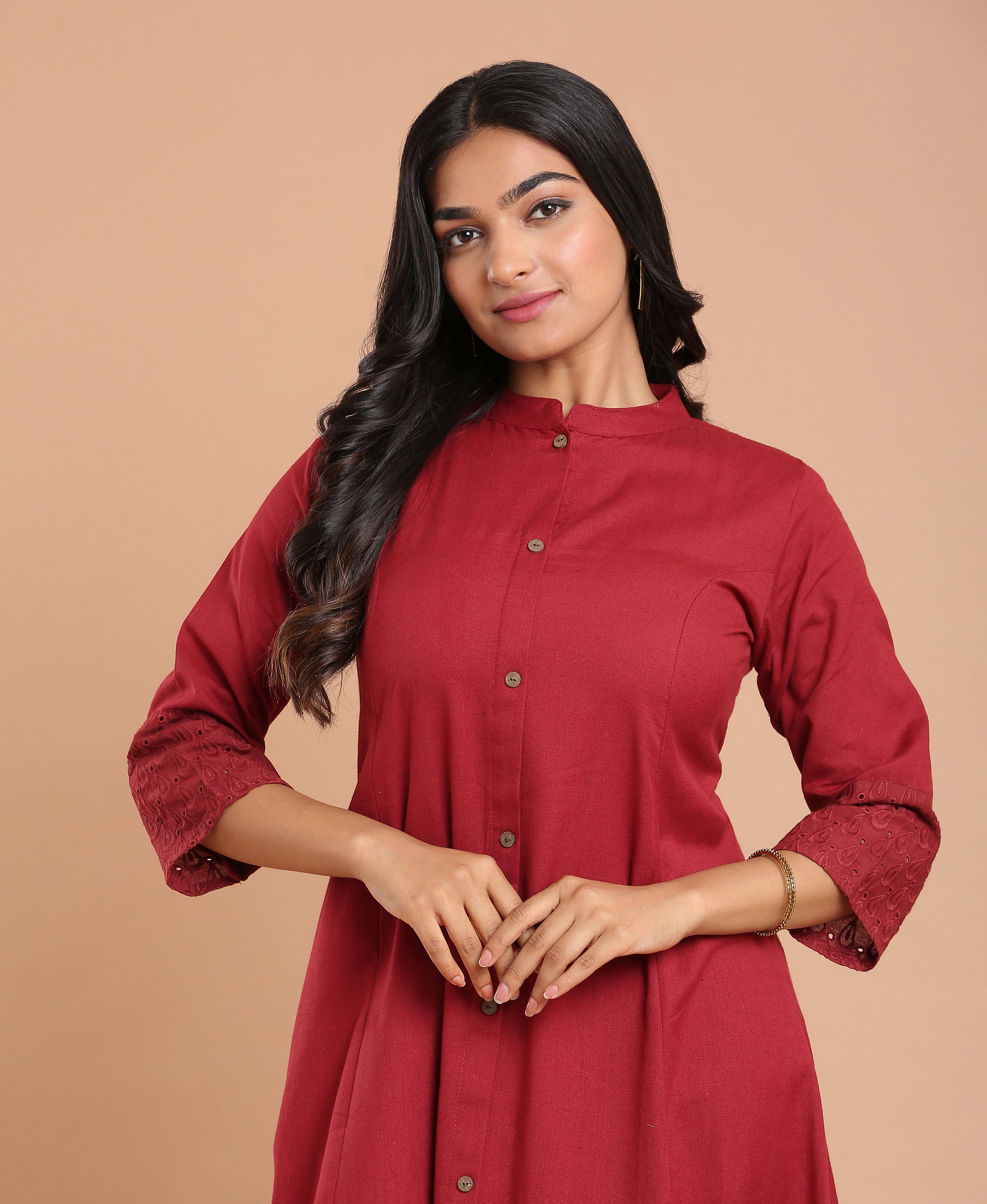 Maroon Hakoba Princess Kurti For Women