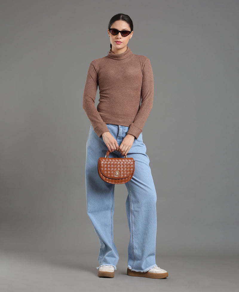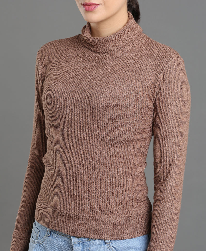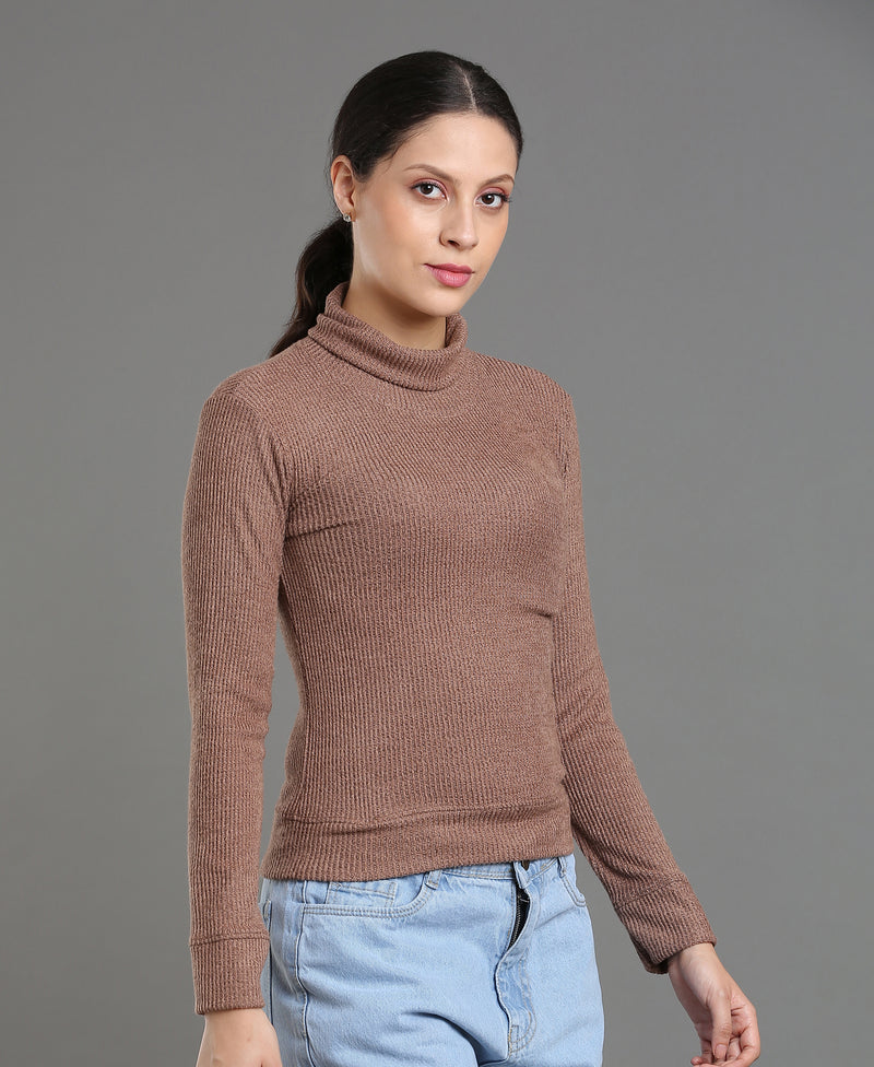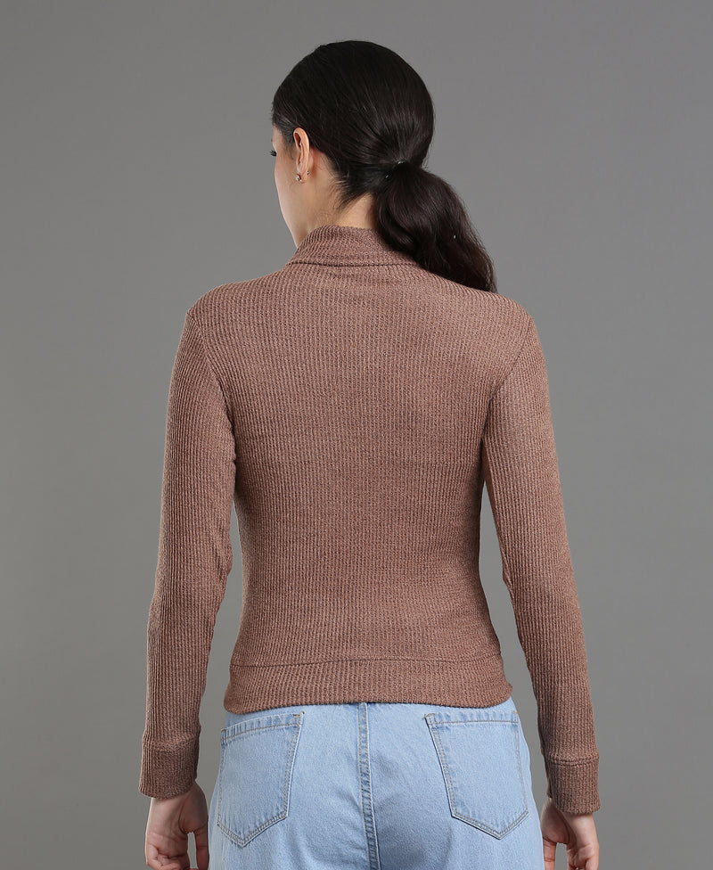 Maroon Waffle High Neck Tee For Women