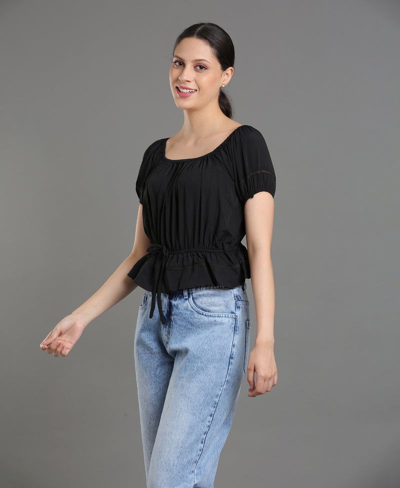 Noir Poly Crop Top For Women