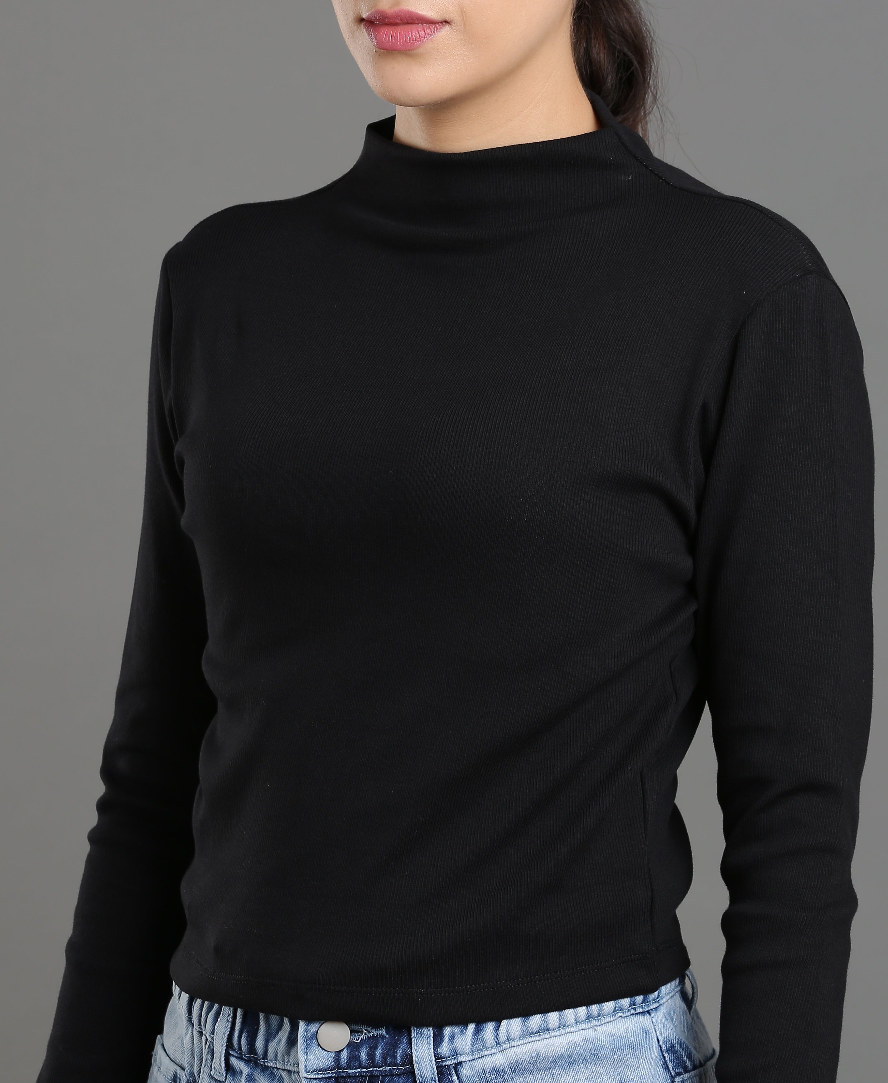 Noir Rib Knit Crop Top For Women