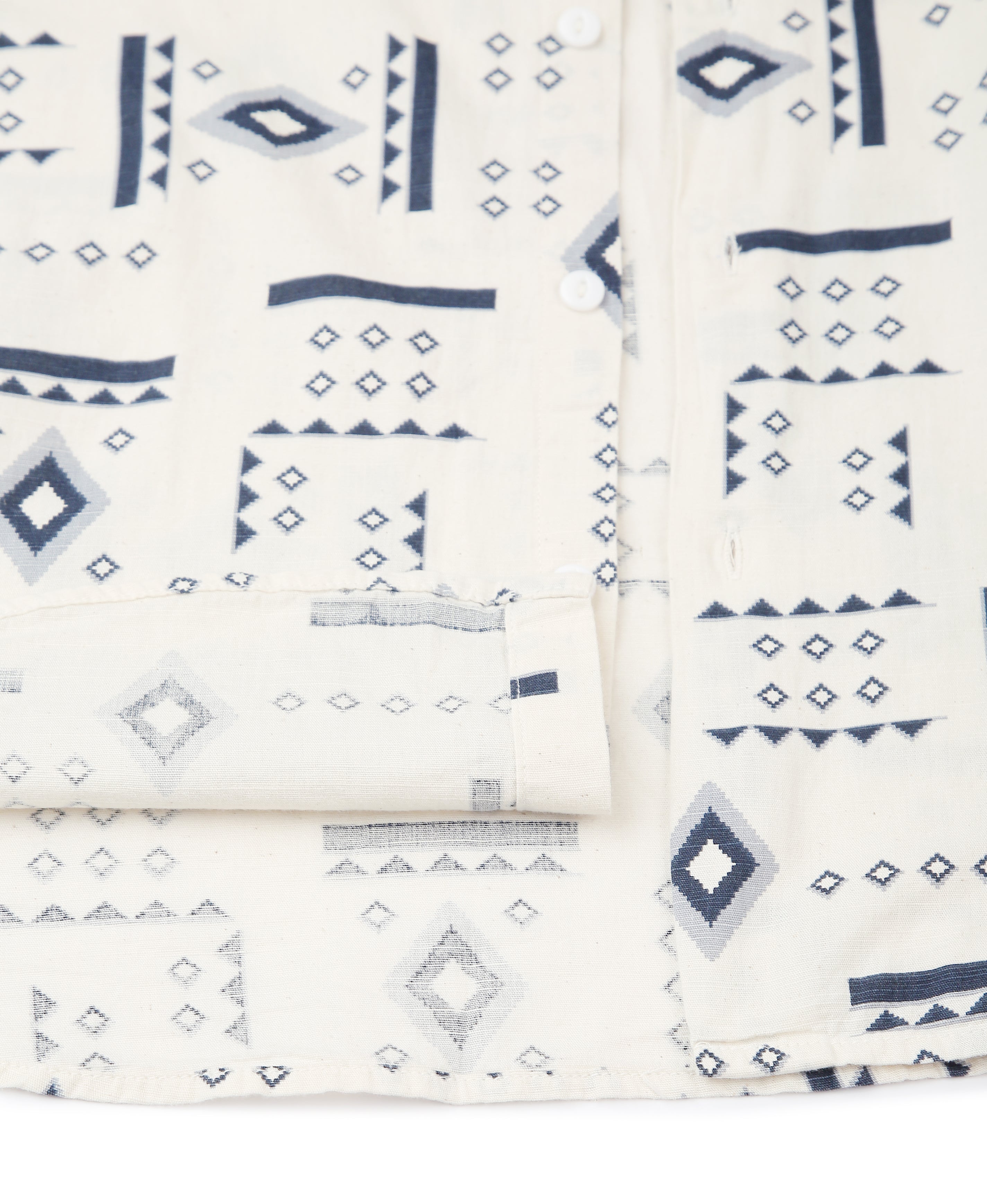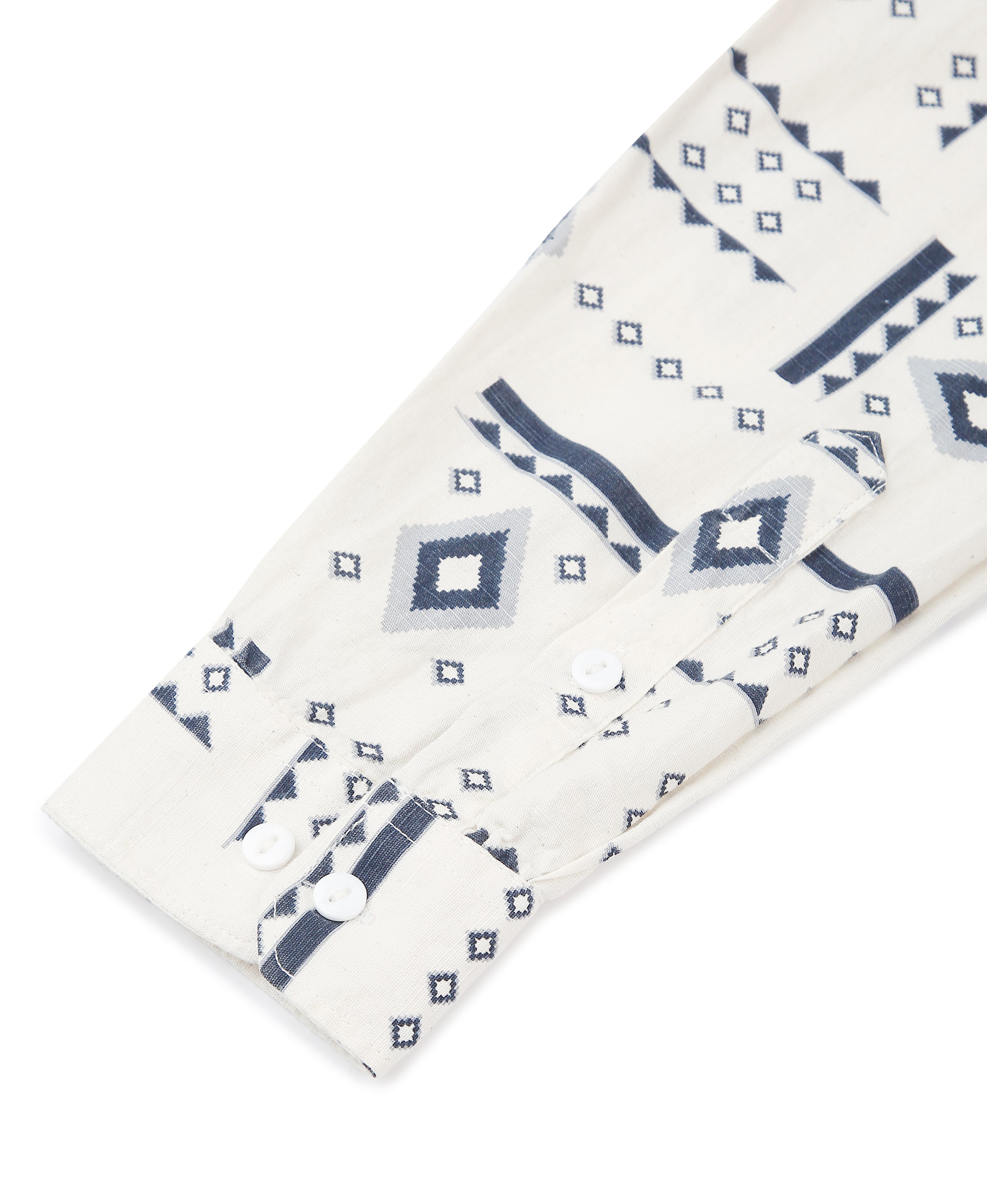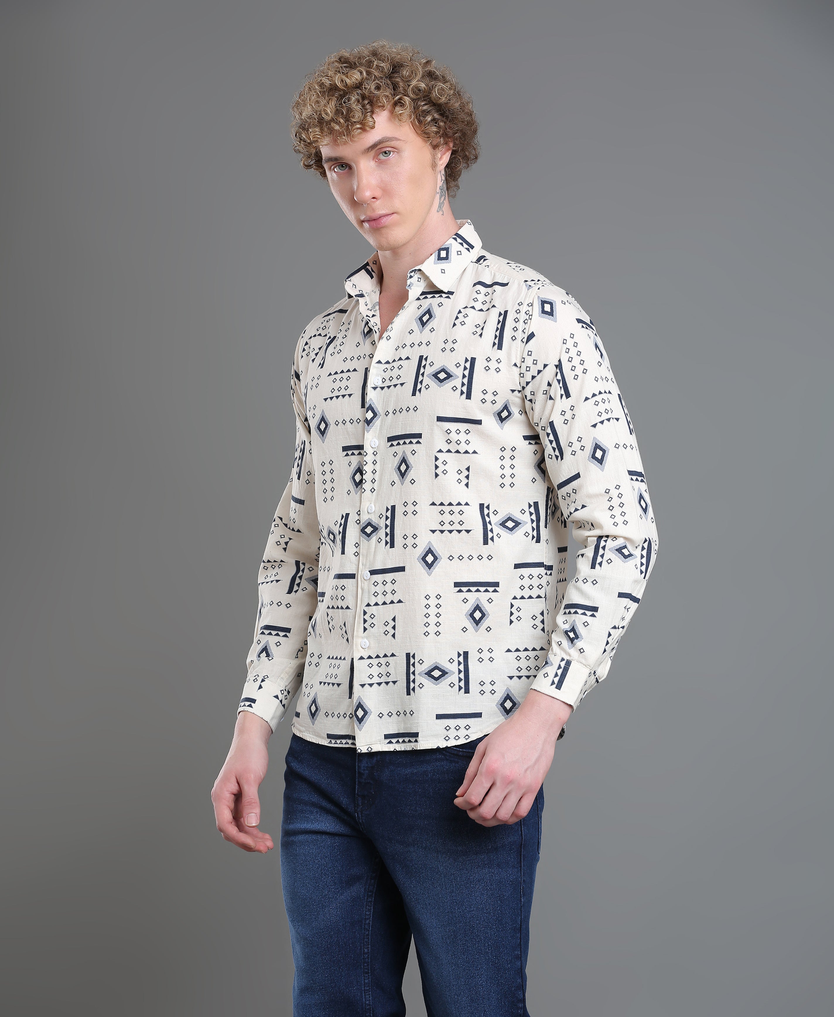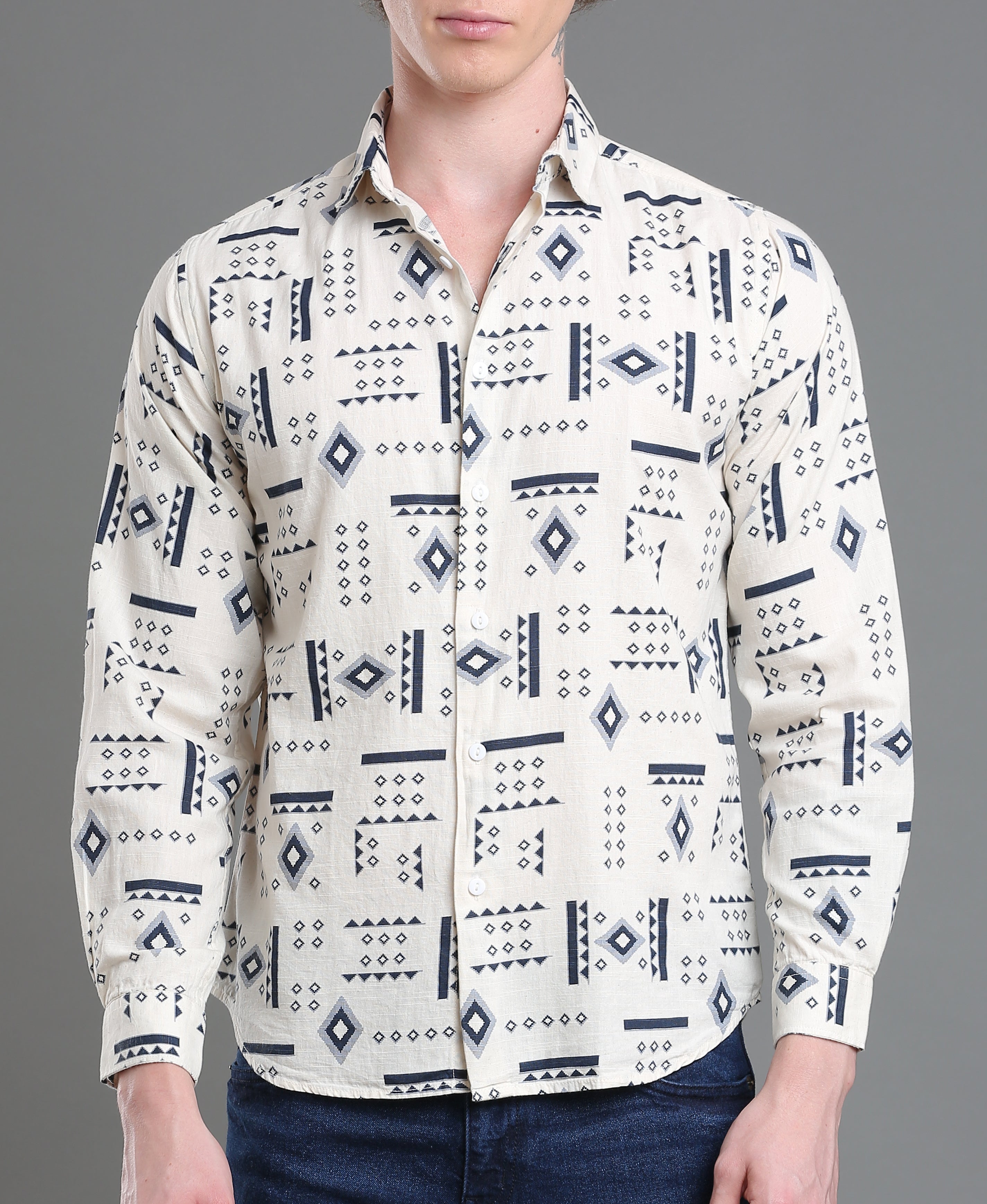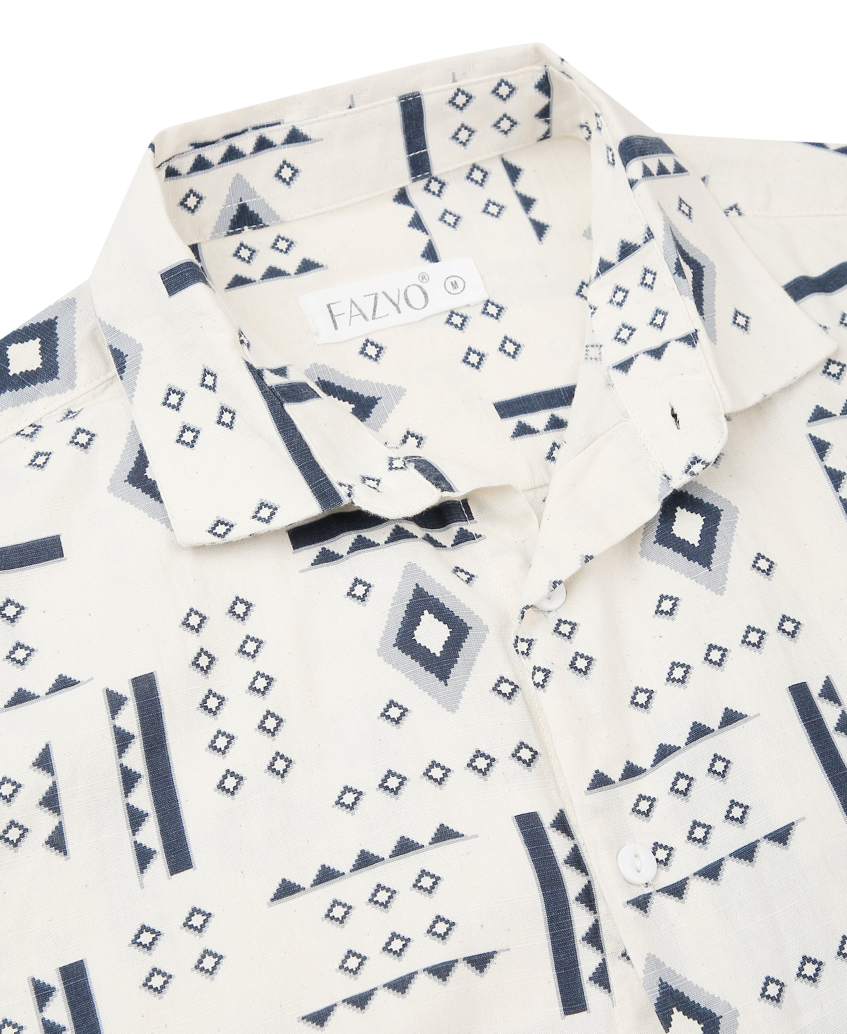 Oyster Bloom Slim Navy Printed Linen Shirt For Men