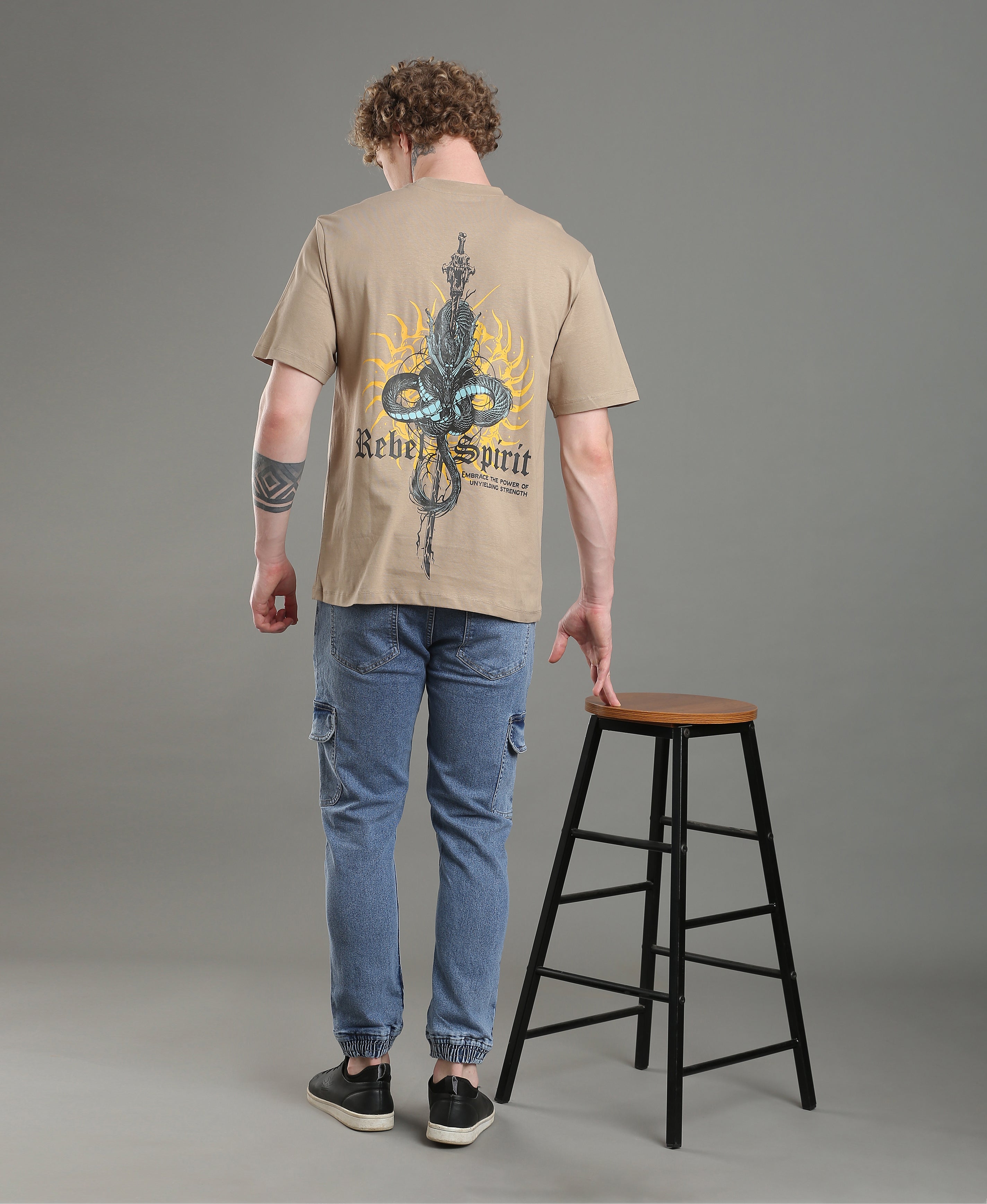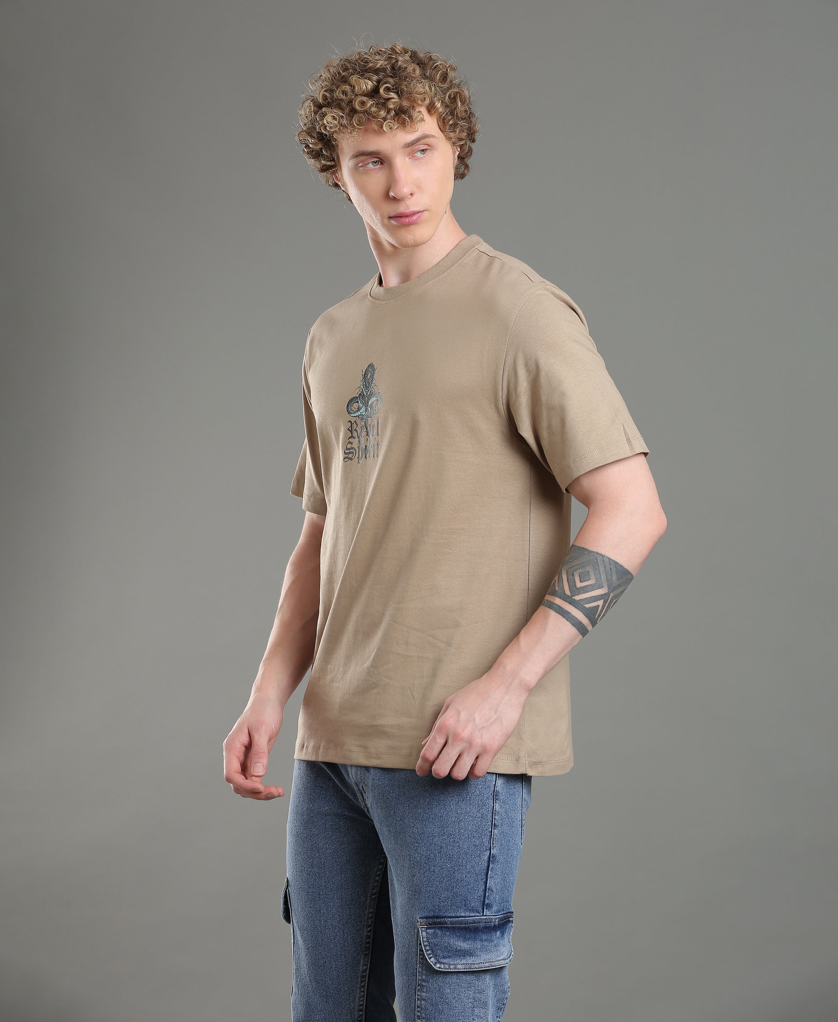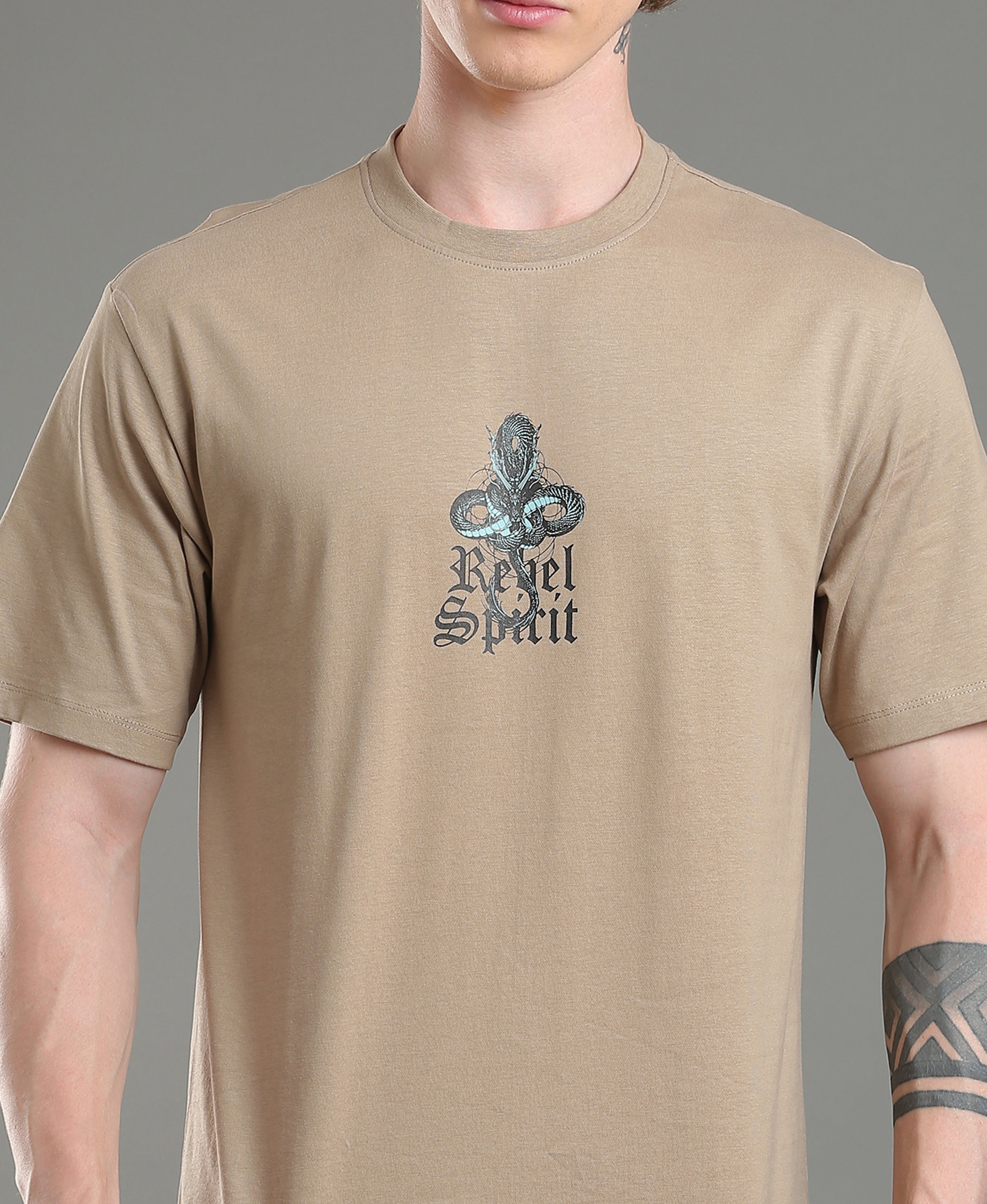 Sand Emblem Oversized Tee For Men