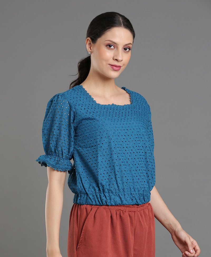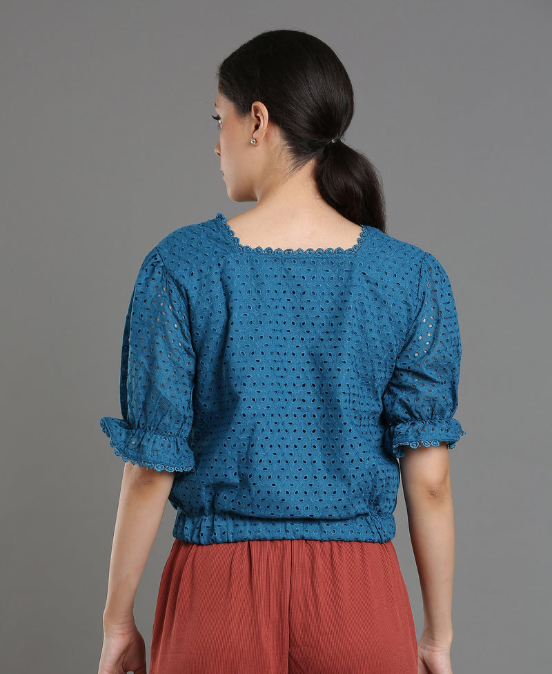 Teal Lace Blend Crop Top For Women
