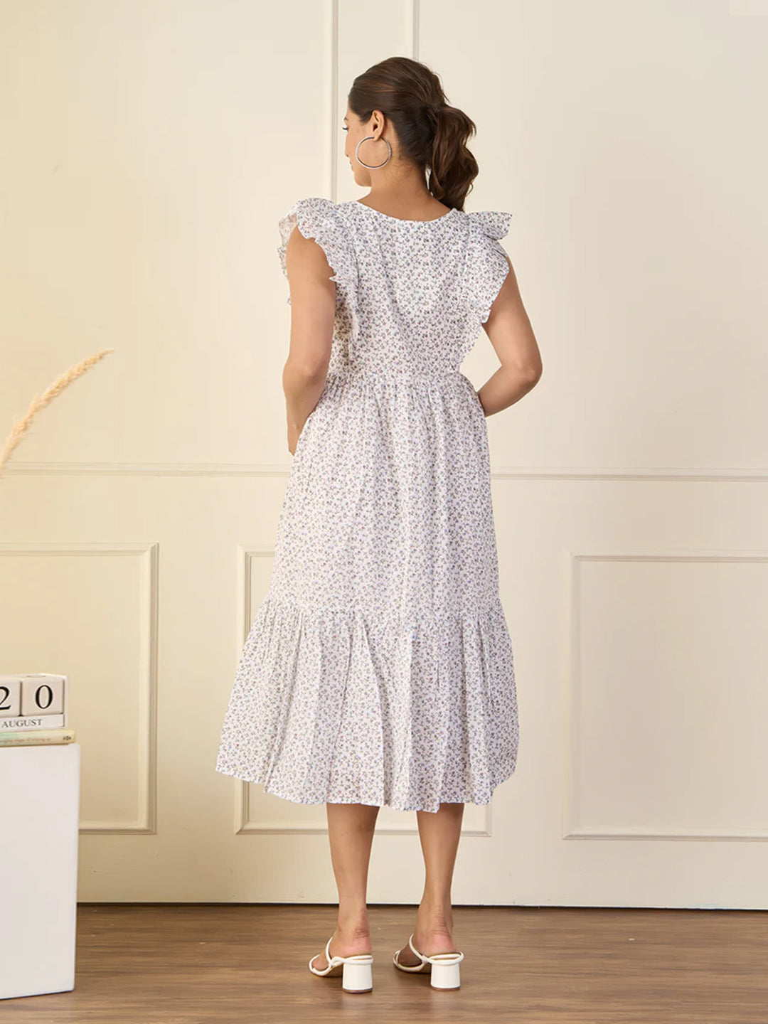 Floral Printed Blue Cotton Maternity Dress