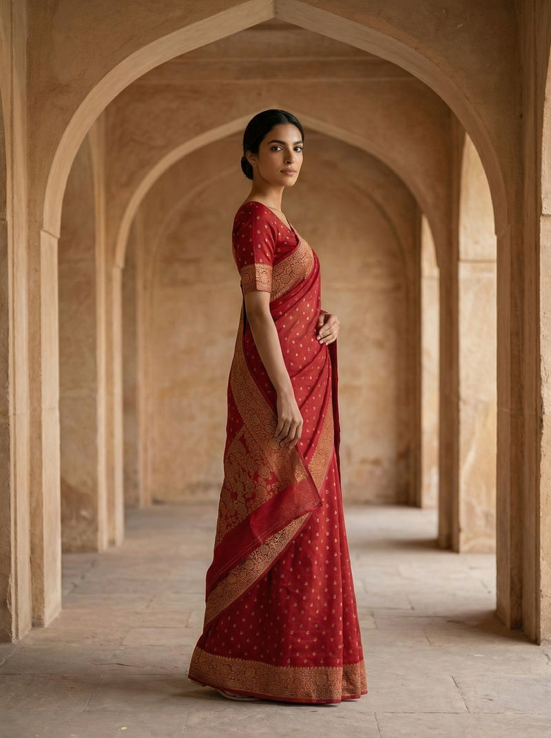 Georgette Banarasi Chili Red Traditional Butta Saree