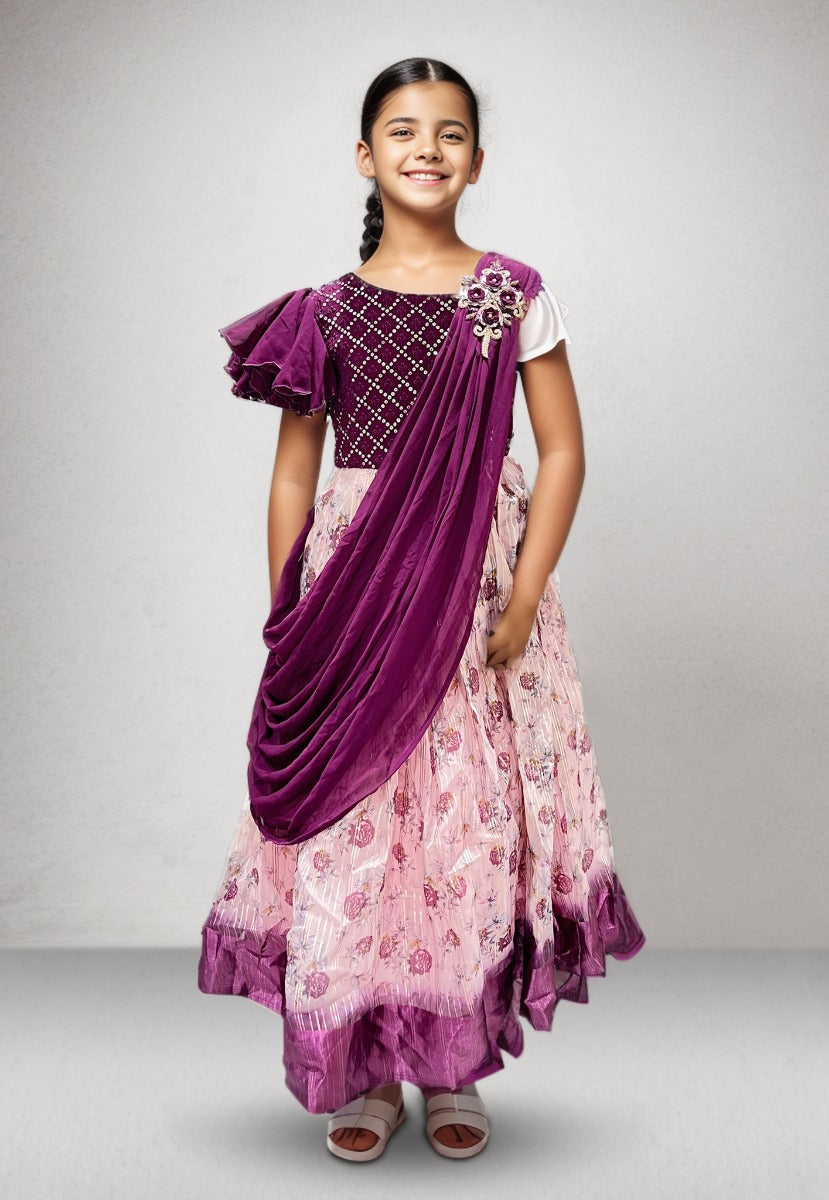 Georgette & floral organza kids gown