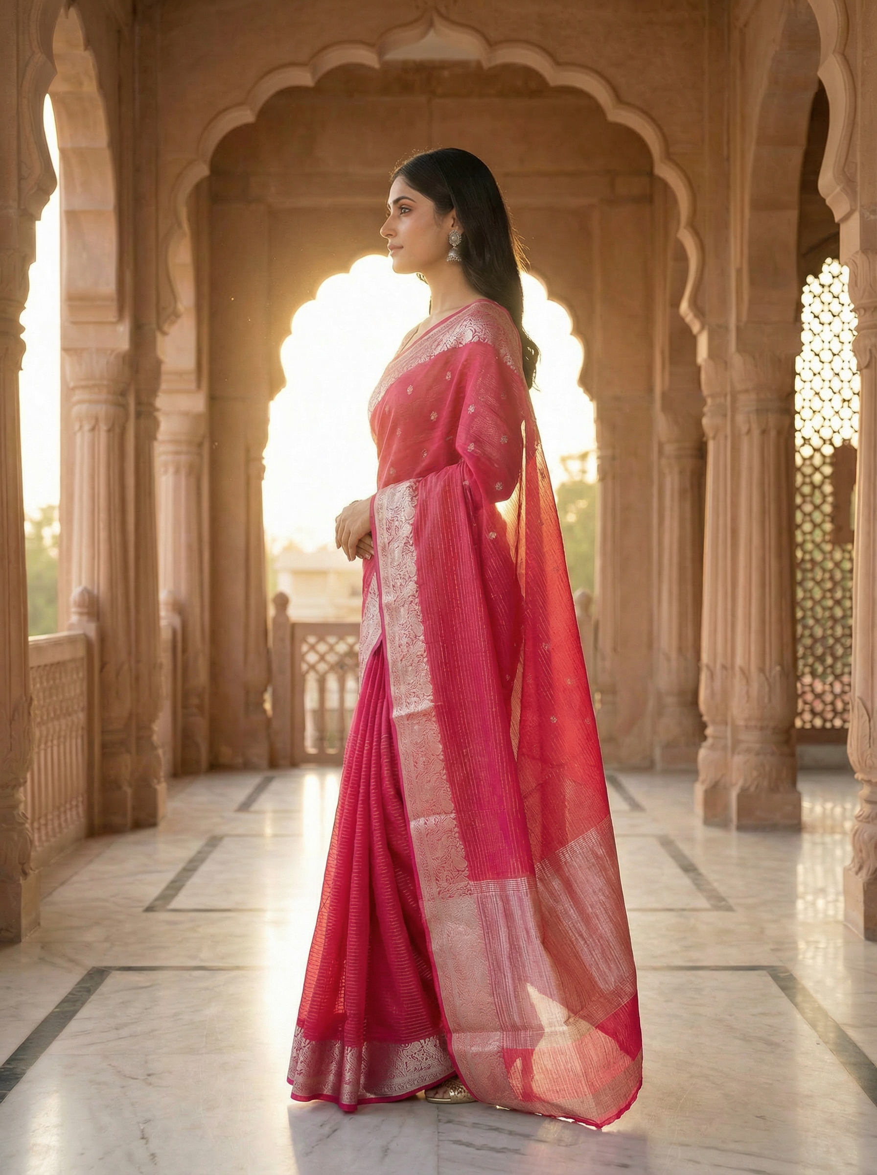 Georgette Banarasi Rani Pink Zari Butti Saree