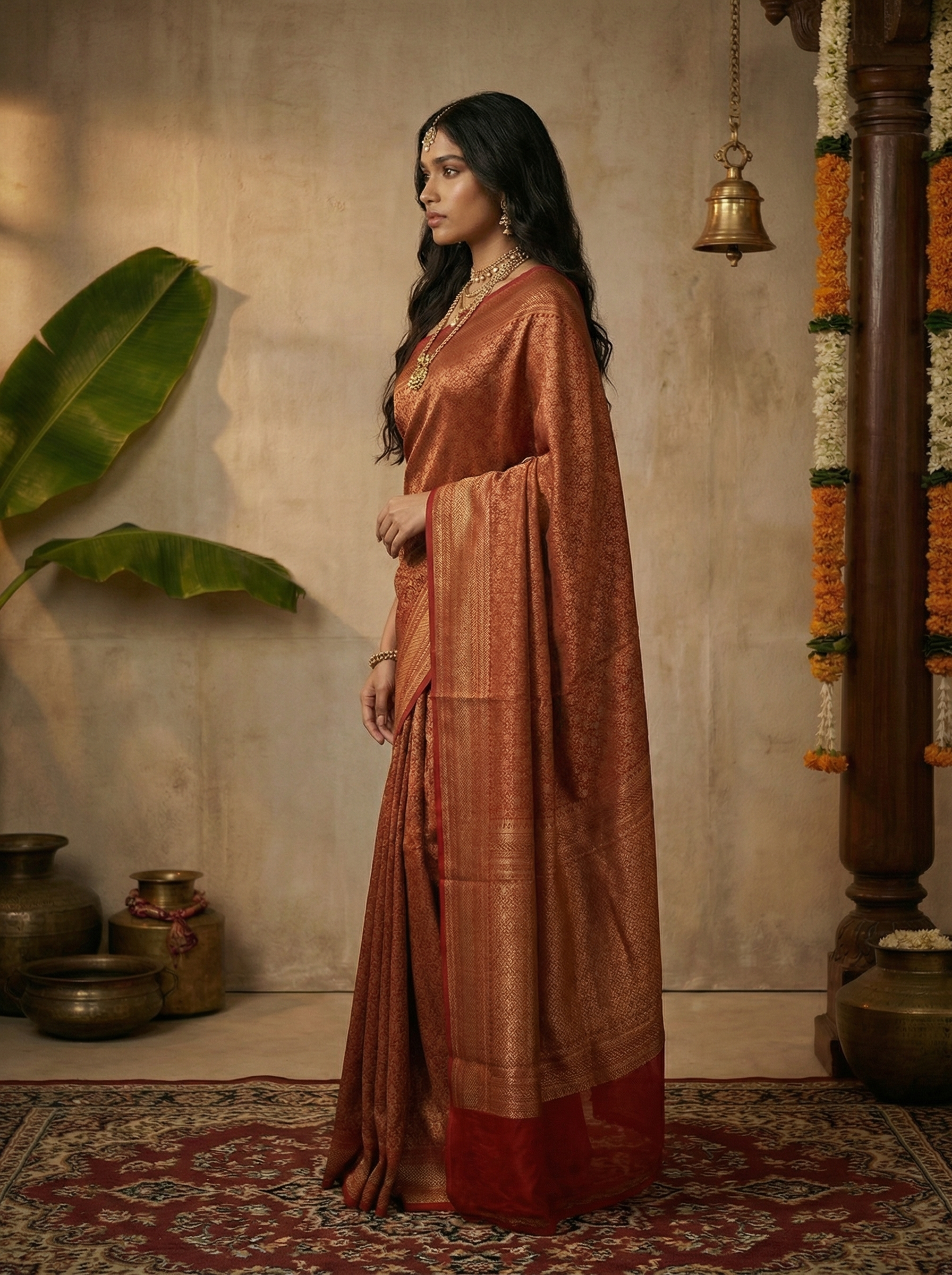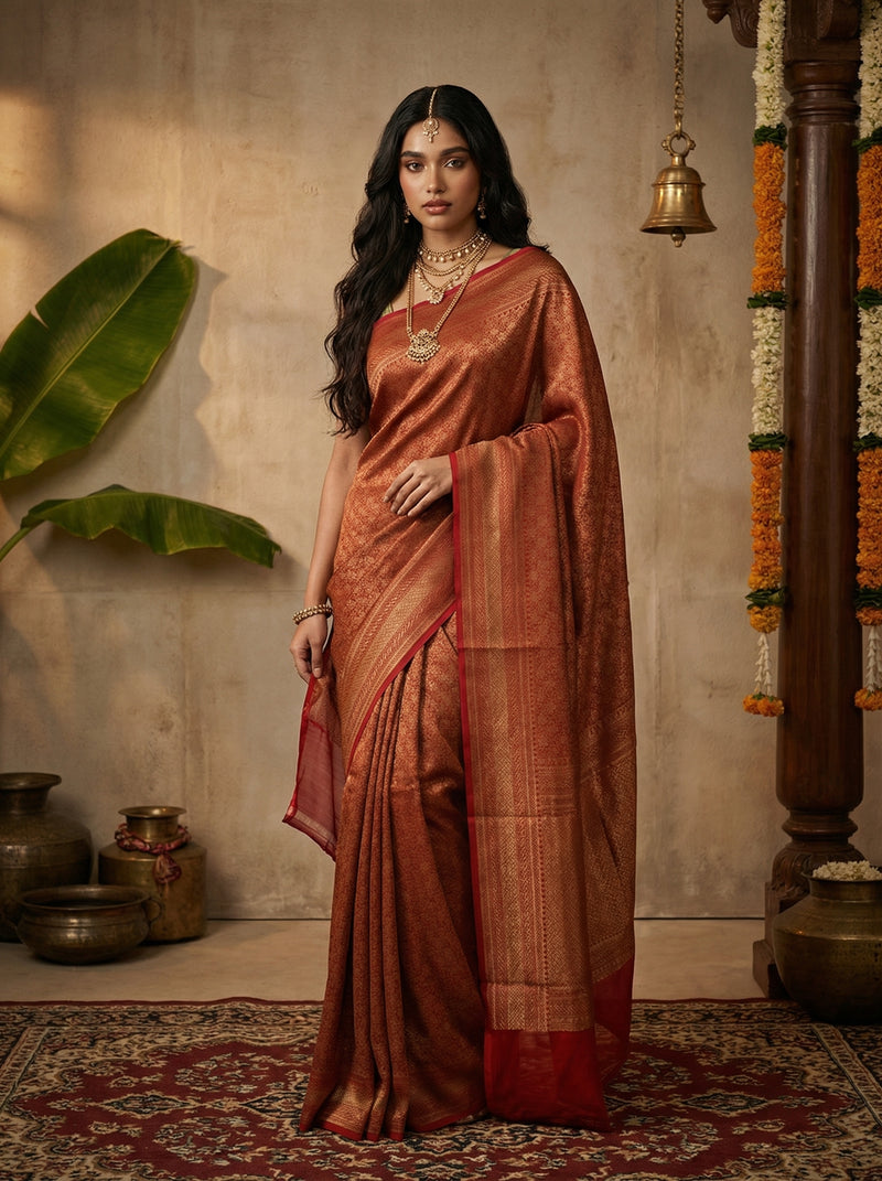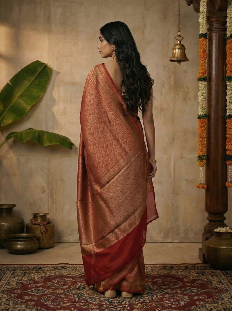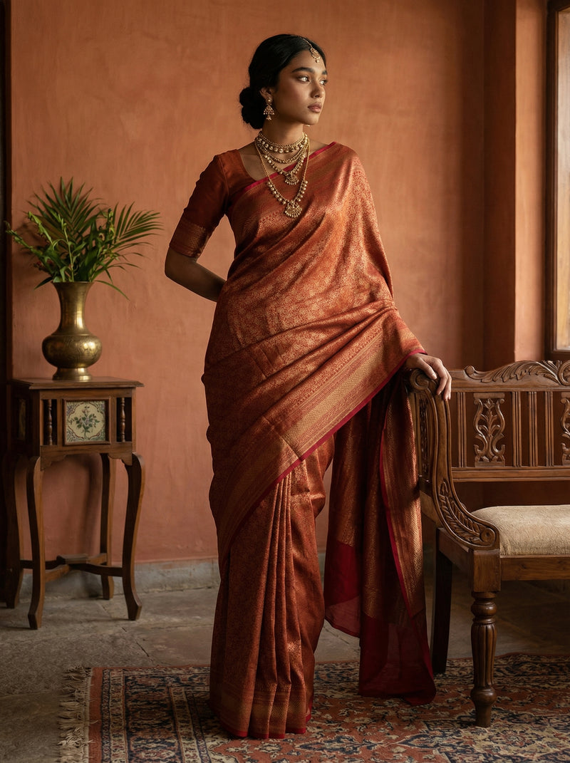 Georgette Banarasi Rust Copper Intricate Weave Saree