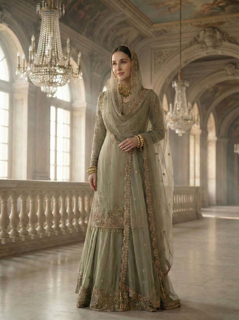 Elevate your festive wardrobe with this stunning Green Handworked Bead & Sequin Lehenga Set. Crafted with meticulous attention to detail, each piece features intricate beadwork and shimmering sequins that catch the light beautifully. The rich green hue complements all skin tones, making it perfect for weddings, celebrations, and special occasions. The traditional lehenga silhouette offers comfort and elegance, while the handcrafted embellishments showcase authentic artisanal craftsmanship. An ideal choice for those seeking timeless ethnic wear with contemporary flair.