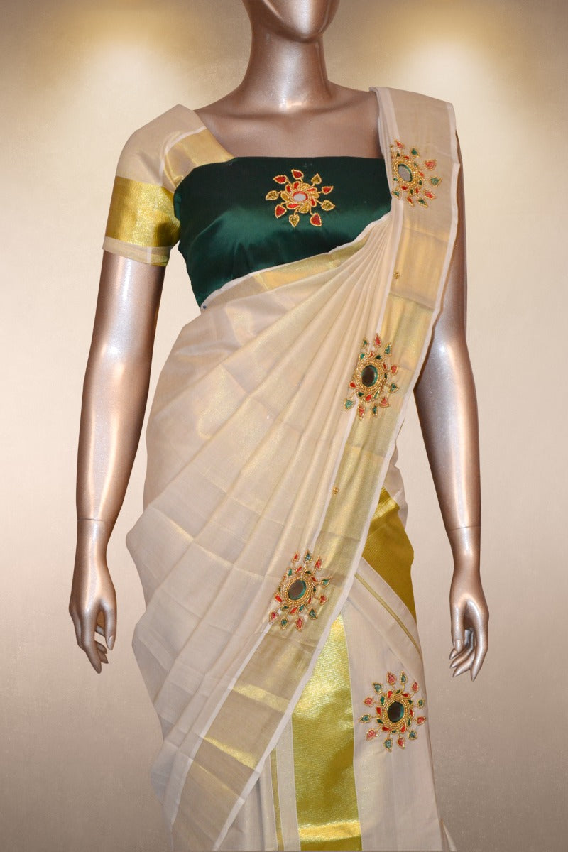 - Blouse Piece: 0.8 meters (unstitched, attached with saree)