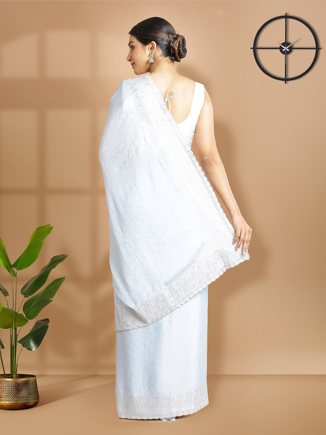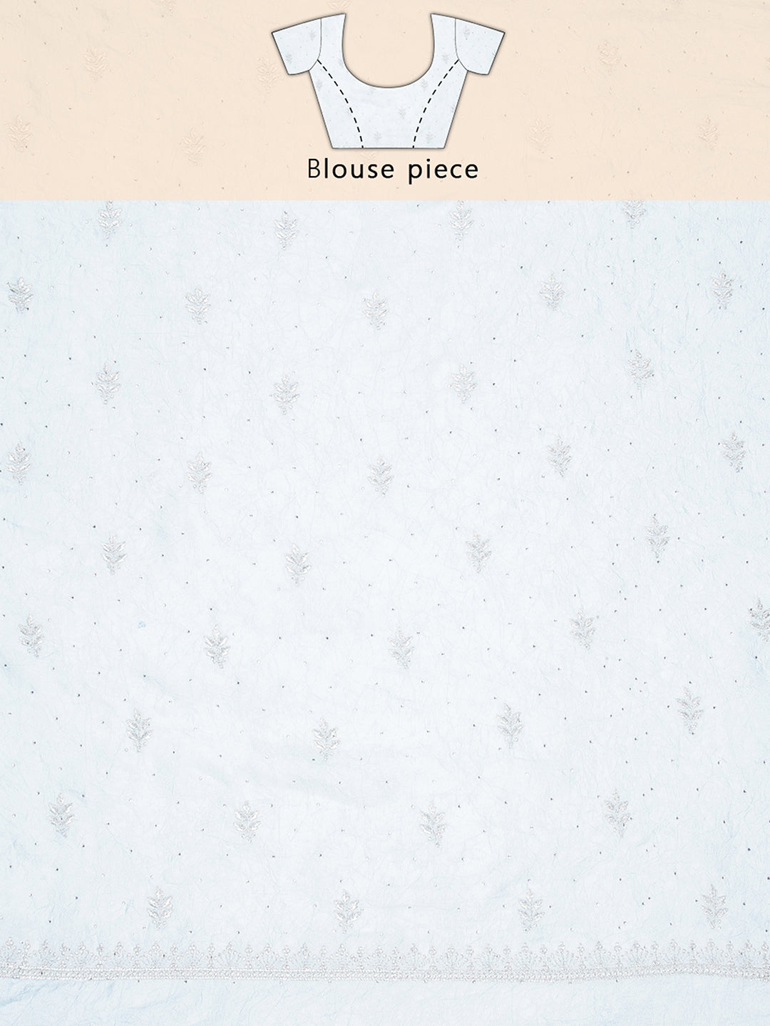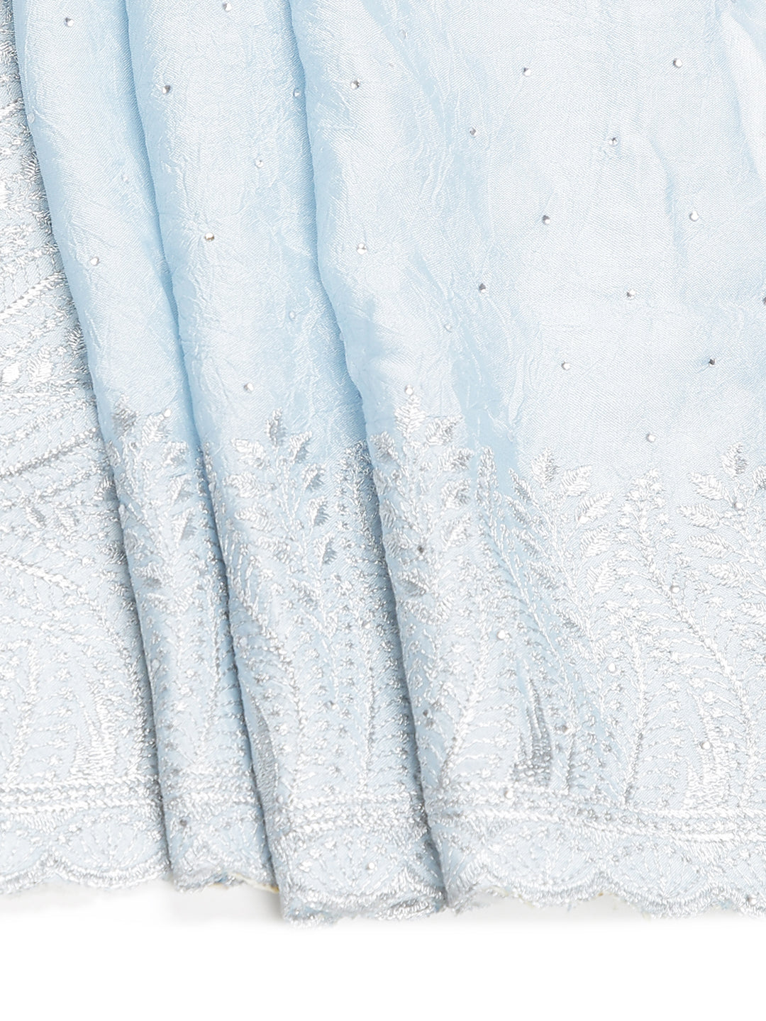 Ice Blue Color Crushed Chiffon Saree With Mini Silver Stones Over Body