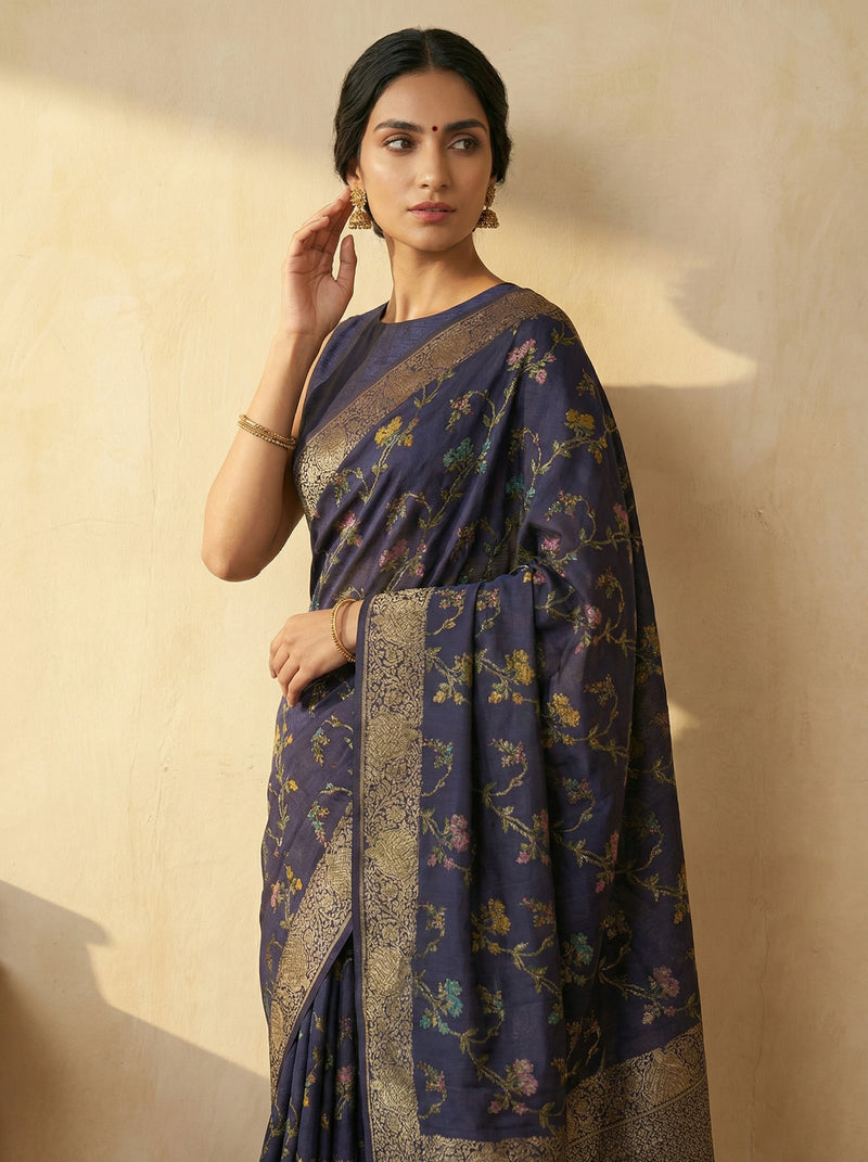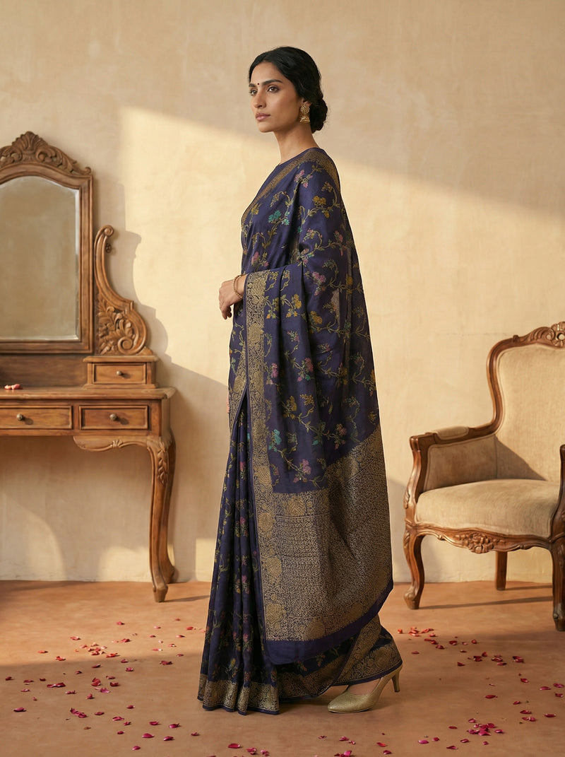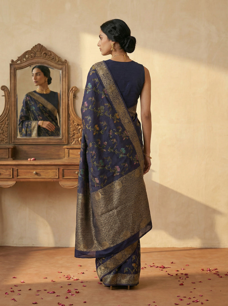 Jute Sapphire Blue Nature Trail Saree