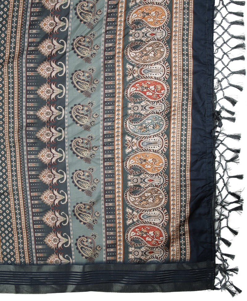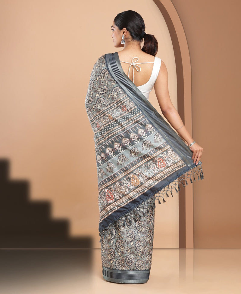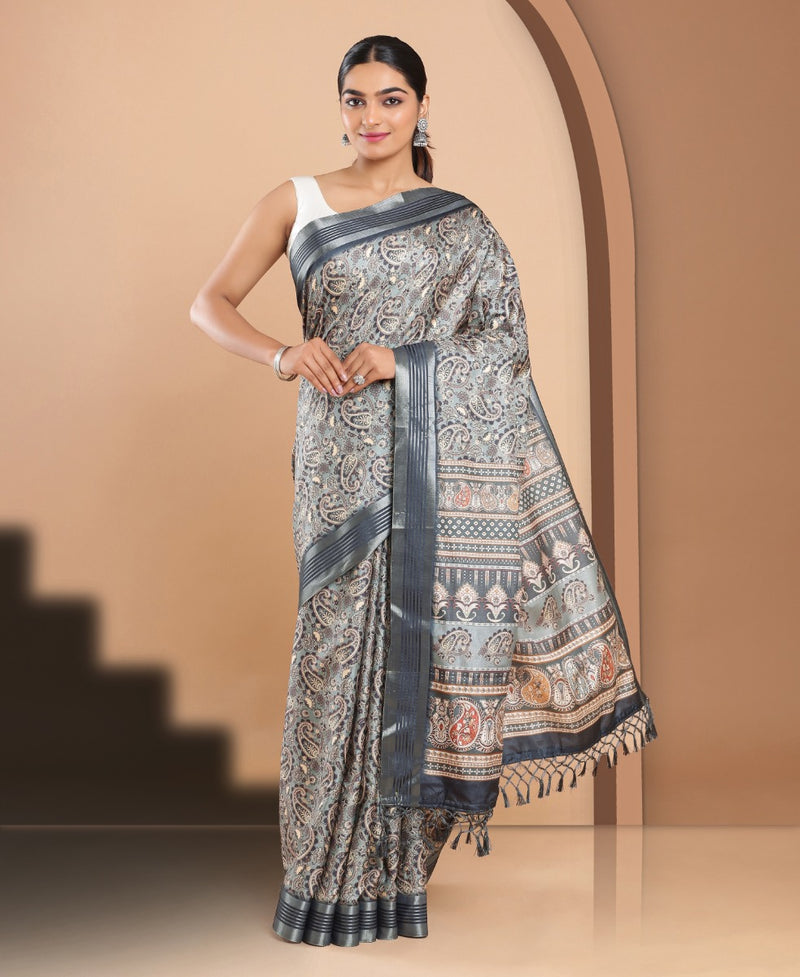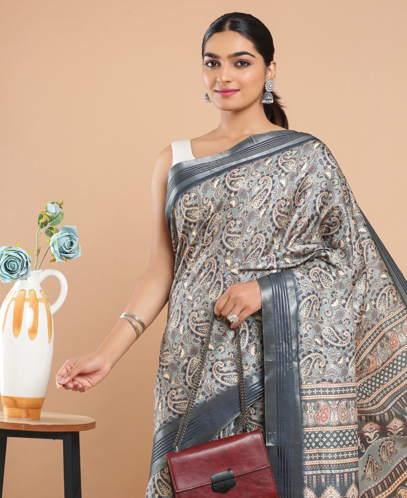 Jute Silk Casual Wear Grey Color Paisley Printed Saree