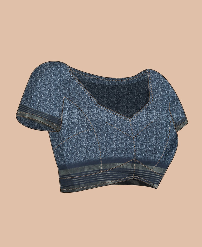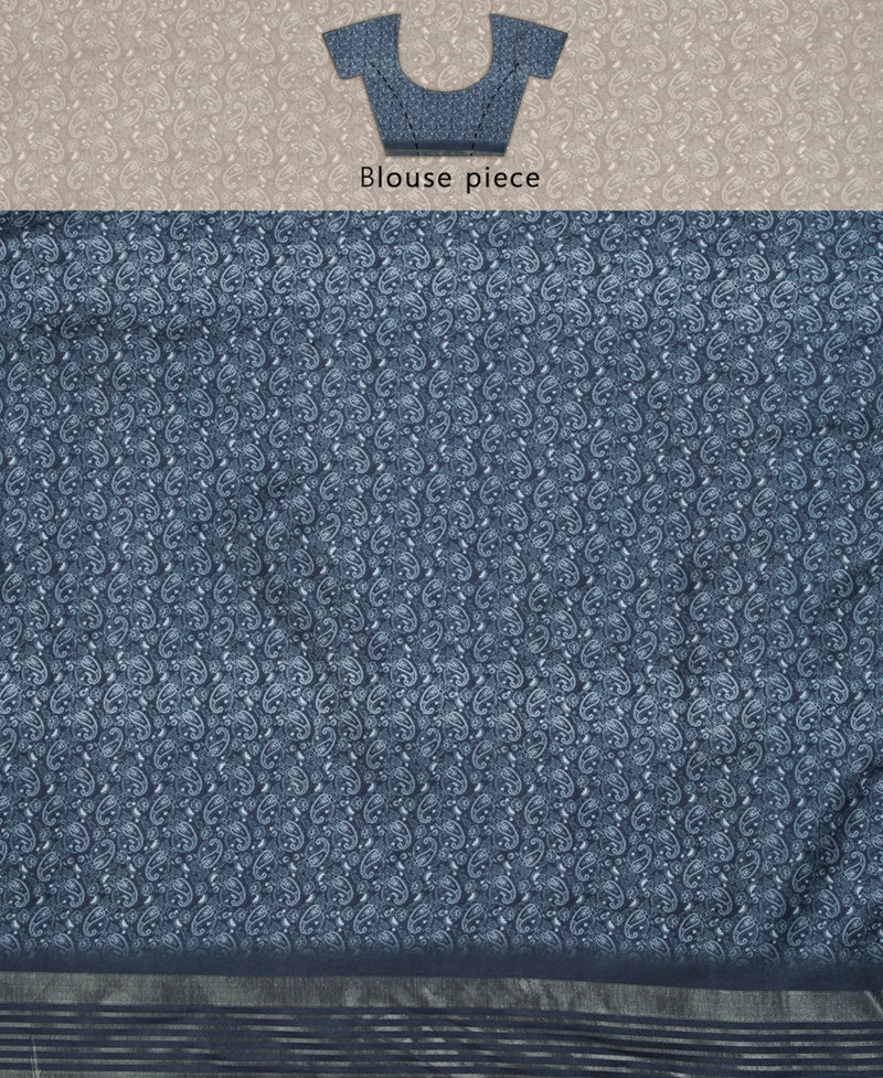 Details:Full Of Grey Color Jute Silk Saree With Paisley Print & Grey Kasavu Line Border With Blouse