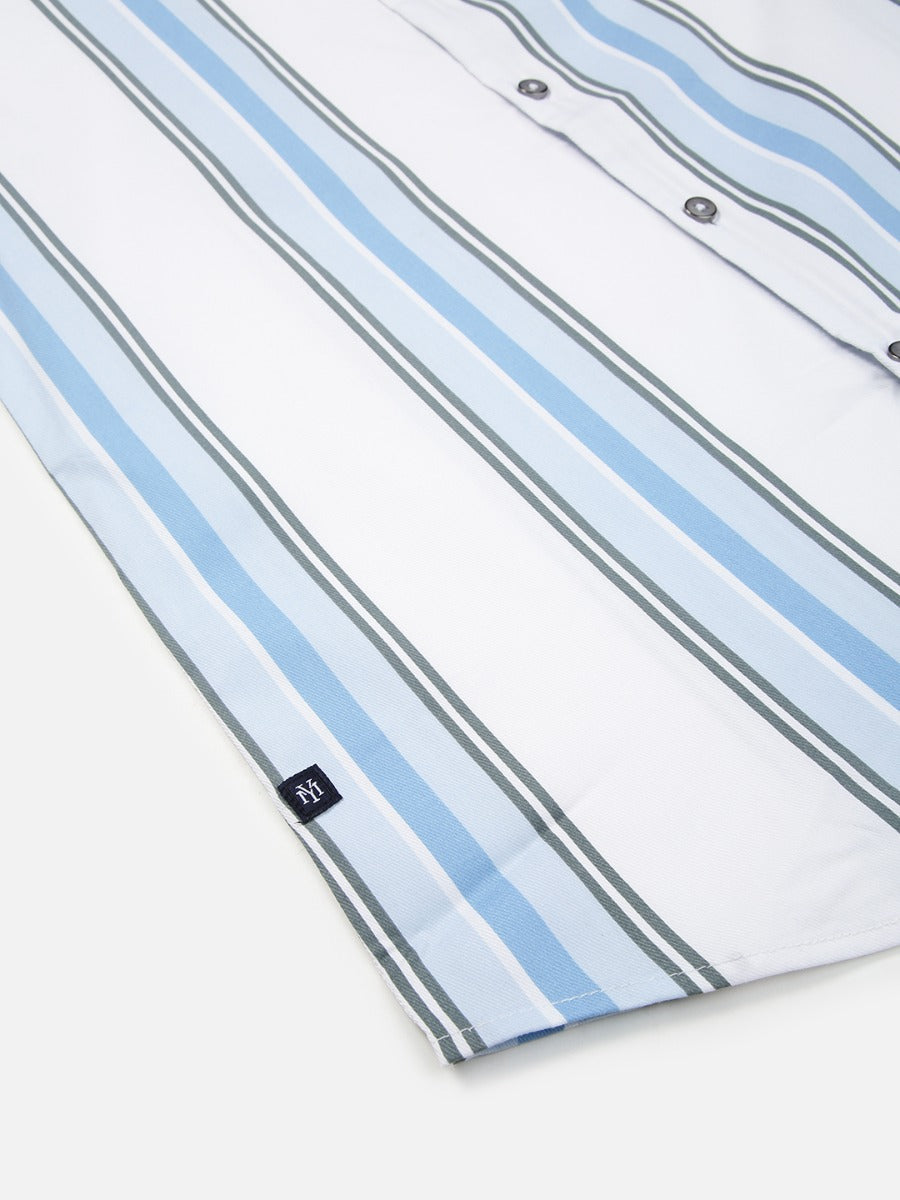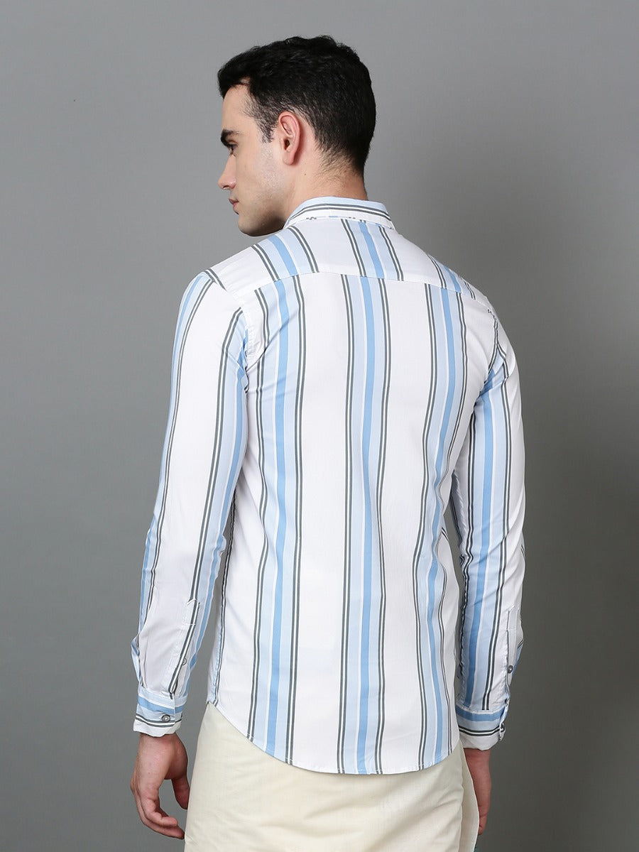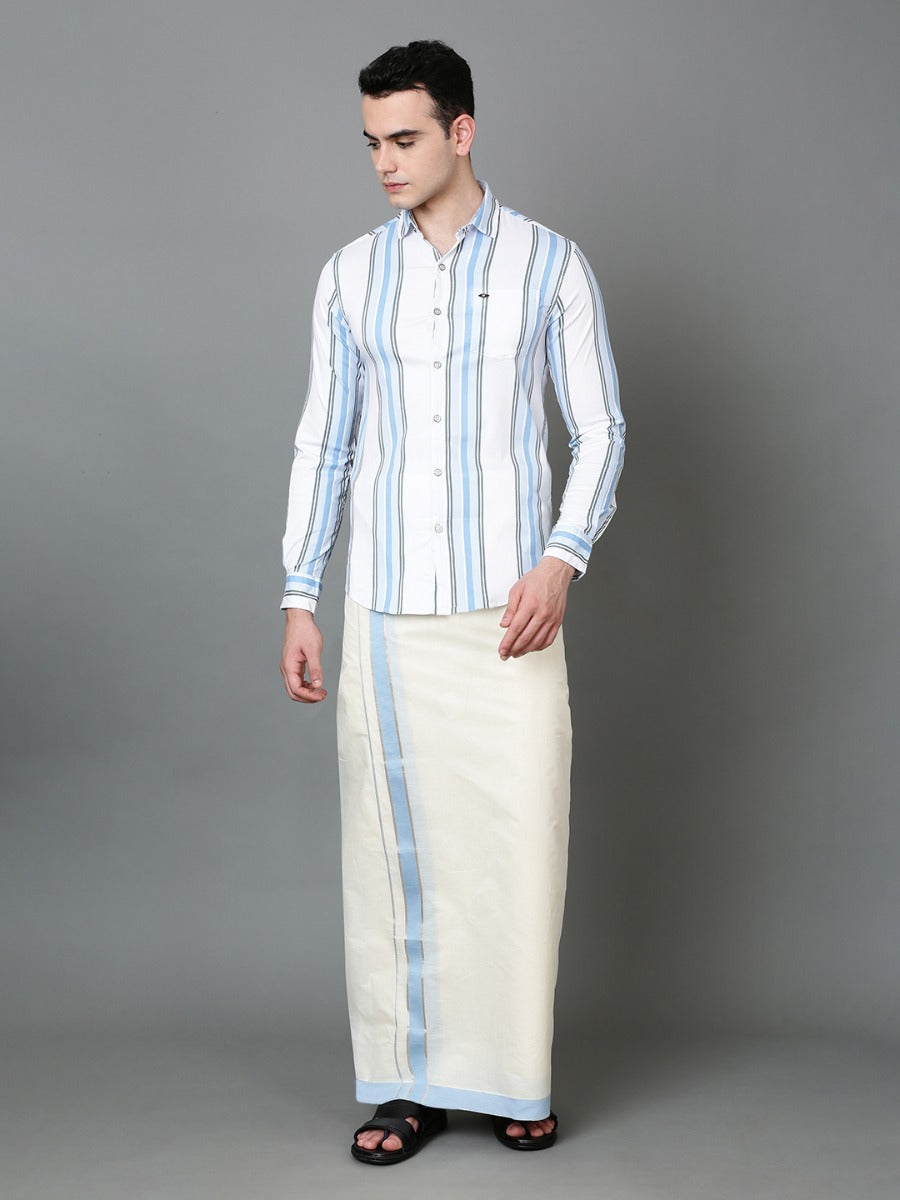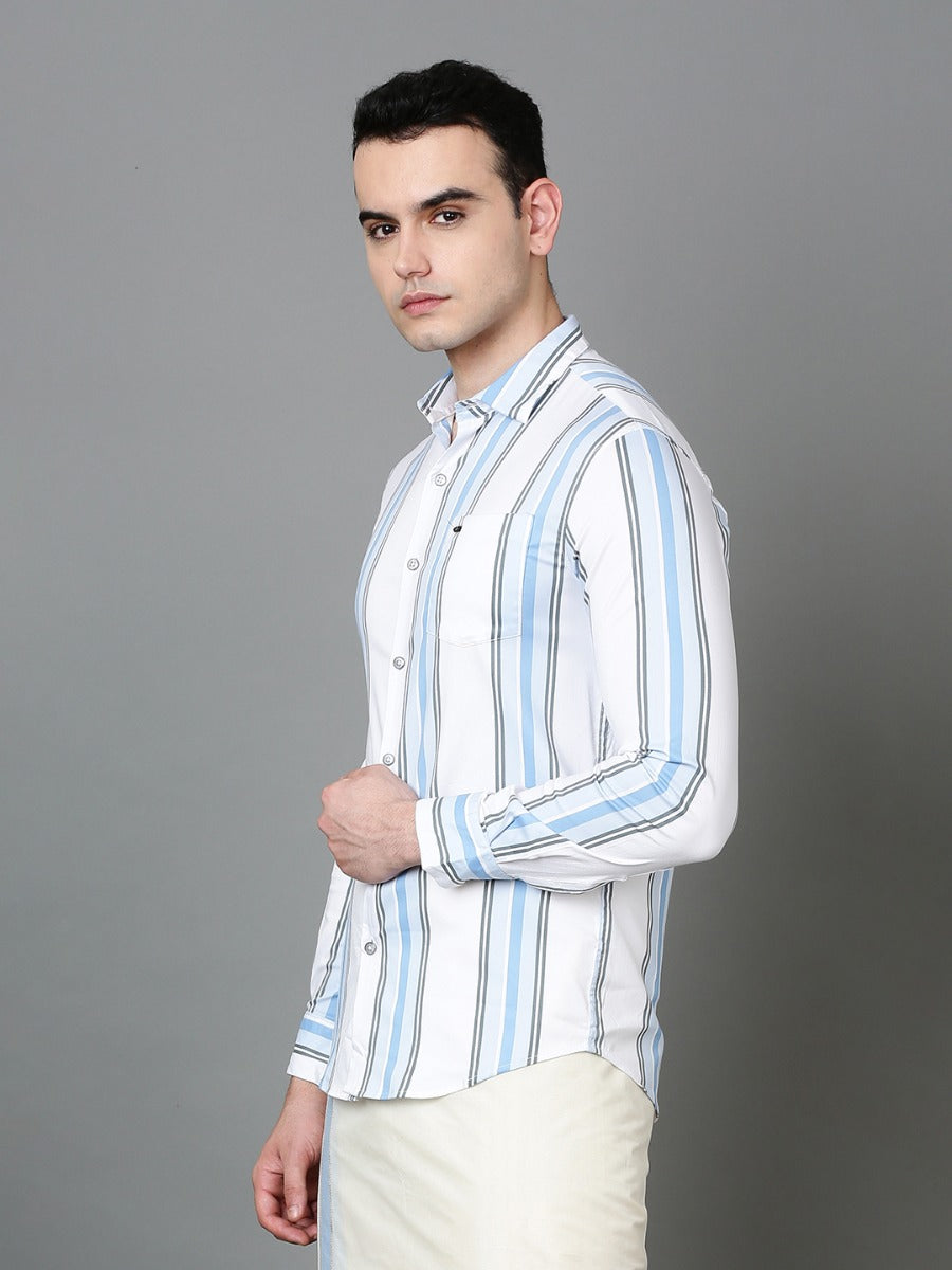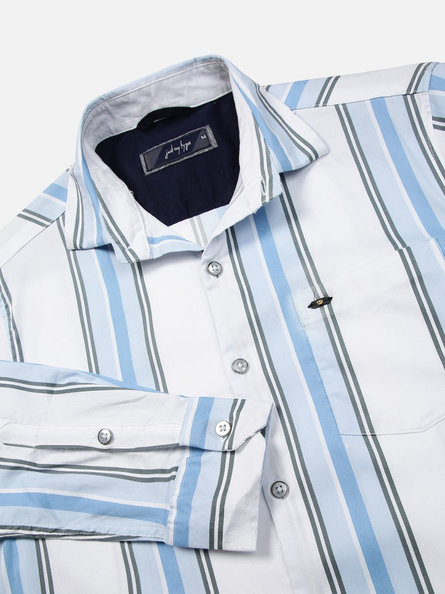 Kalyan Silks Cotton Shirt with White With Green & blue Strips by JustmyType