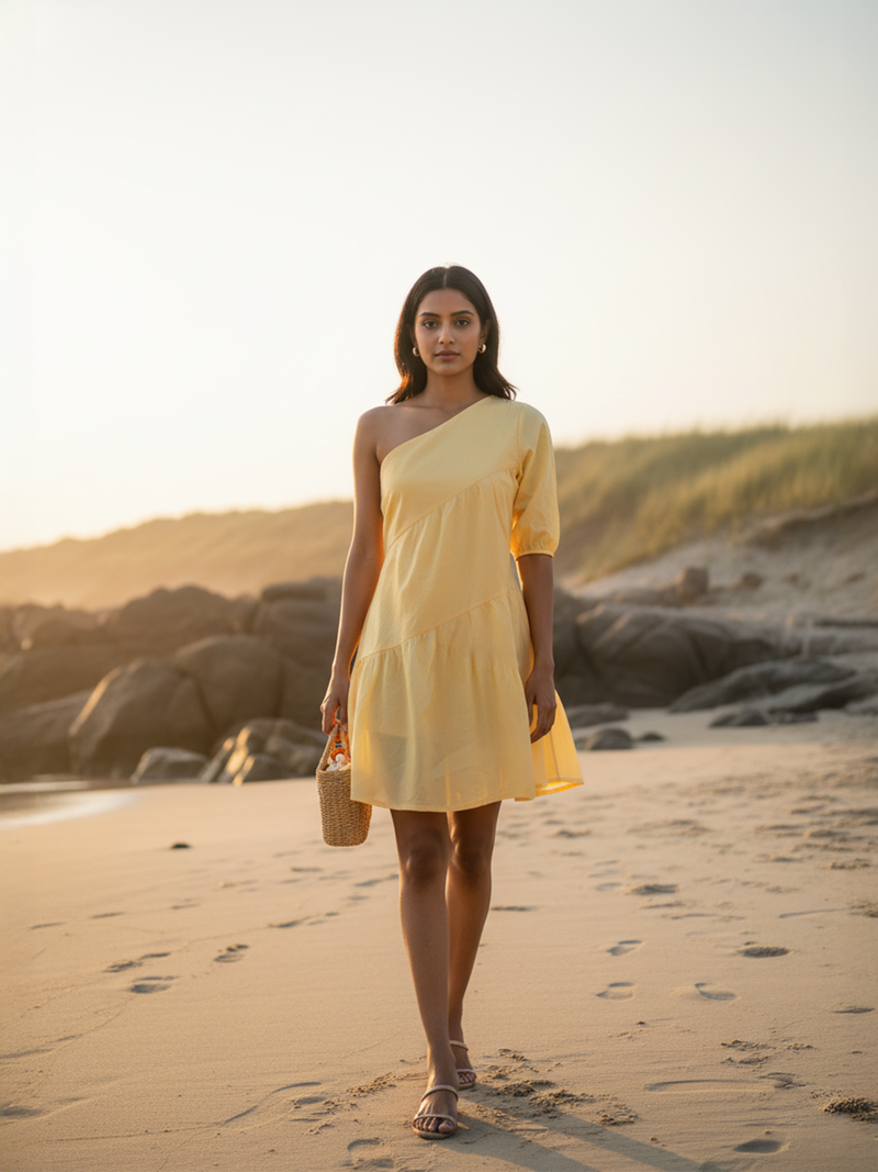 Elevate your style with this Yellow One-Shoulder Dress. Designed with a soft puff sleeve and flowy silhouette for an effortlessly chic look. Perfect for brunches or beach evenings. Shop this stylish women's dress before it’s gone!